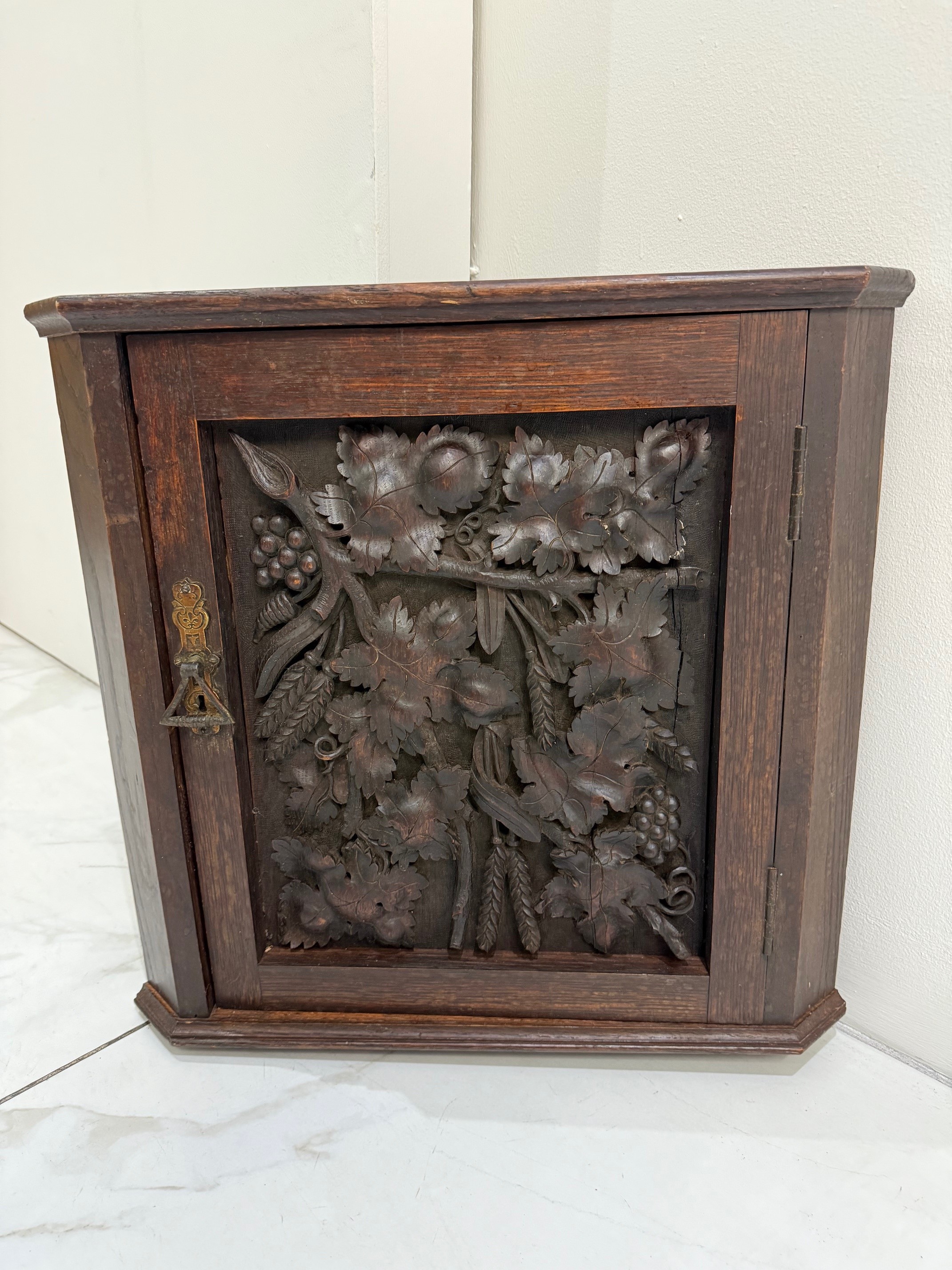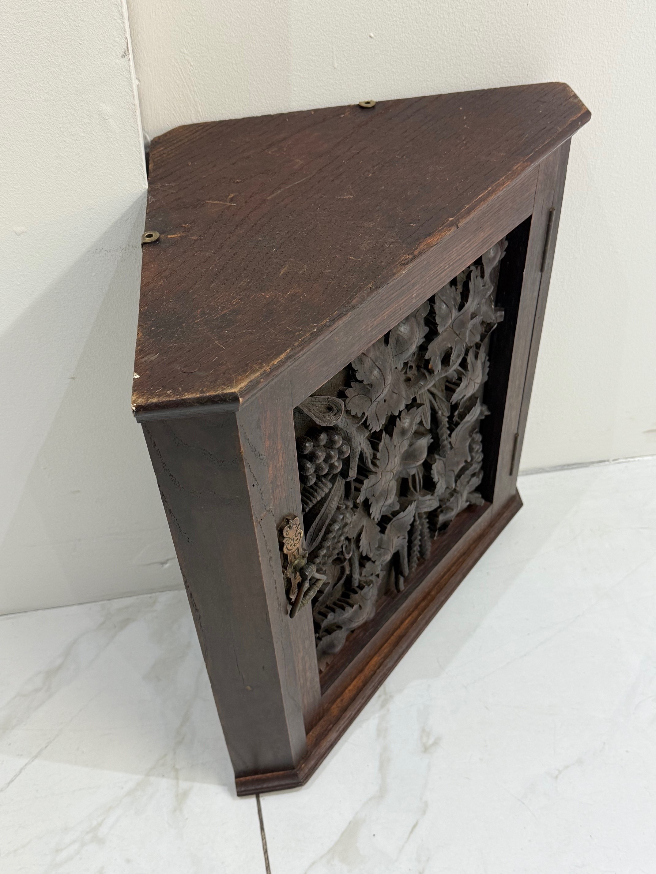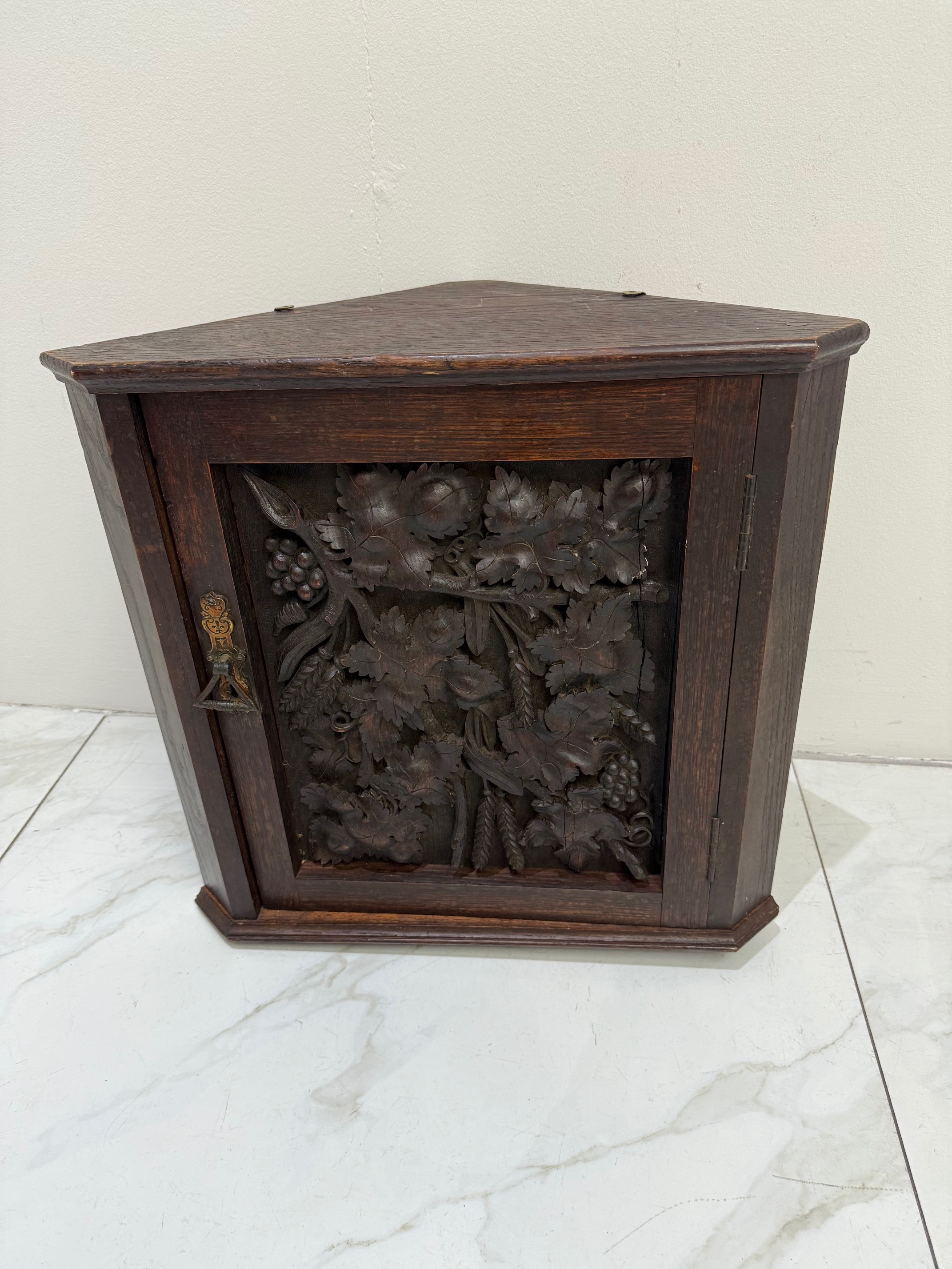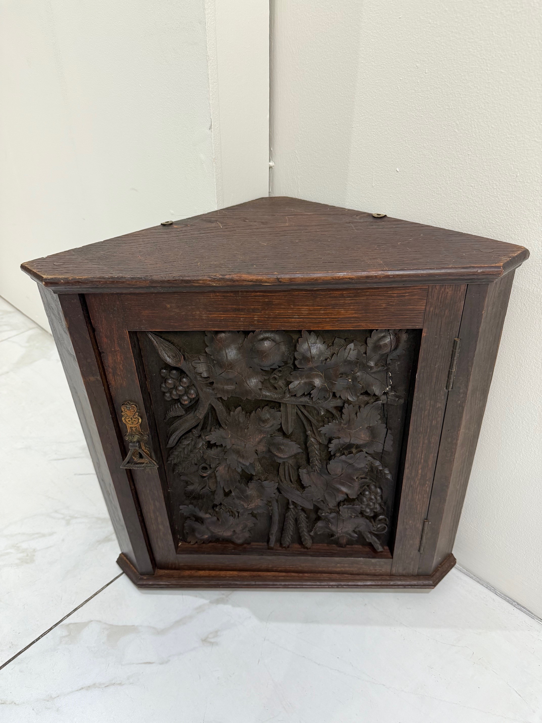 Antique Carved Corner Cupboard In Oak - VIN1192P