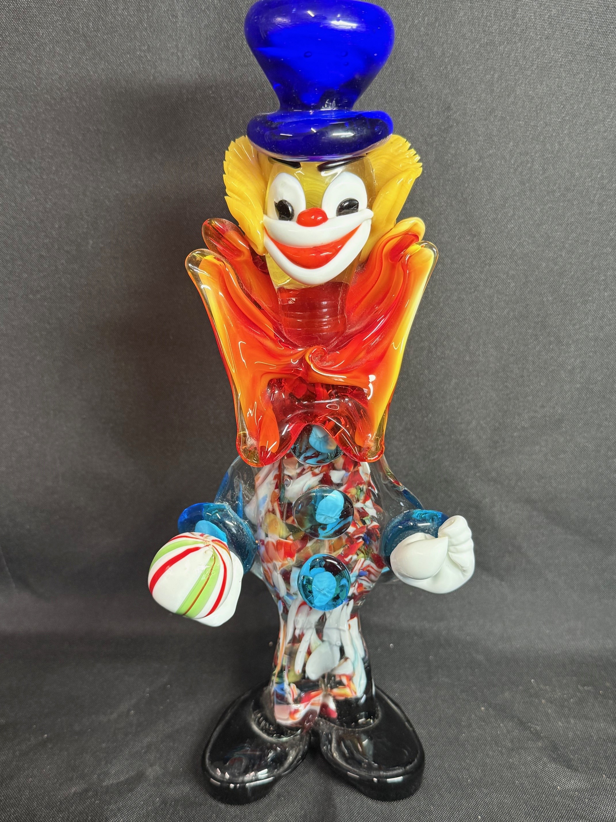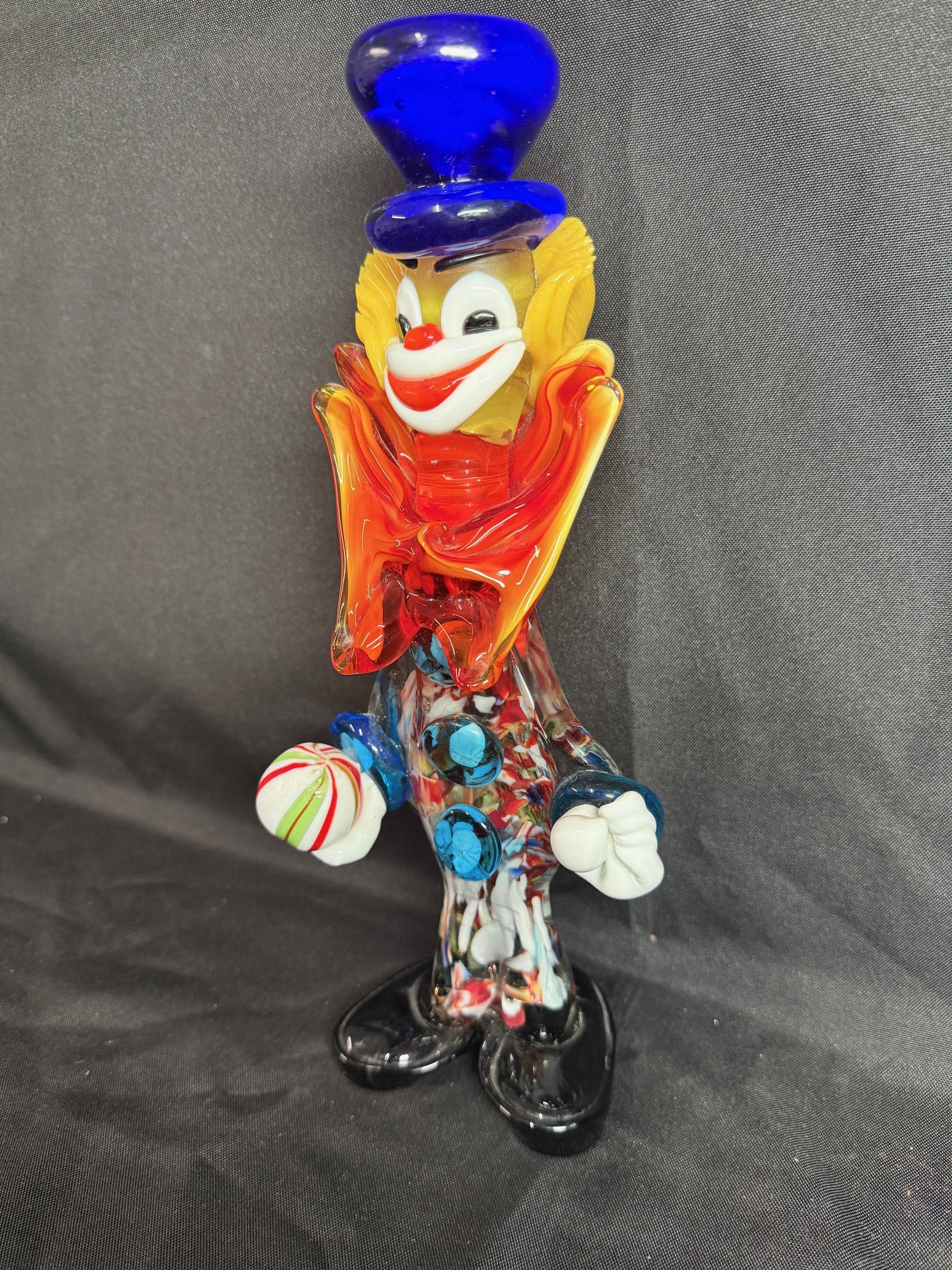 Vintage Murano Italy Large Glass Clown Holding Striped Ball - VIN1190Z