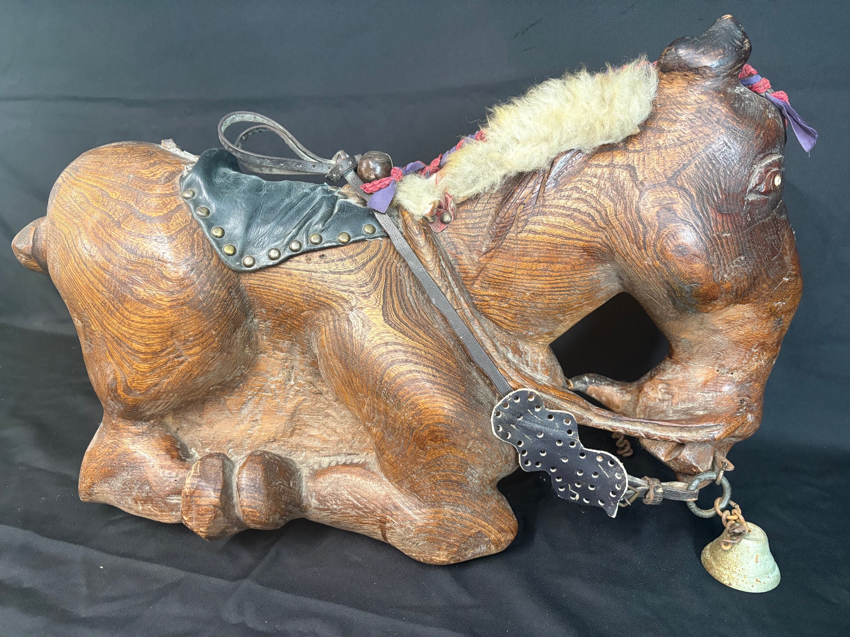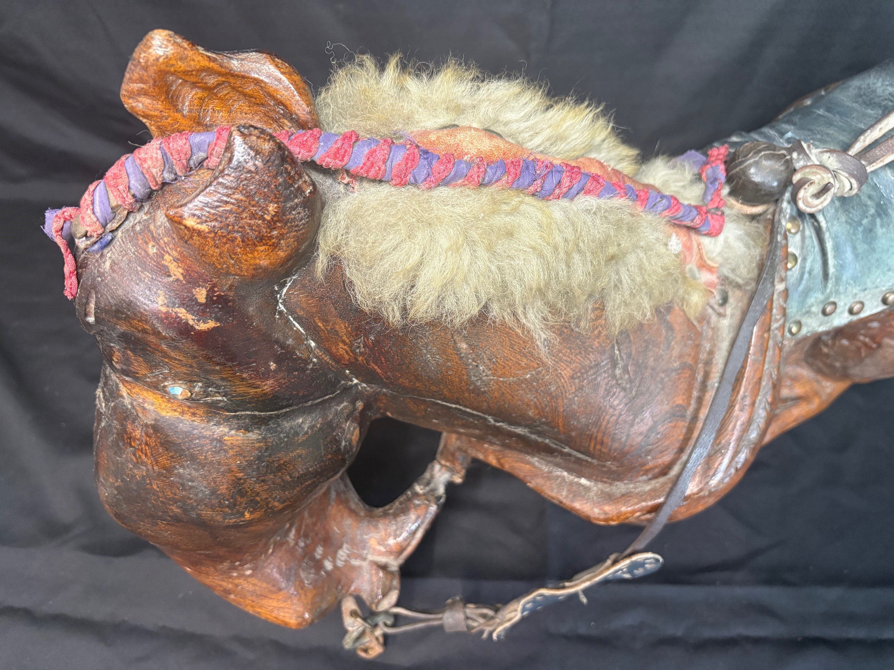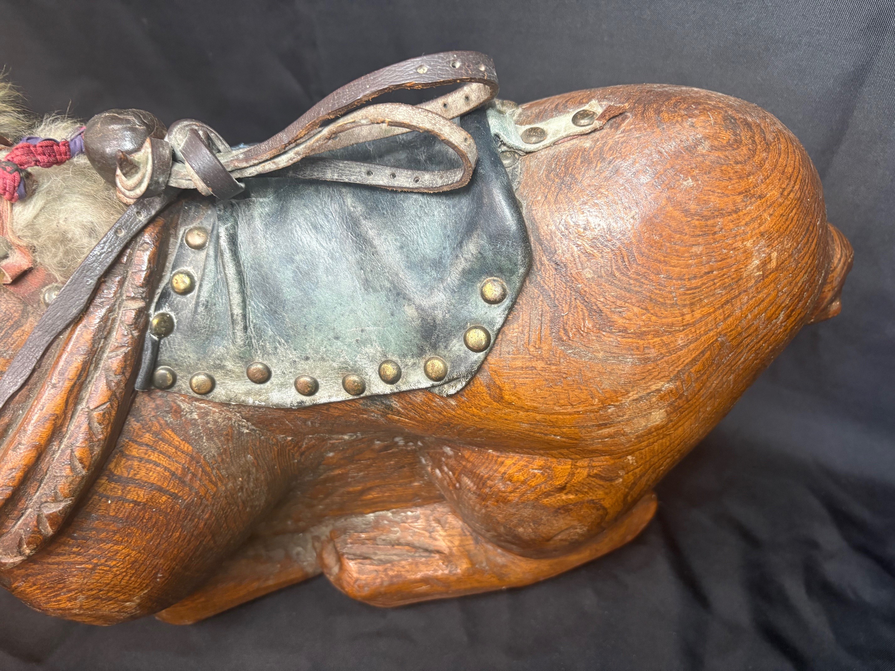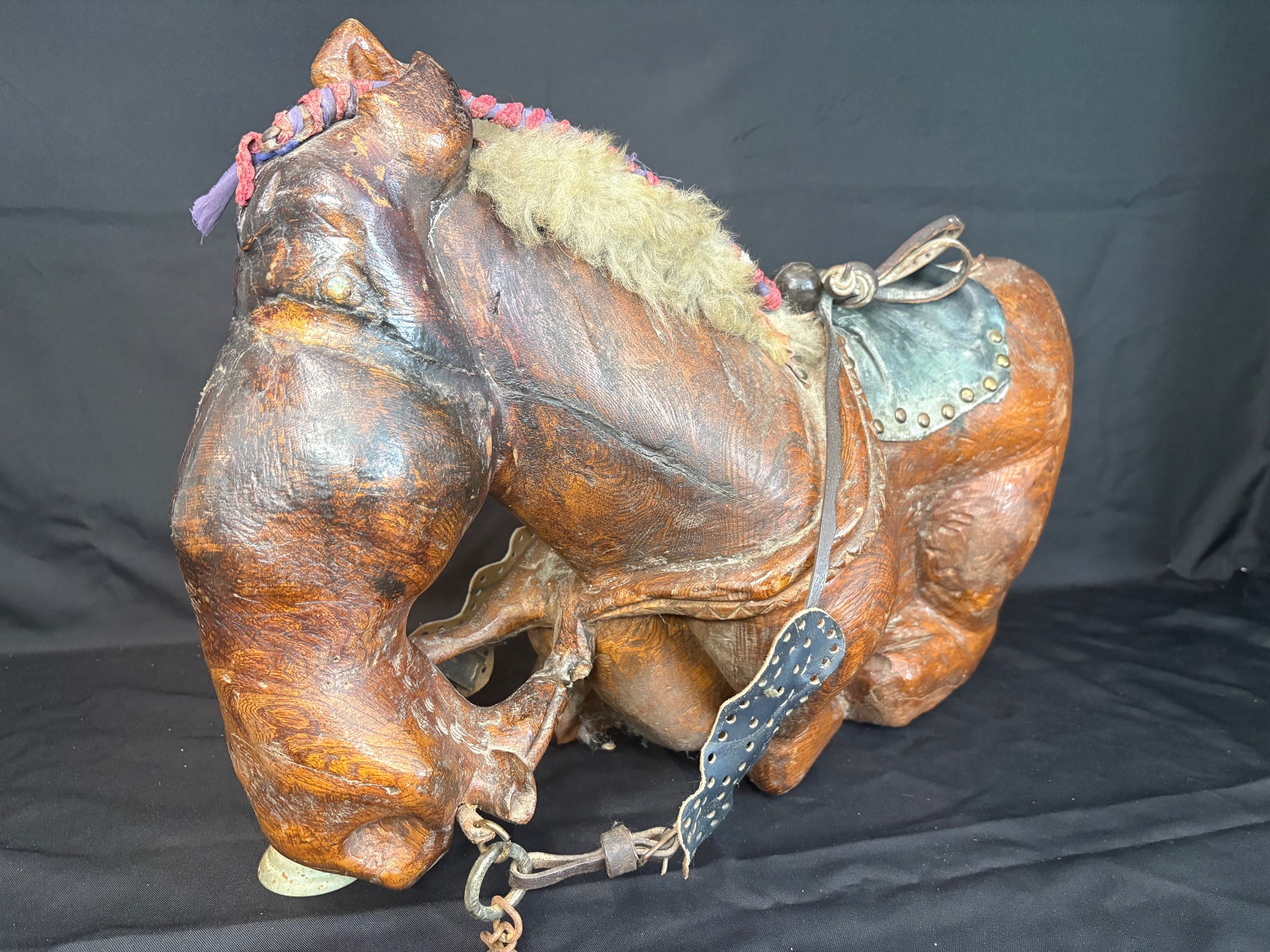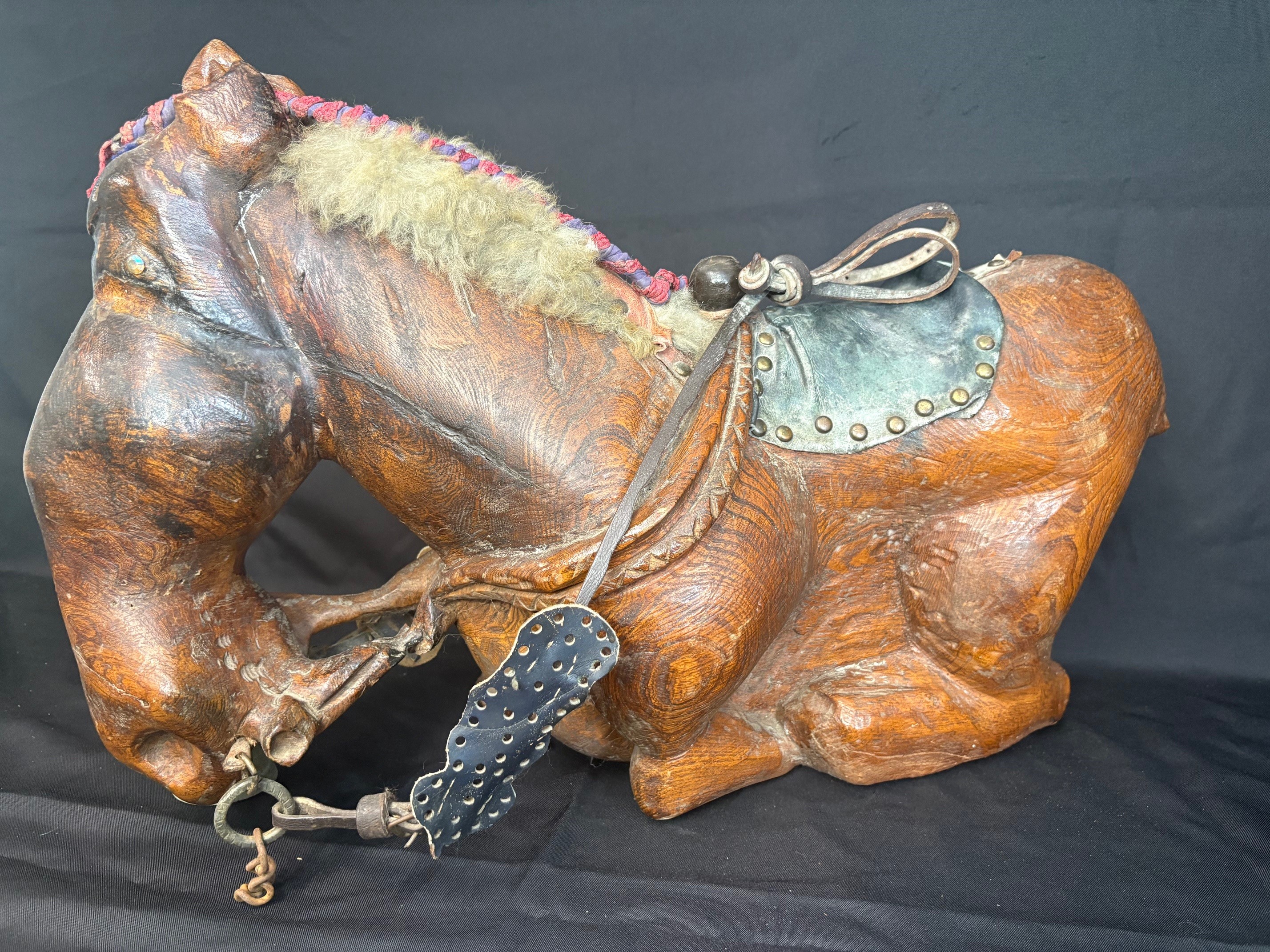 Unique & Unusual Vintage Large Hand Carved Wooden Horse Statue With Leather Detailing - VIN1188M