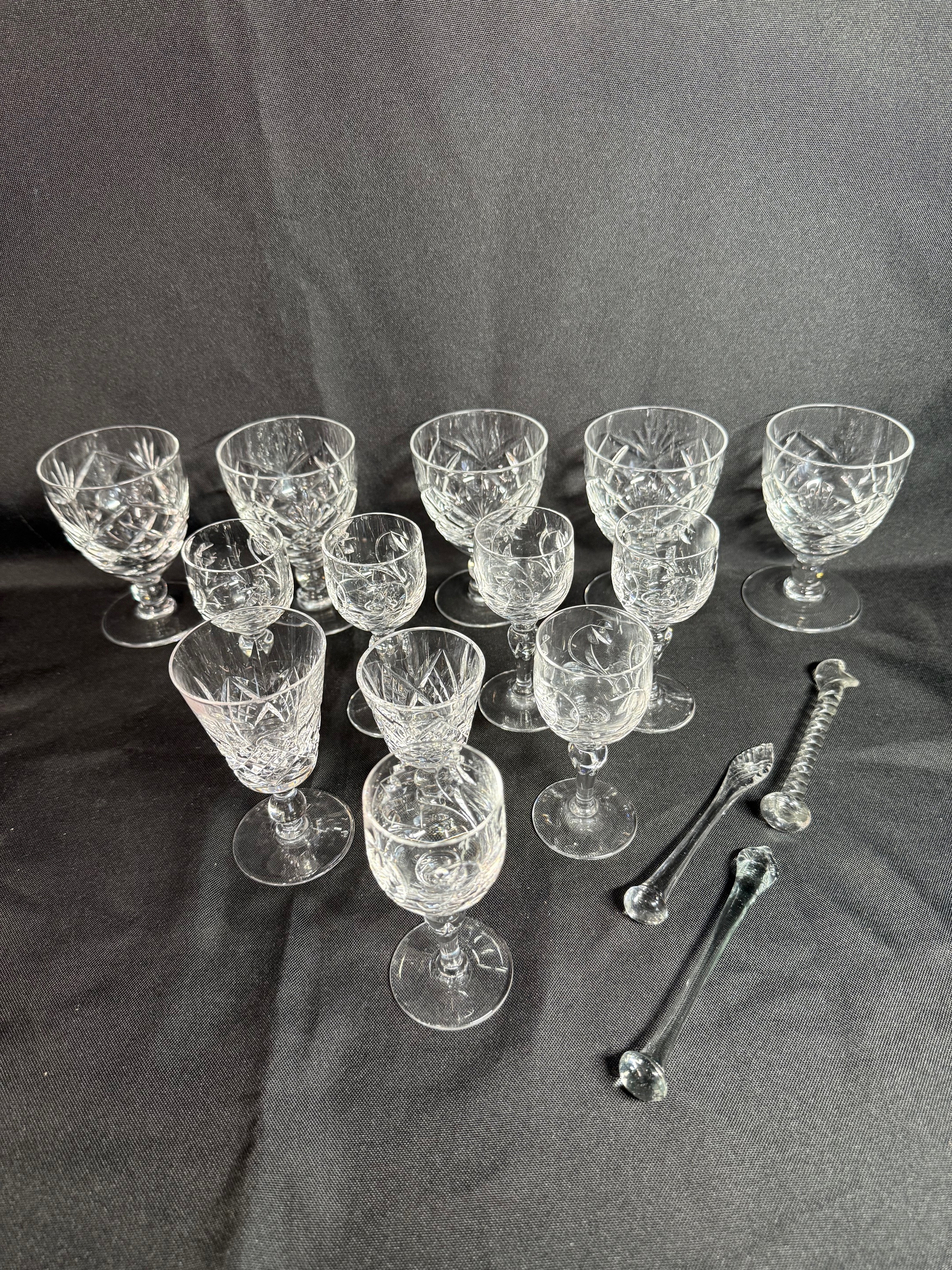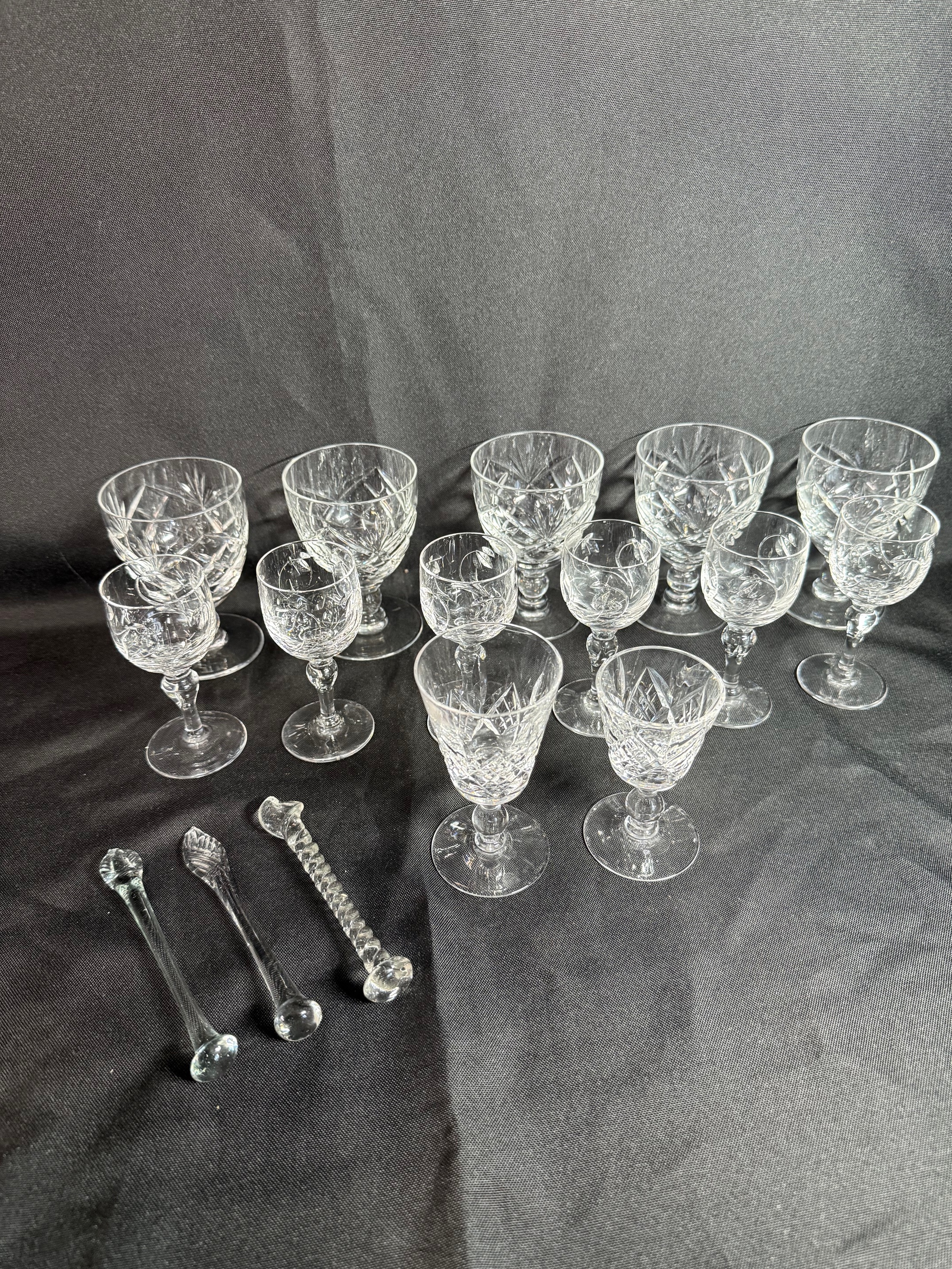 5 small glasses, 6 cherry glasses, 3 sugar crushers & 2 various glasses.