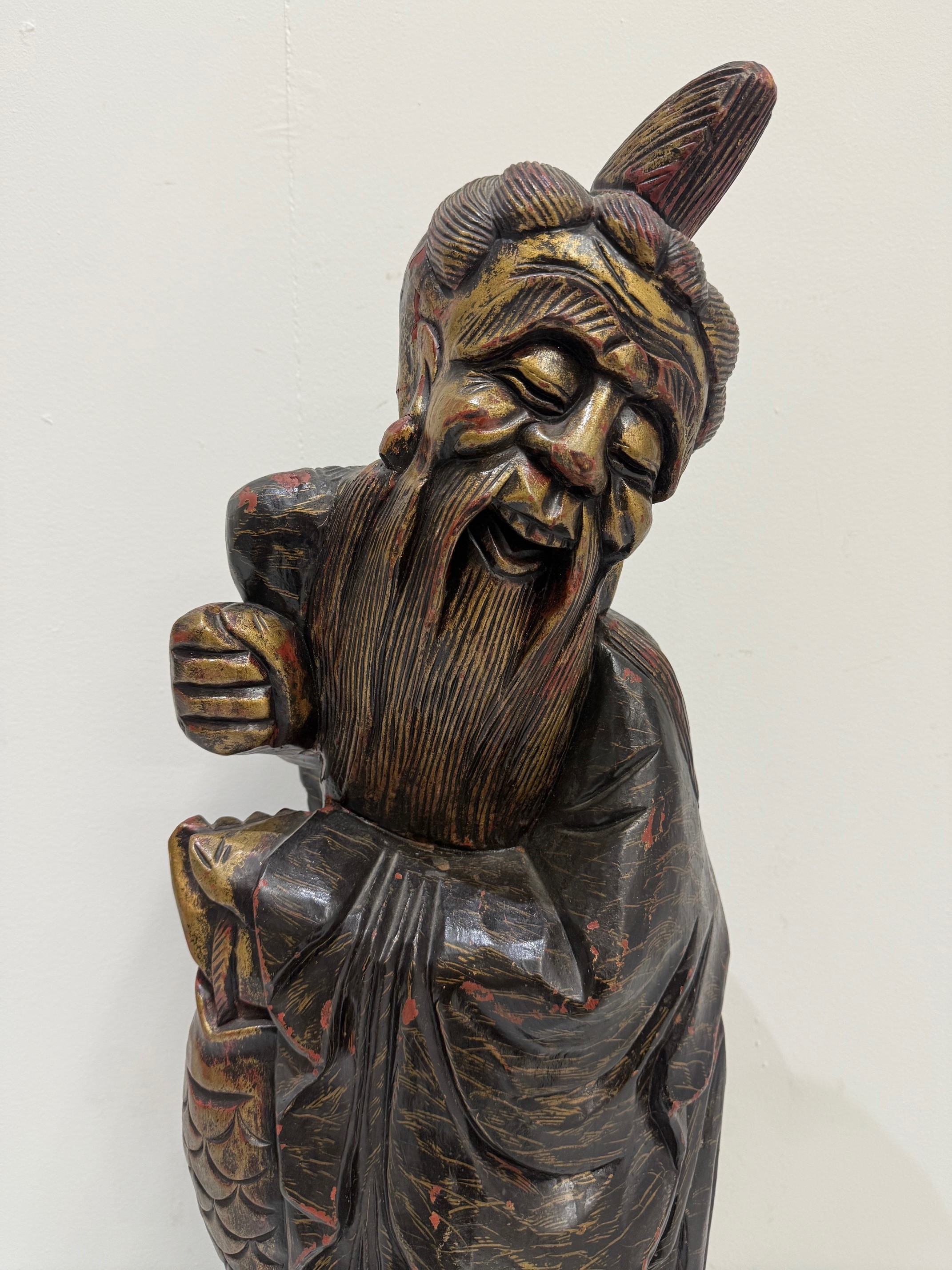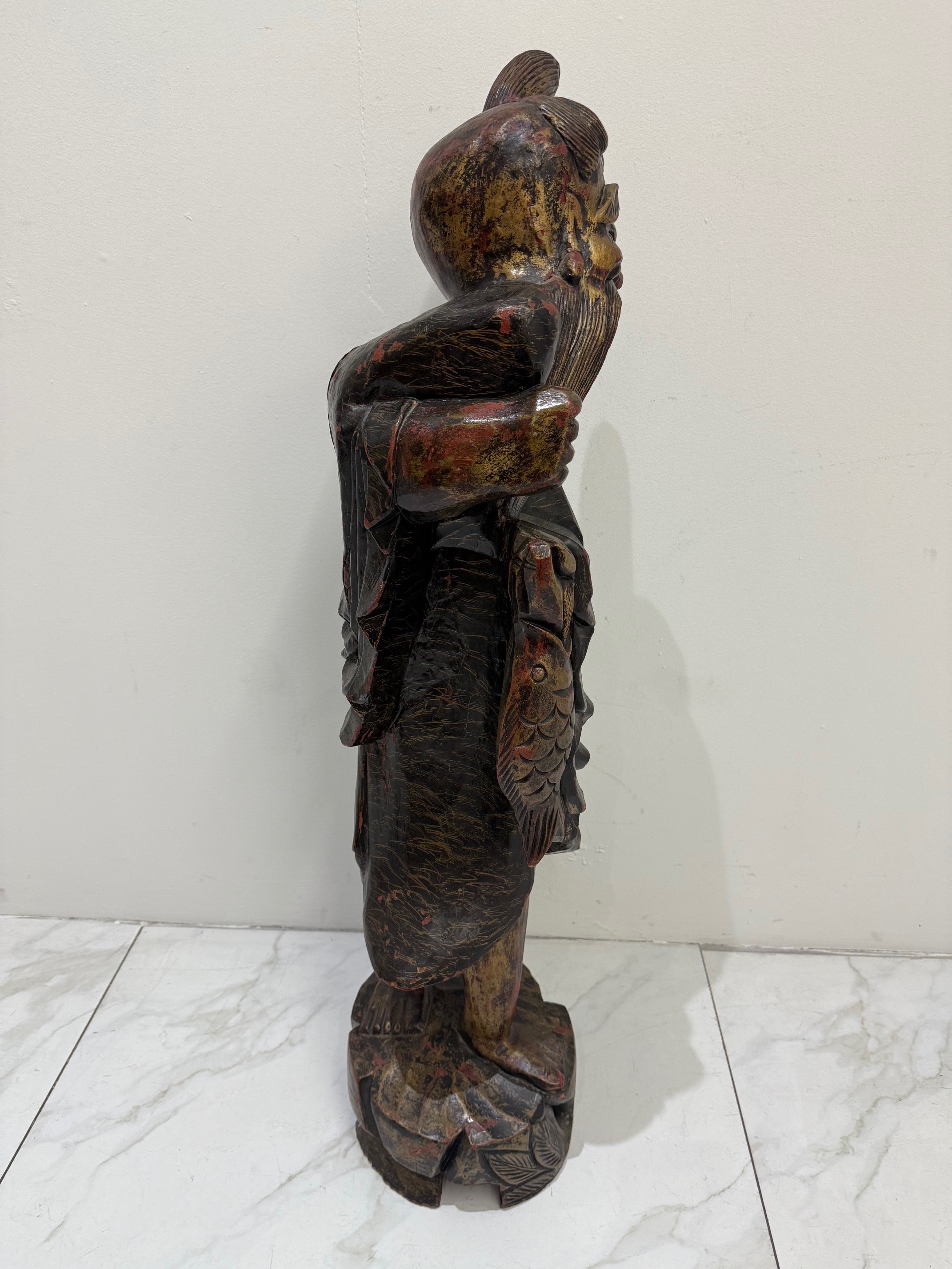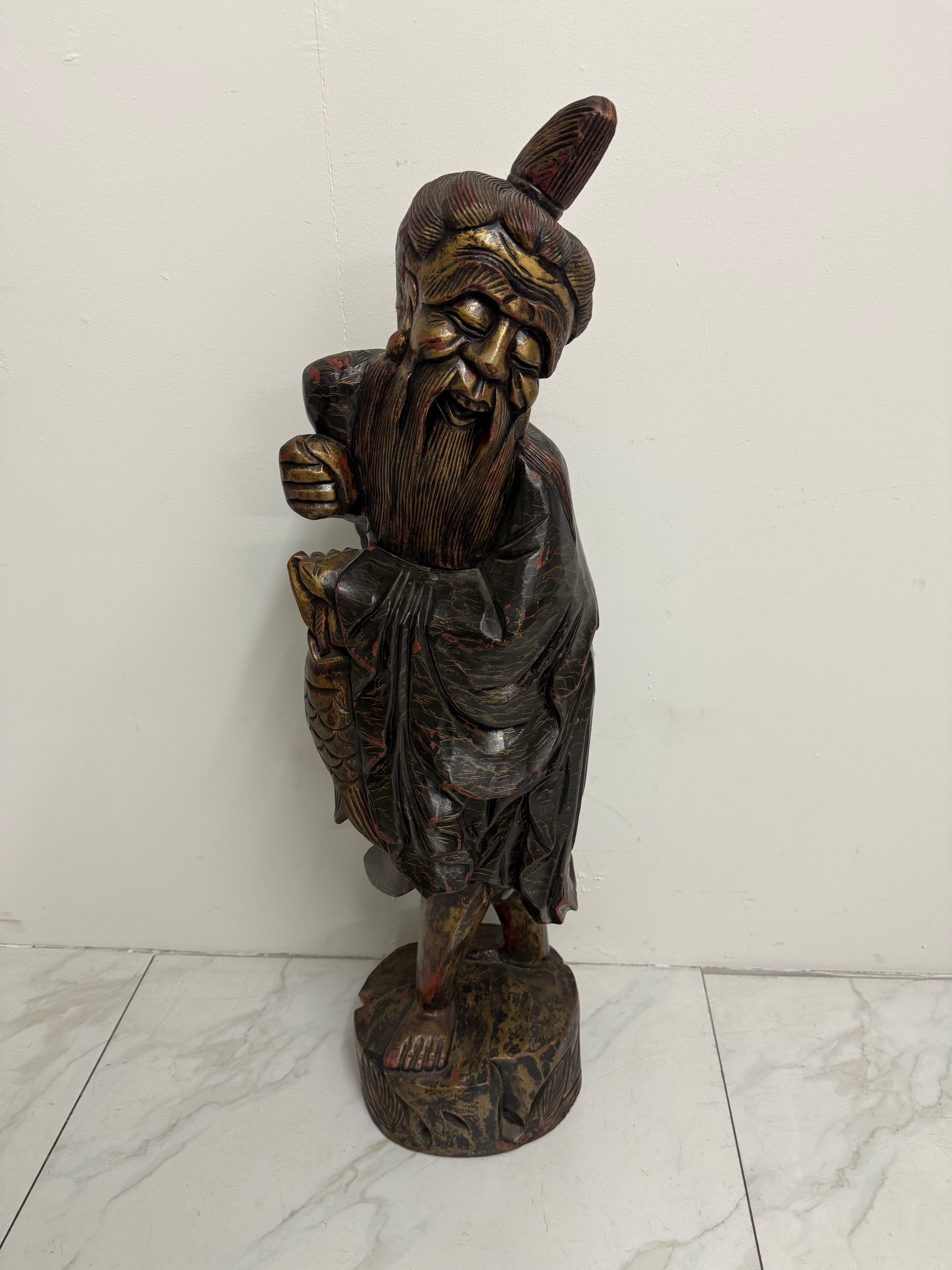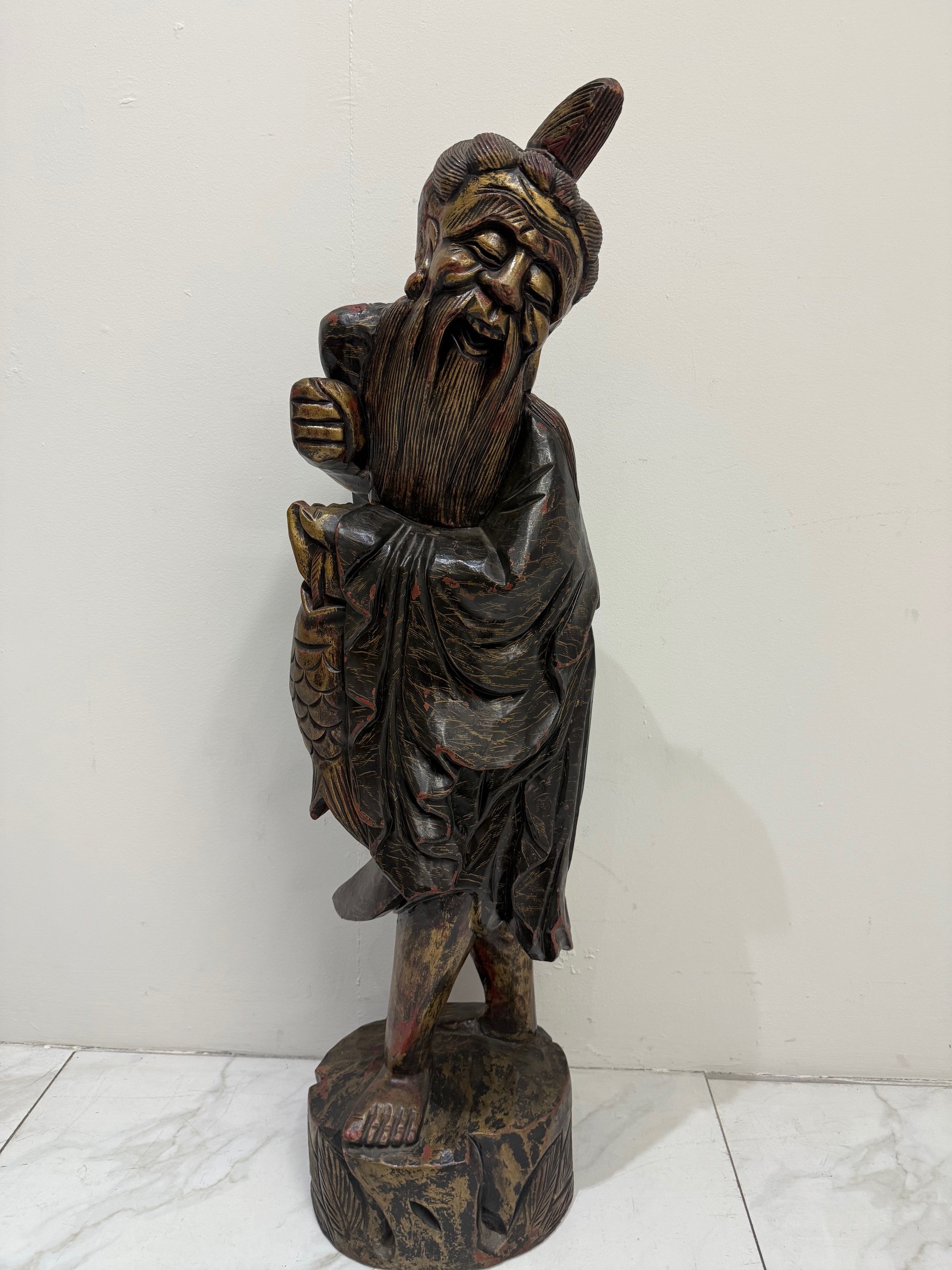 Antique Chinese Carved Wise Fisherman Statue - VIN1194J