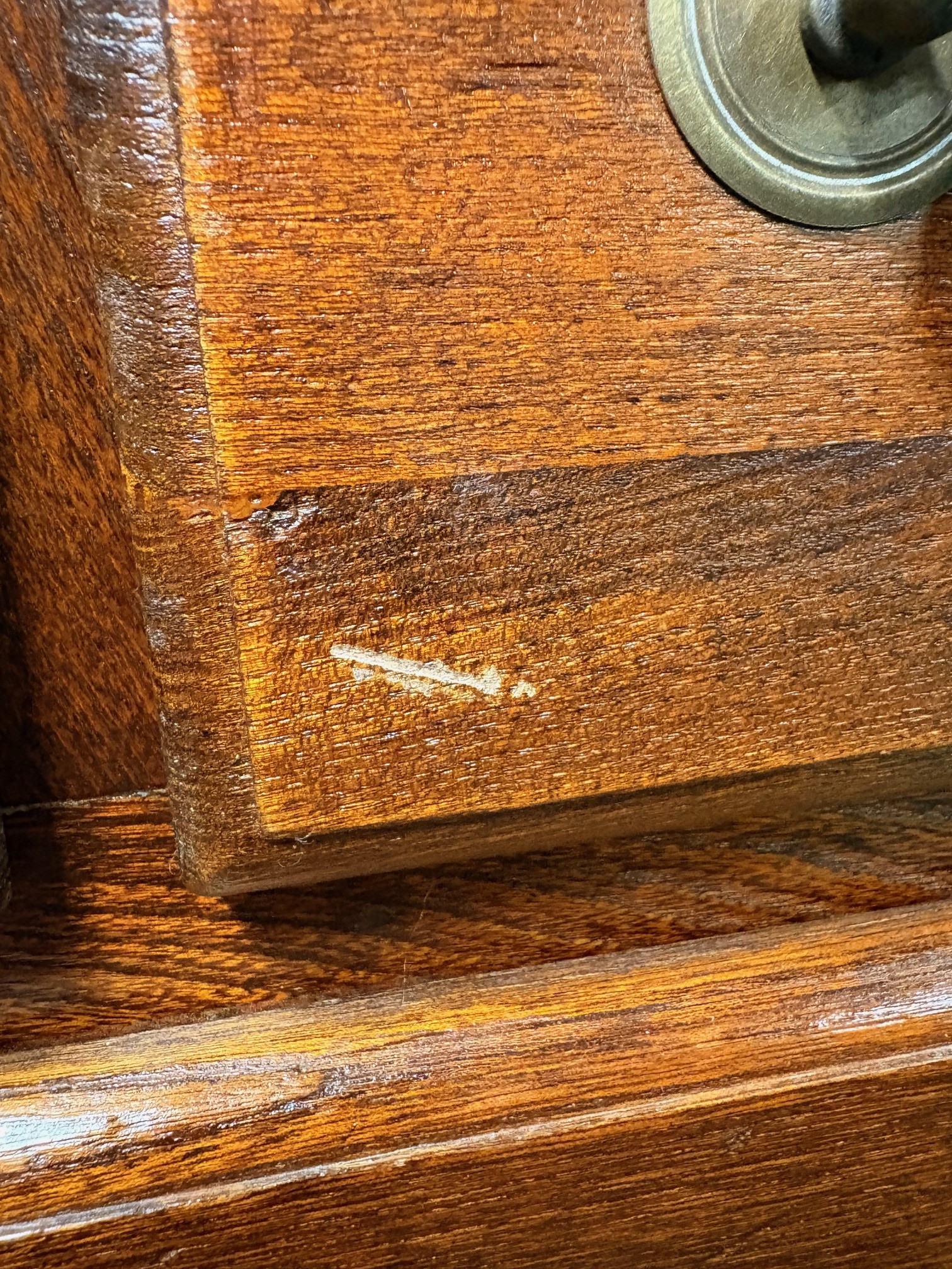 Missing handle on bottom drawer - Small mark on middle small drawer.
