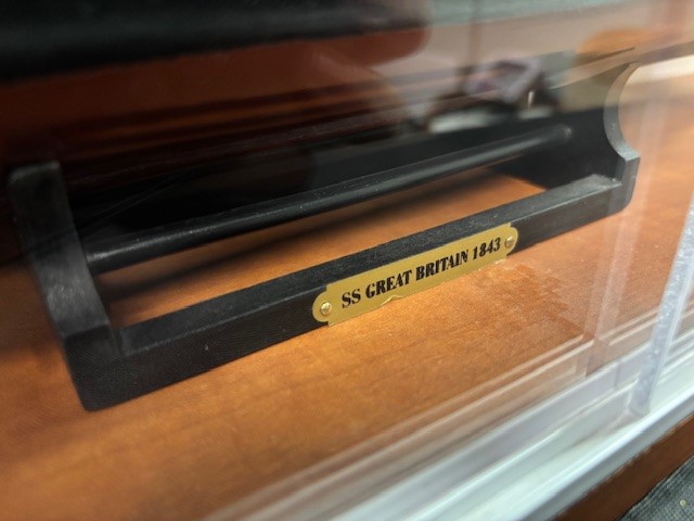 SS Great Britain Model Ship, housed in a handmade wooden and glass display case.
