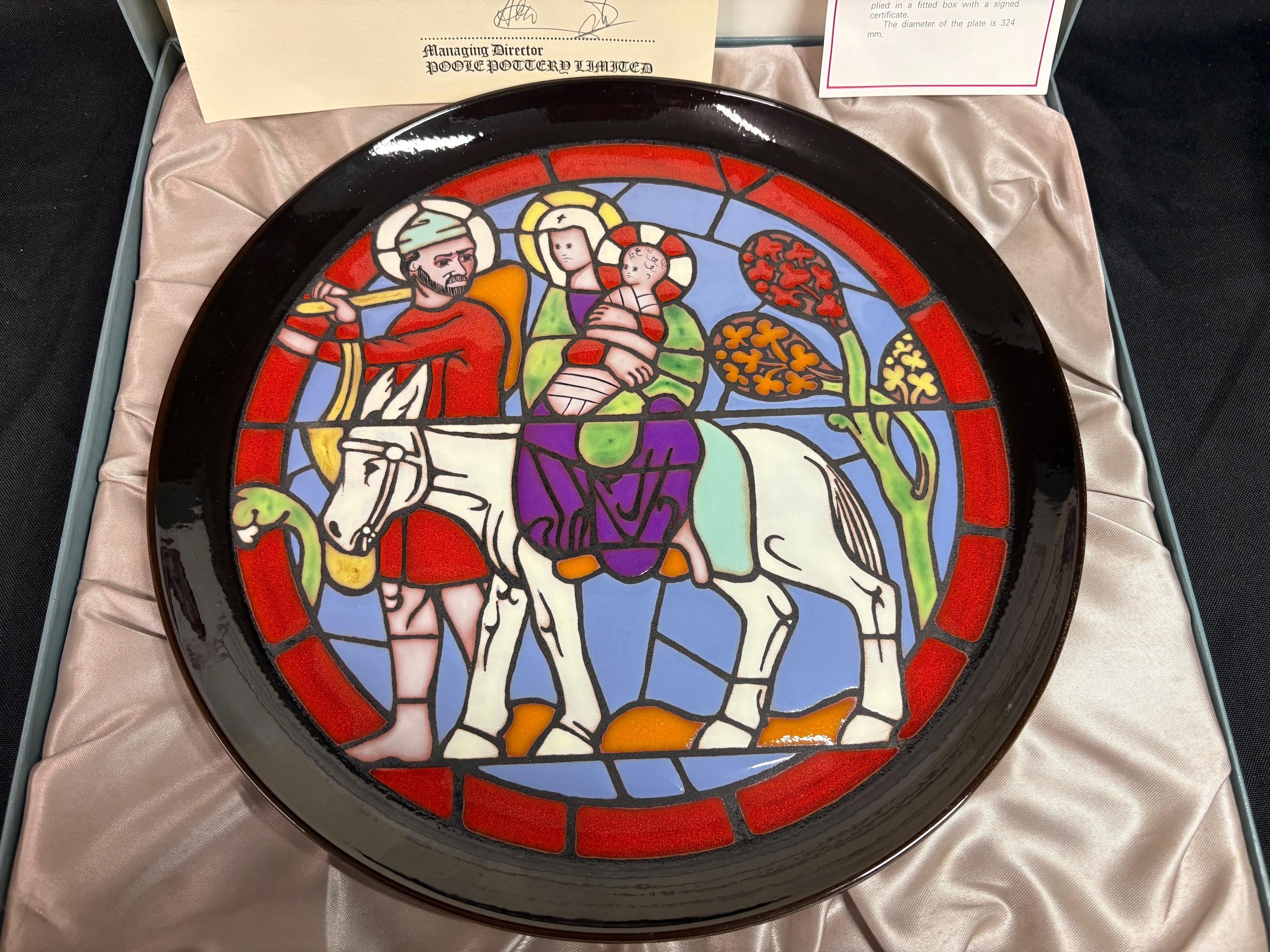 Poole pottery “Flight into Egypt” plate, low number 34, in original presentation box with certificates.
