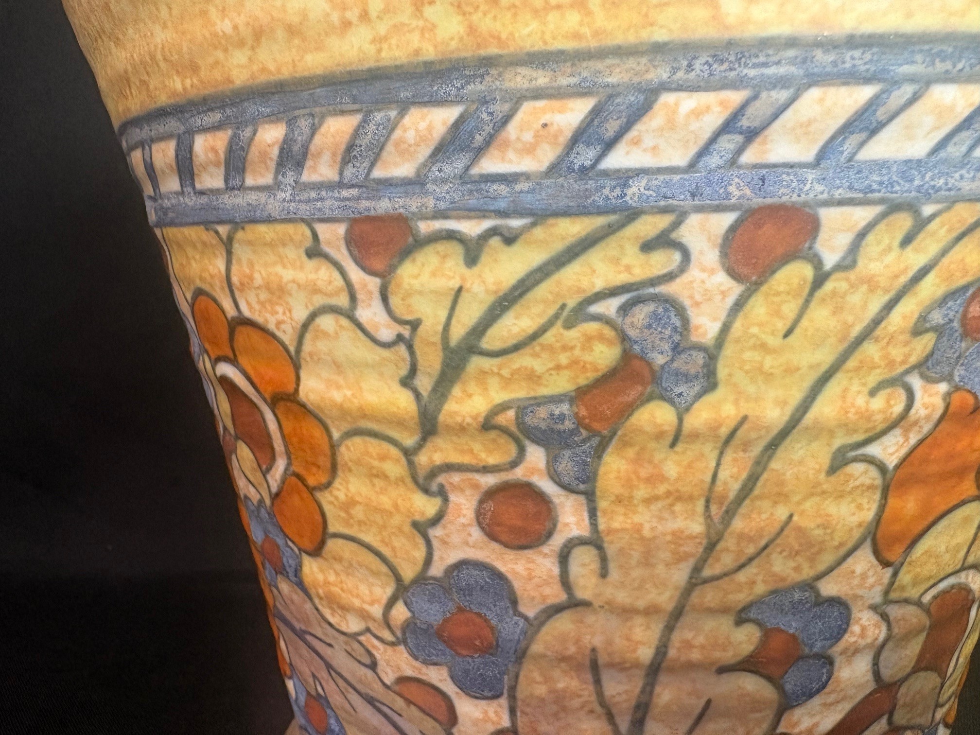 Born in 1885 cr was a prominent English pottery designer this particular large and more uncommon pot is signed by Rhead and was completed in the late 1930’s, while working with Crown Ducal. Unfortunately she died a few years later in 1947.