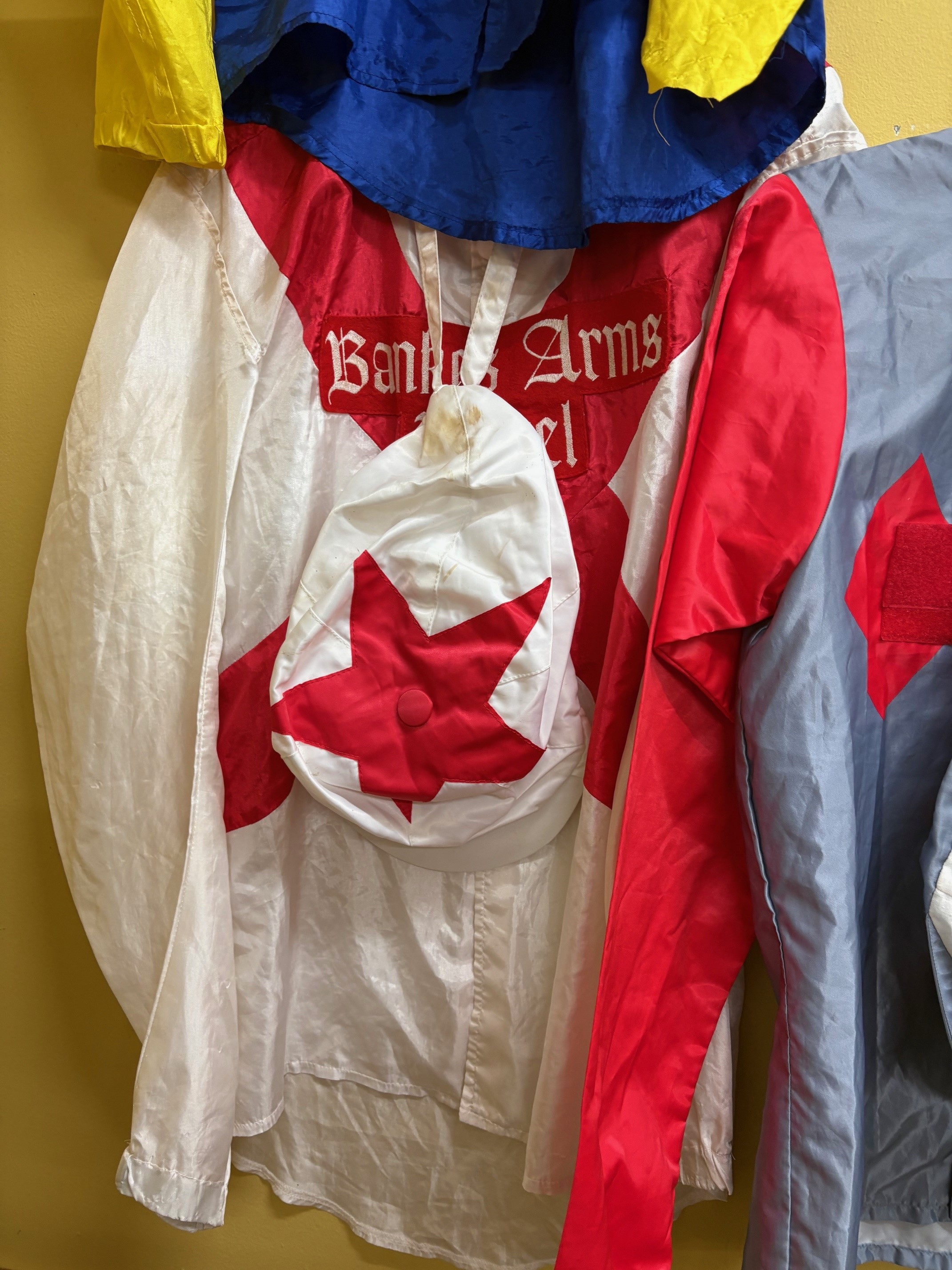 Bring a touch of real racing heritage to your space with these authentic jockey silks, each made by traditional manufacturers and featuring unique colours and patterns. Lightweight, eye-catching, and full of character, they’re perfect for collectors, decorators, or racing fans looking to showcase genuine memorabilia.