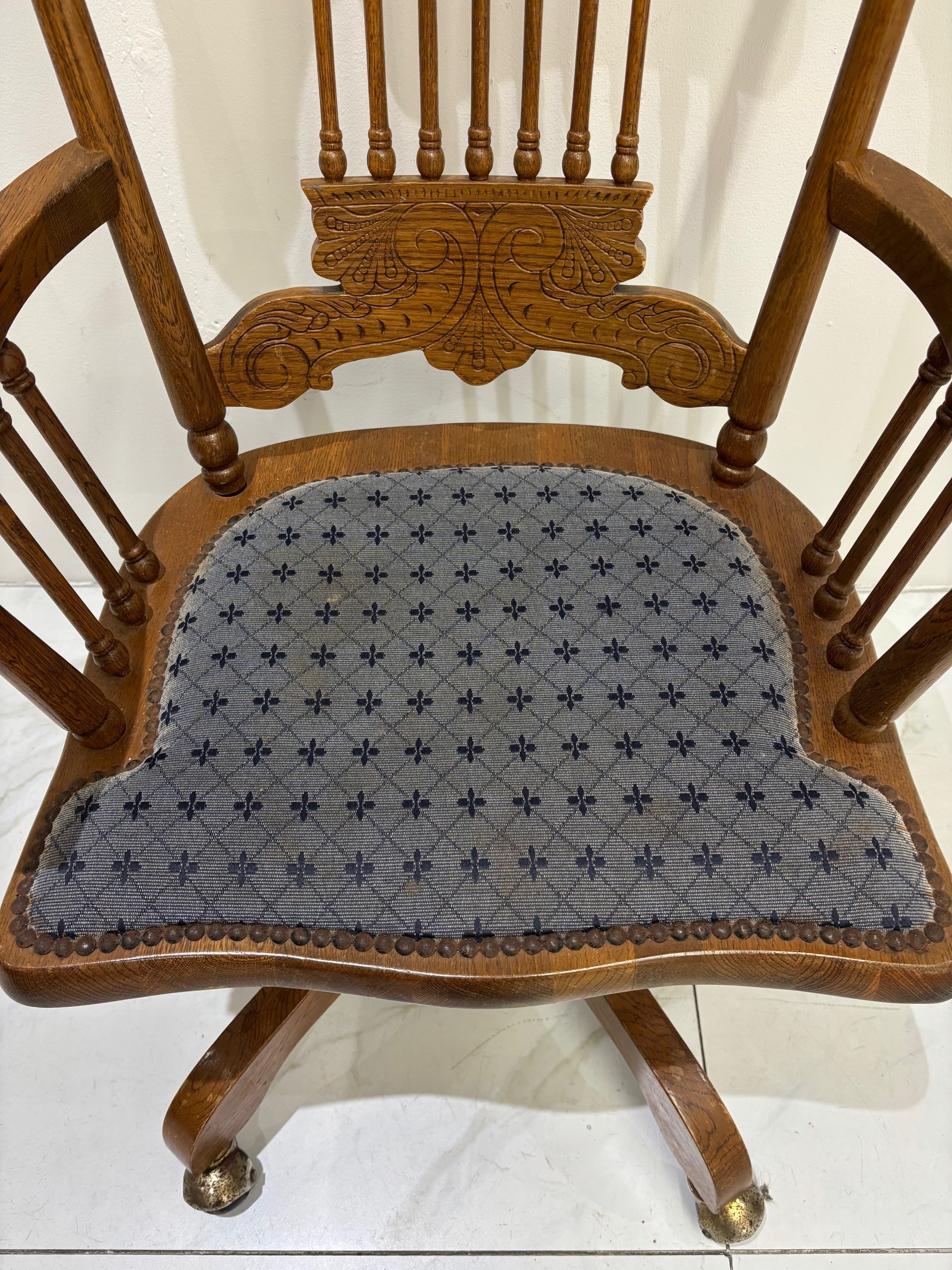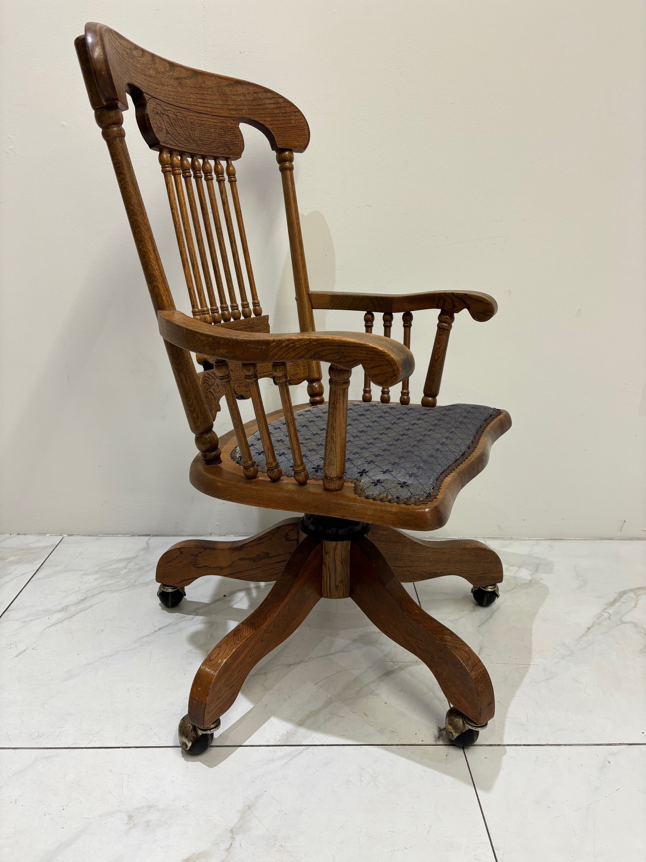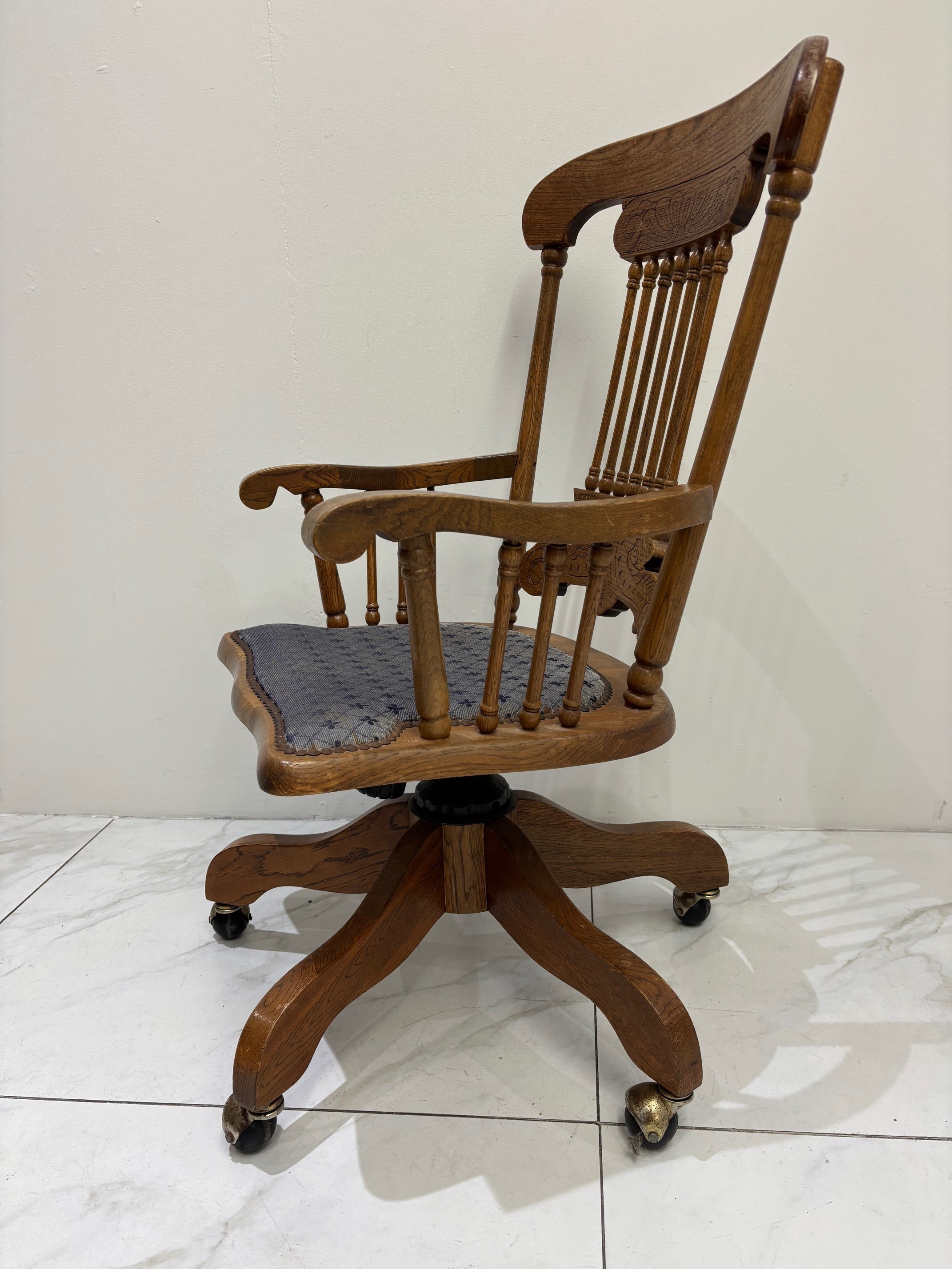 Vintage Solid Oak Office Chair with Adjustable Height - VIN1212J