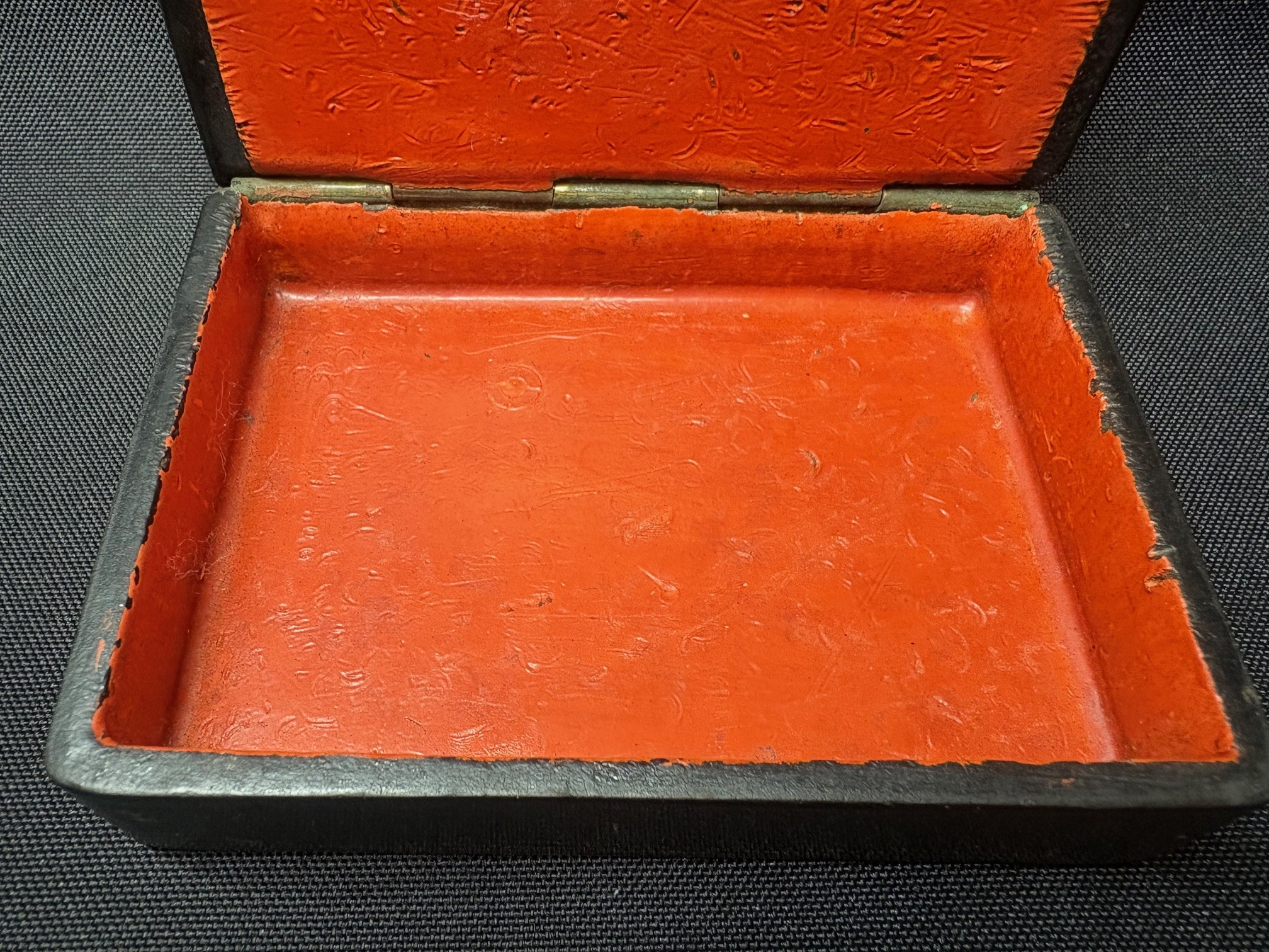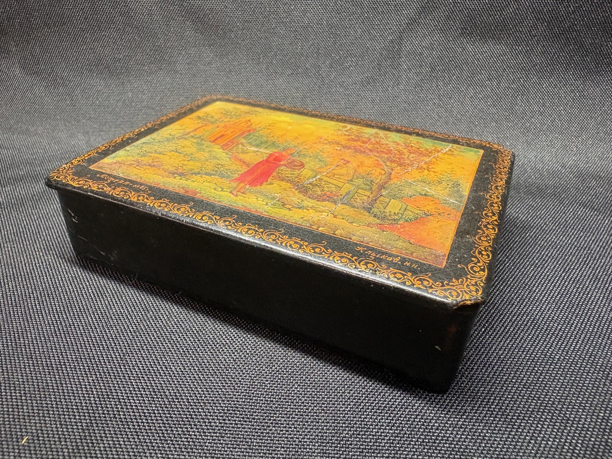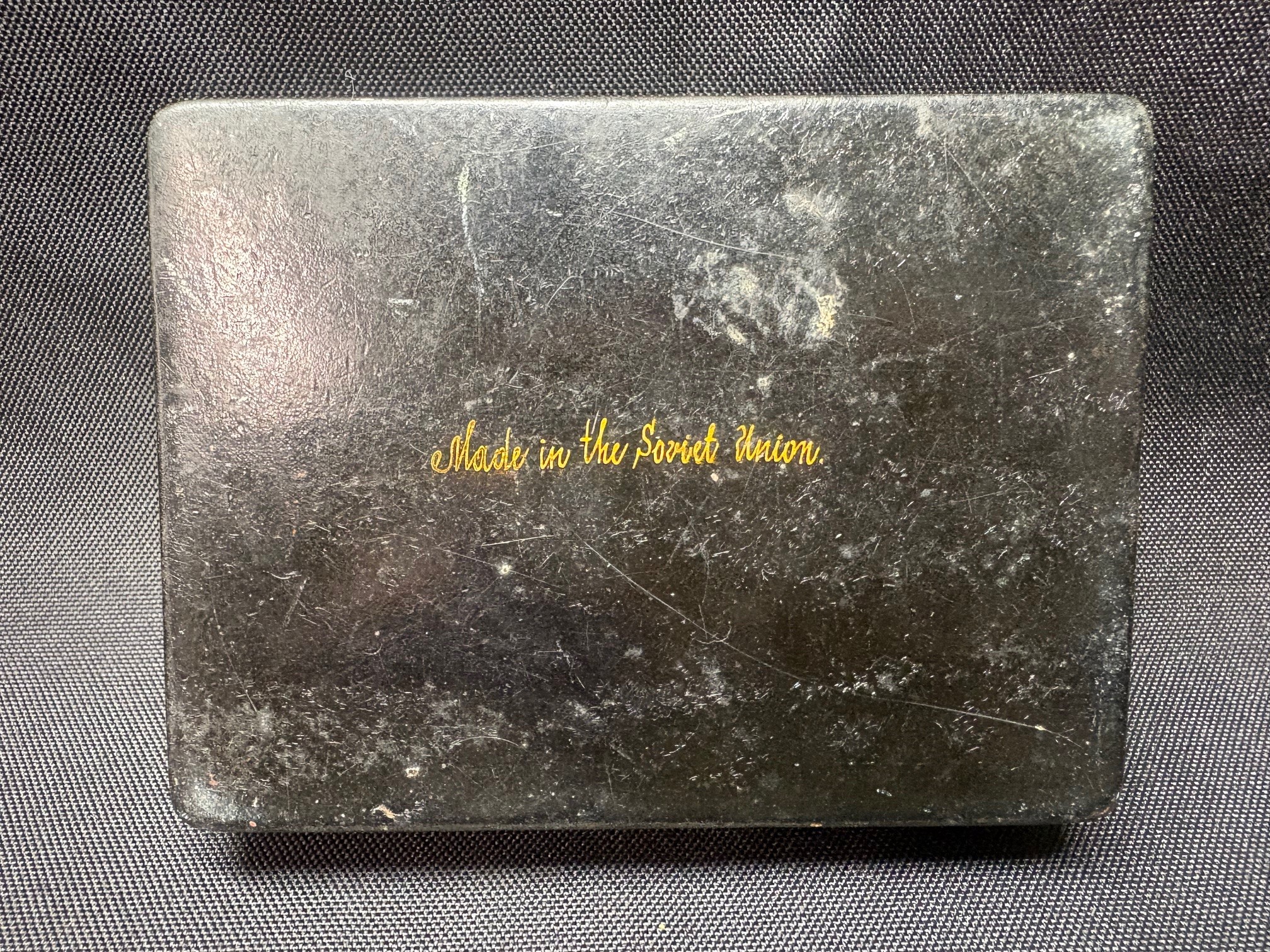 Vintage Soviet Union lacquered wood box. Marked 'Made In the Soviet Union.'