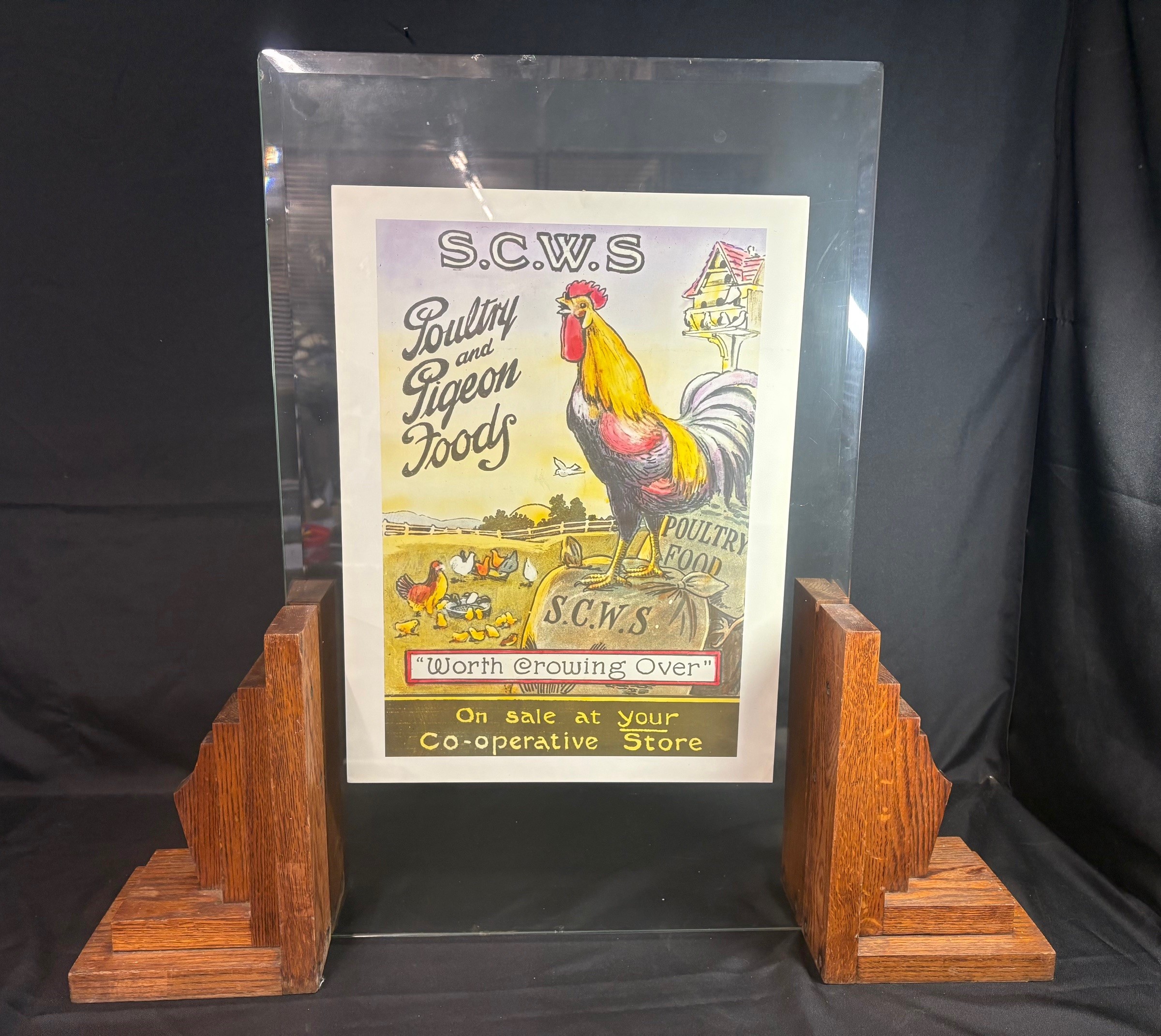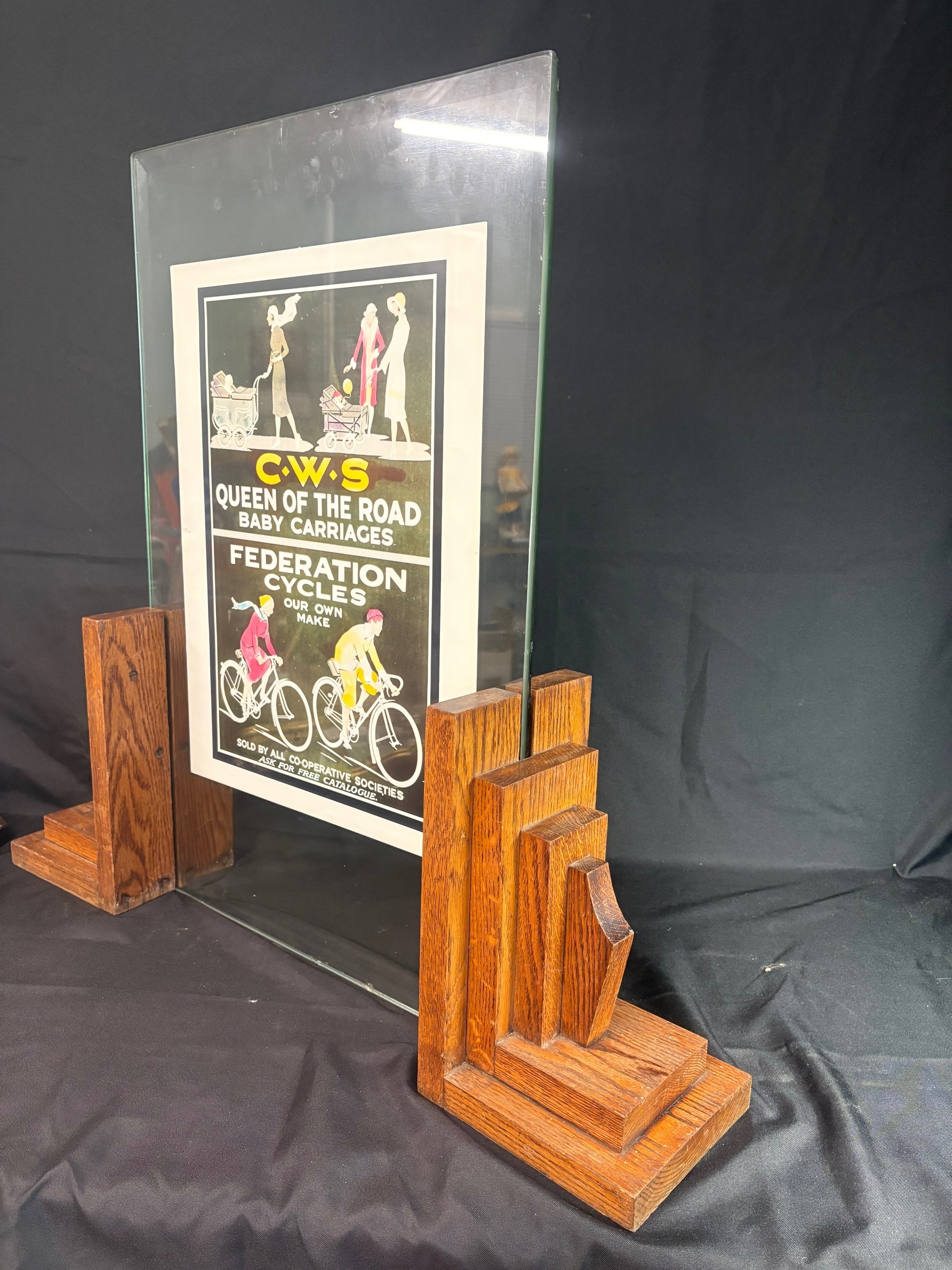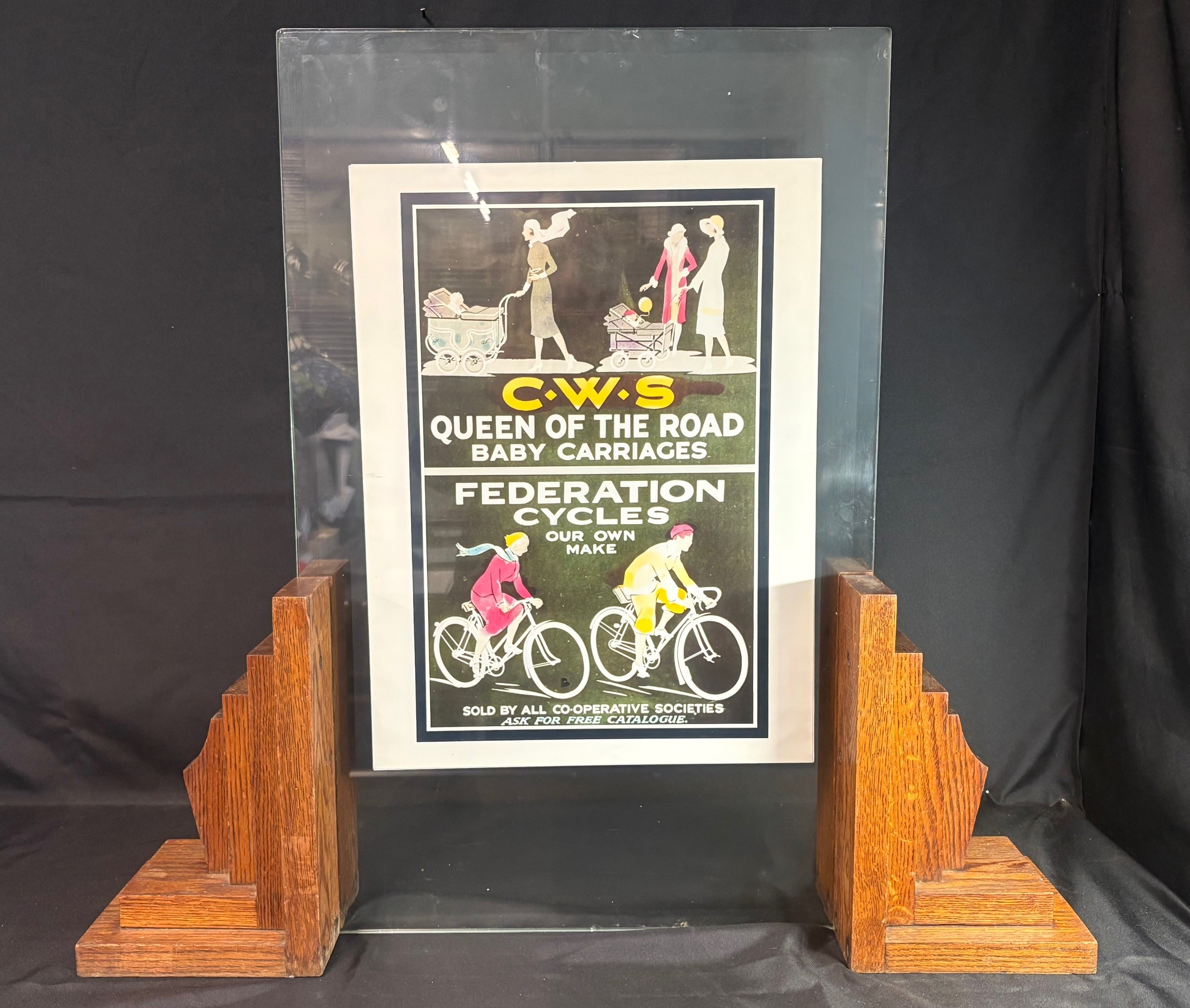 Original 1920/30’s Art Deco Double Glass Screen. The glass sections are separate so advertising artwork can be compressed within them and being double sided can give a different message either side.