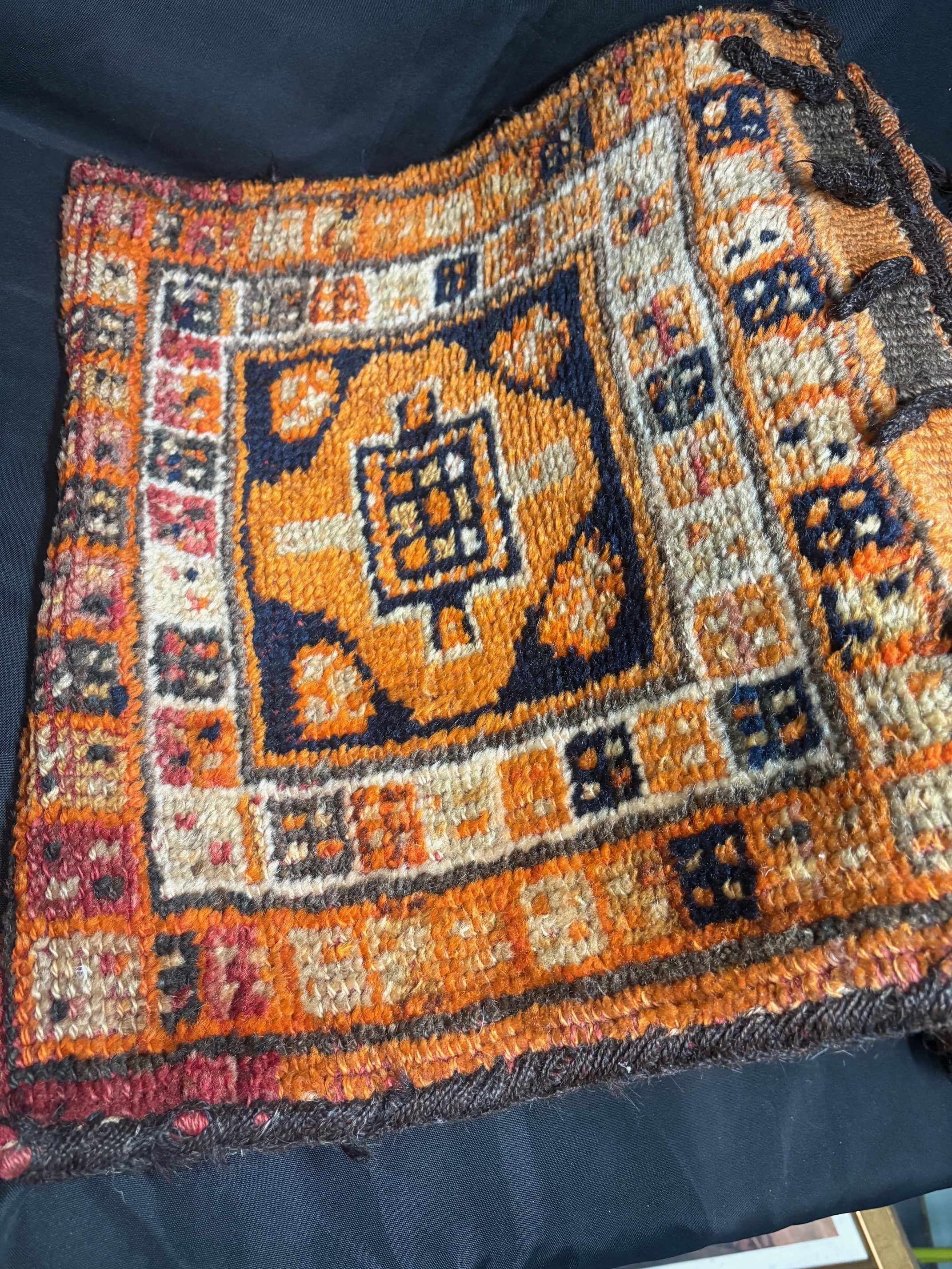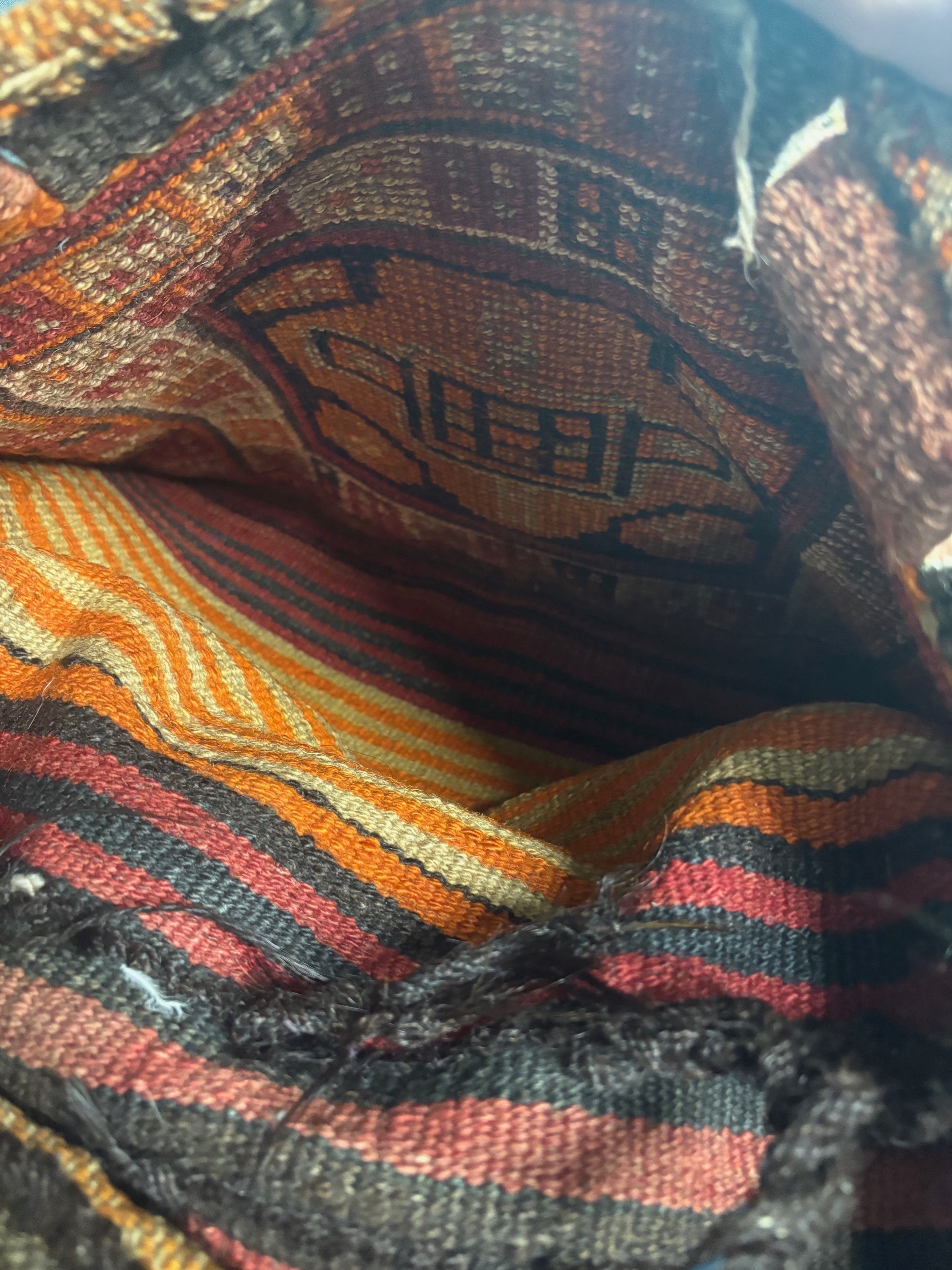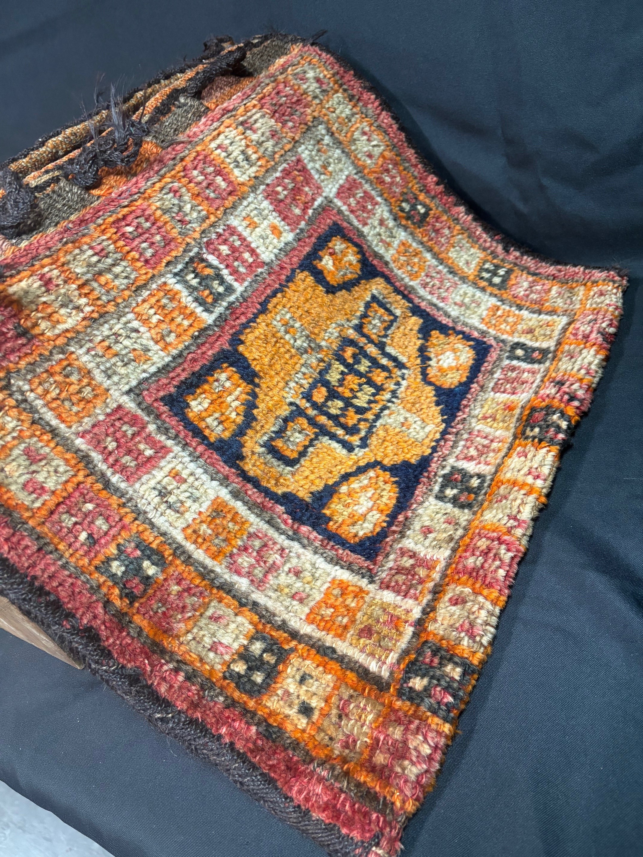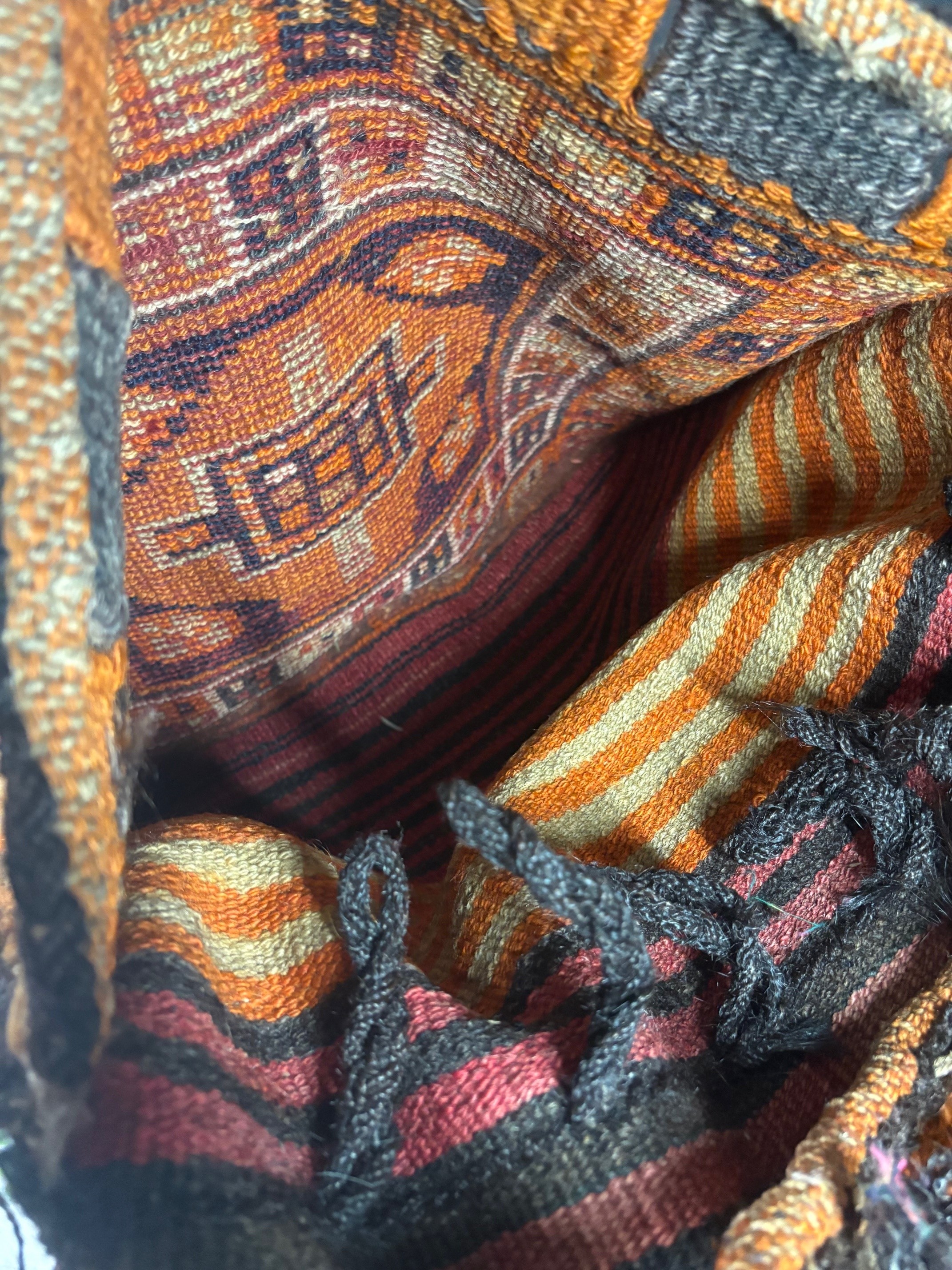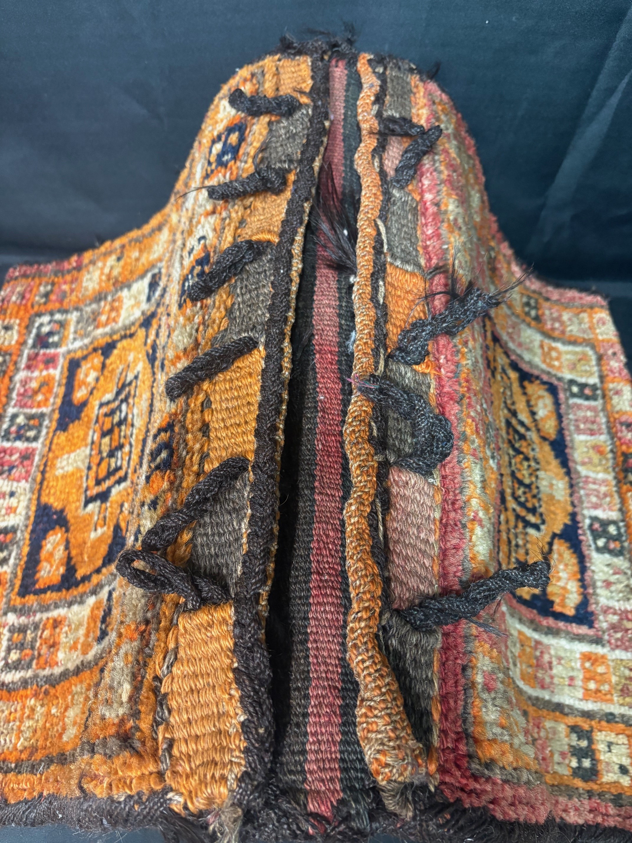 Afghan mid century Tribal saddle bag handmade with hand knotted pile intricately woven with kilim reverse.