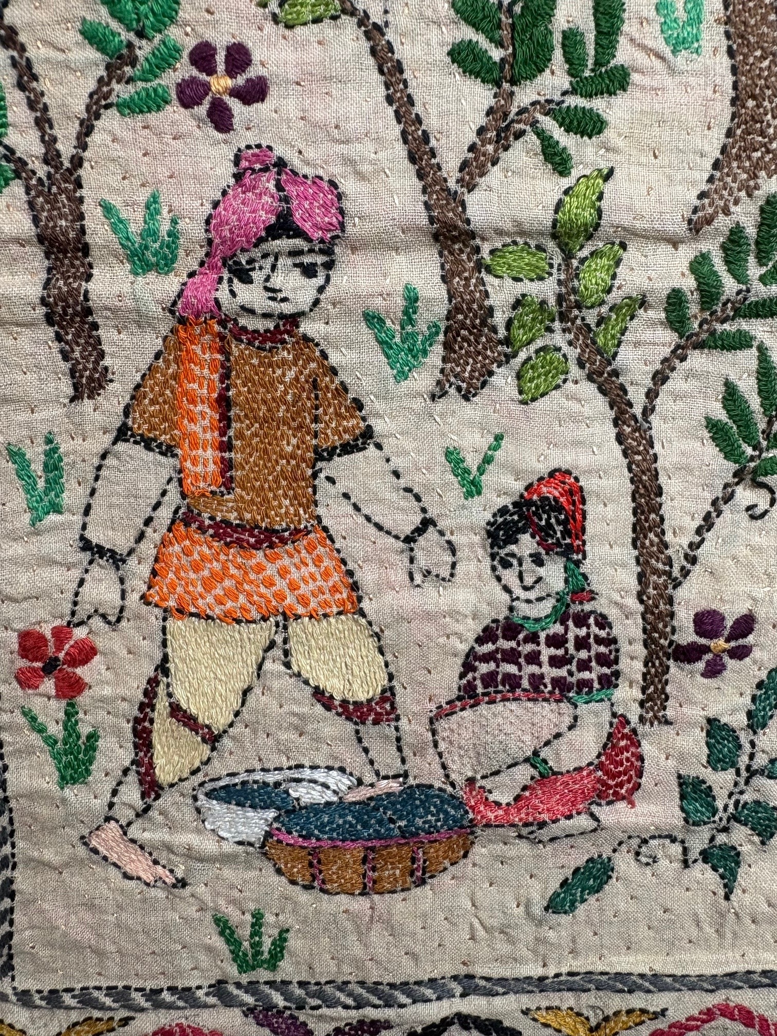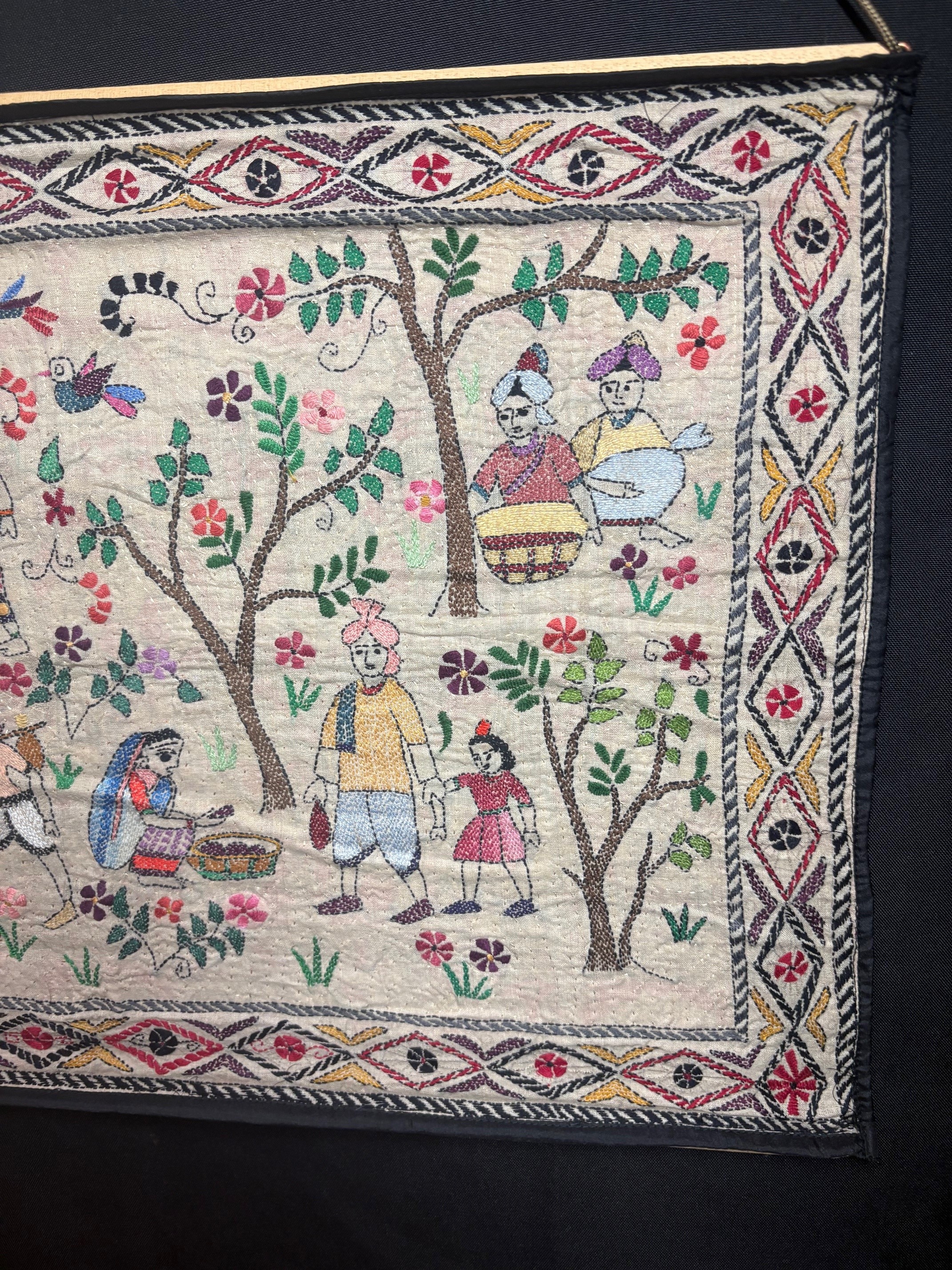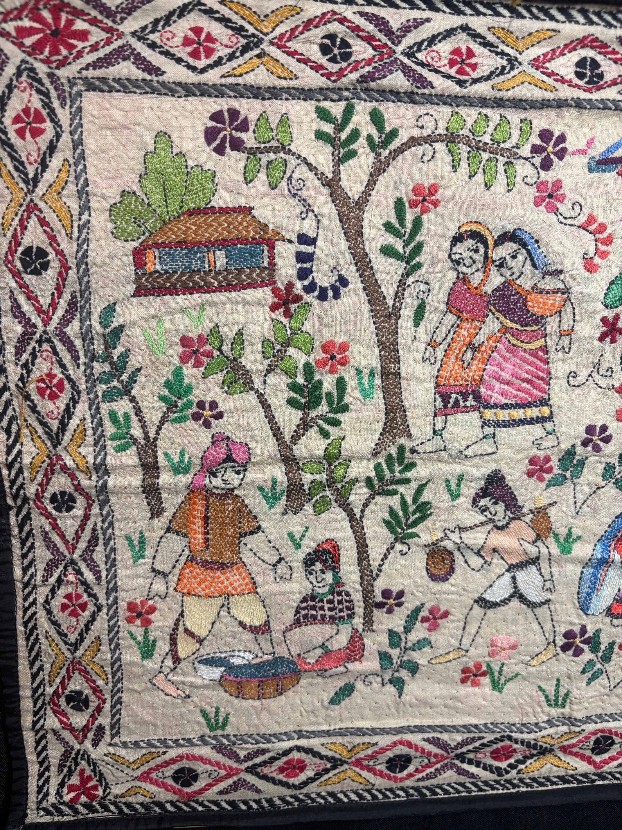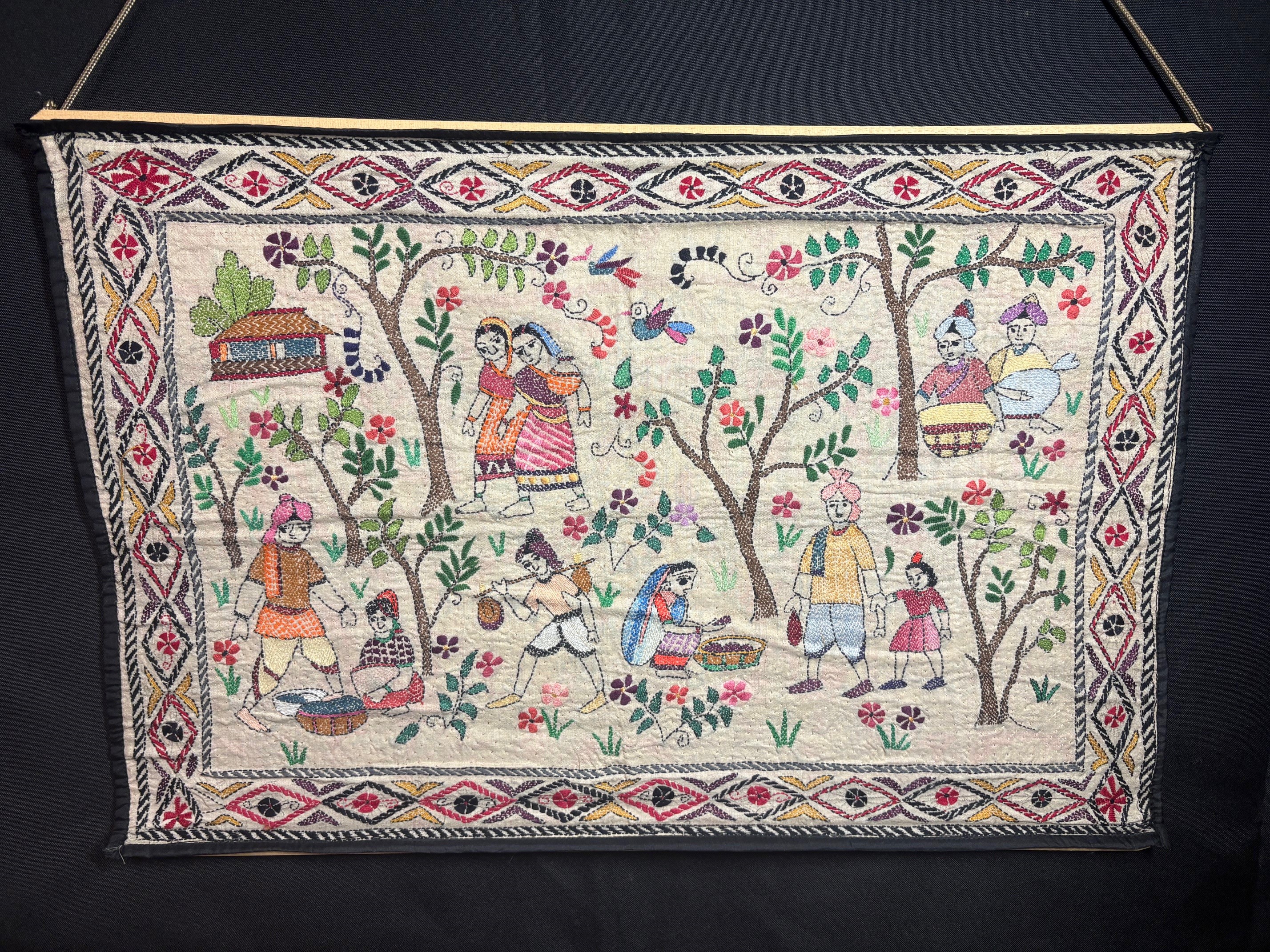 Vintage Indian Hand-Embroidered Textile Wall Hanging - VIN1152J