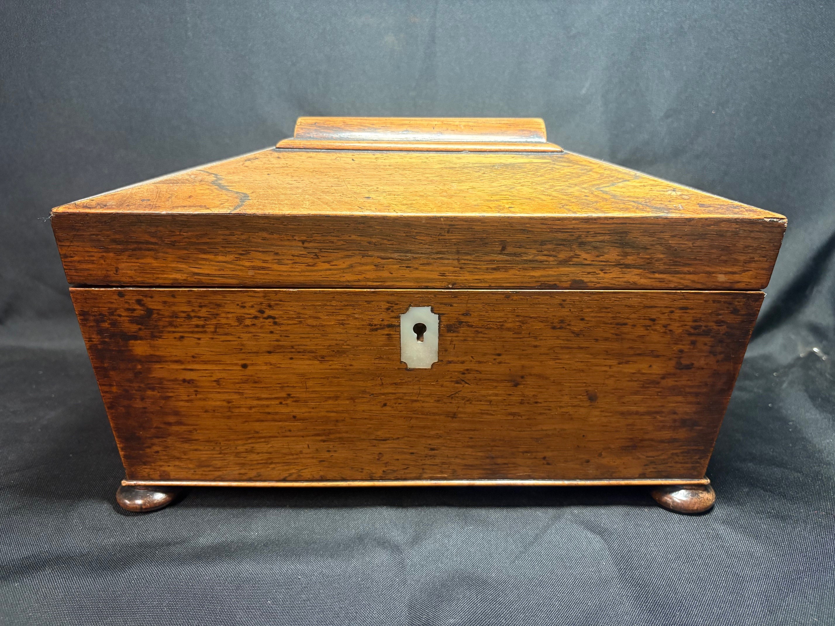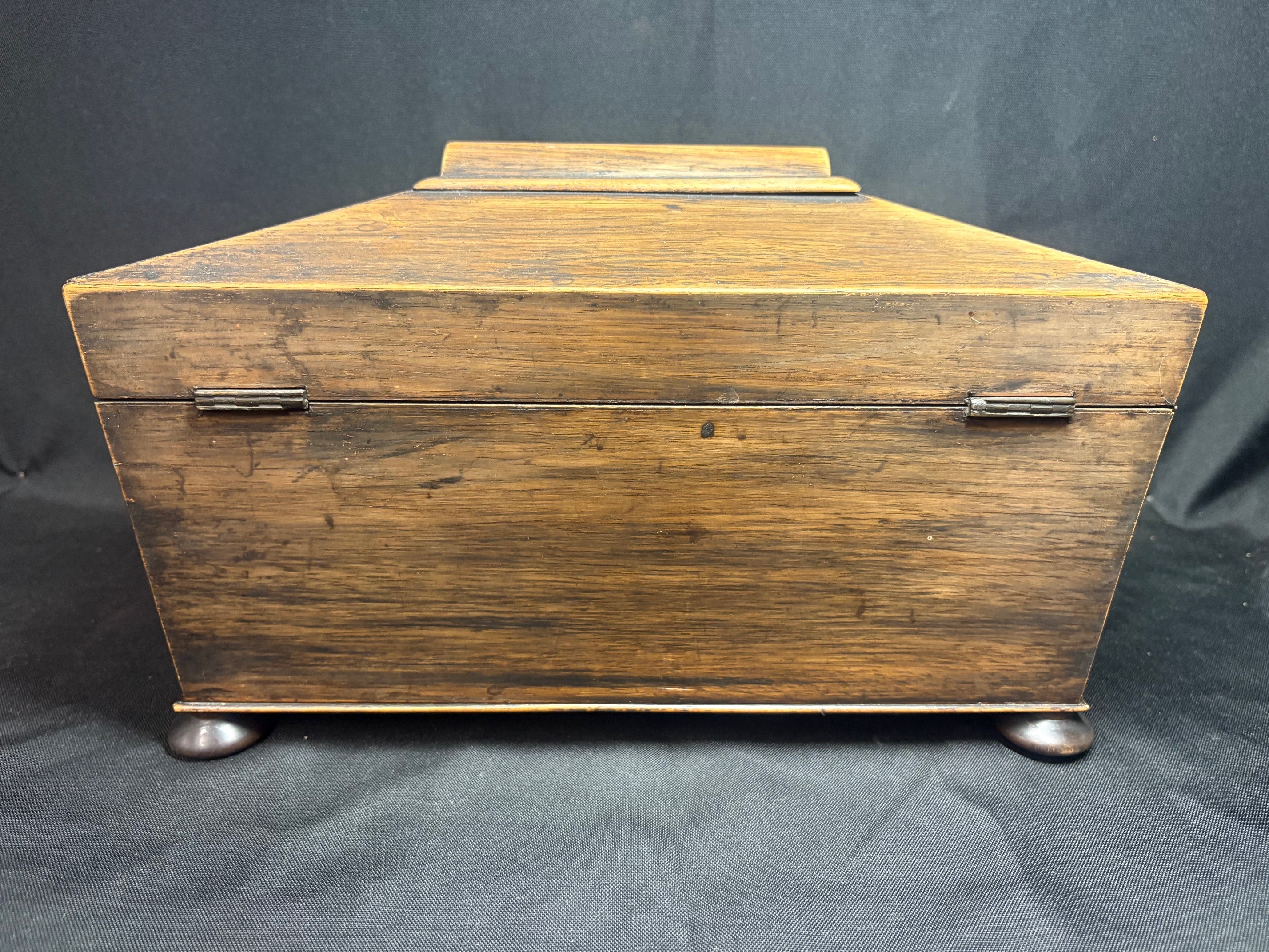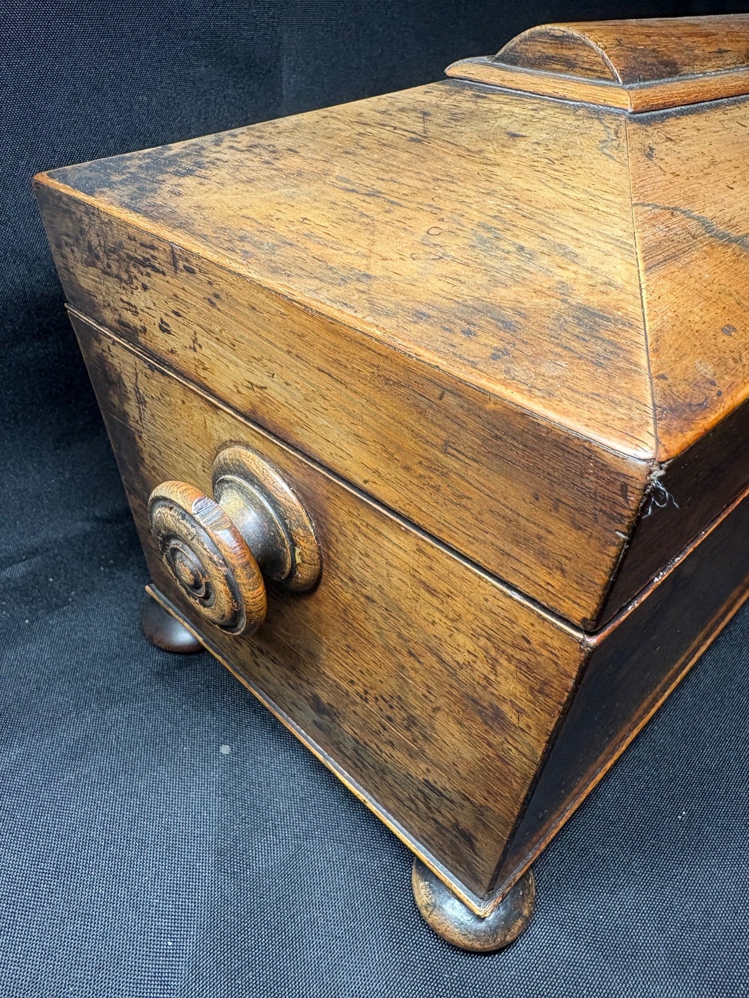 19th Century Tea Caddy - Sarcophagus Shape - Consists of mixing bowl and 2 lidded caddies - Set on bun feet.