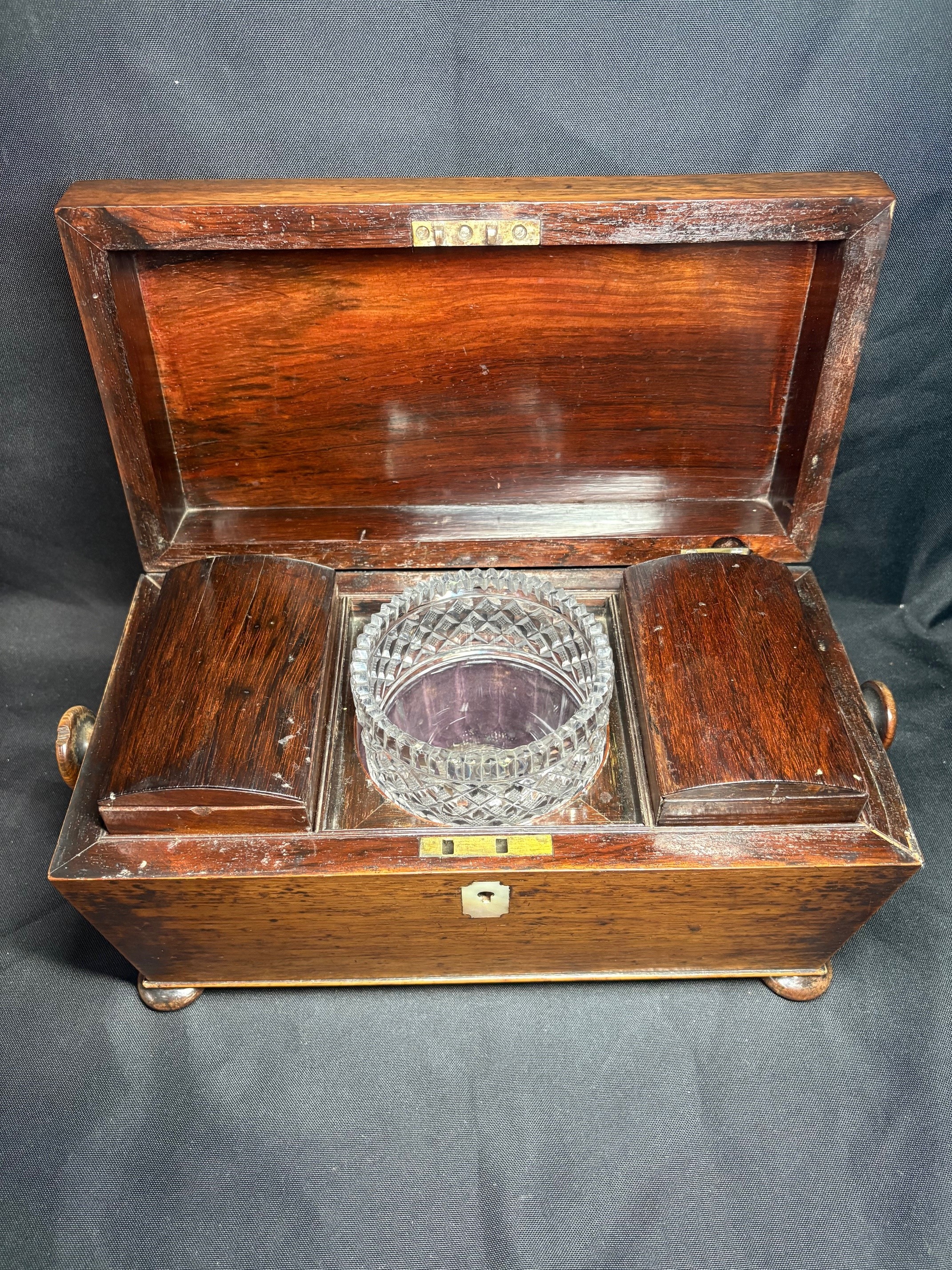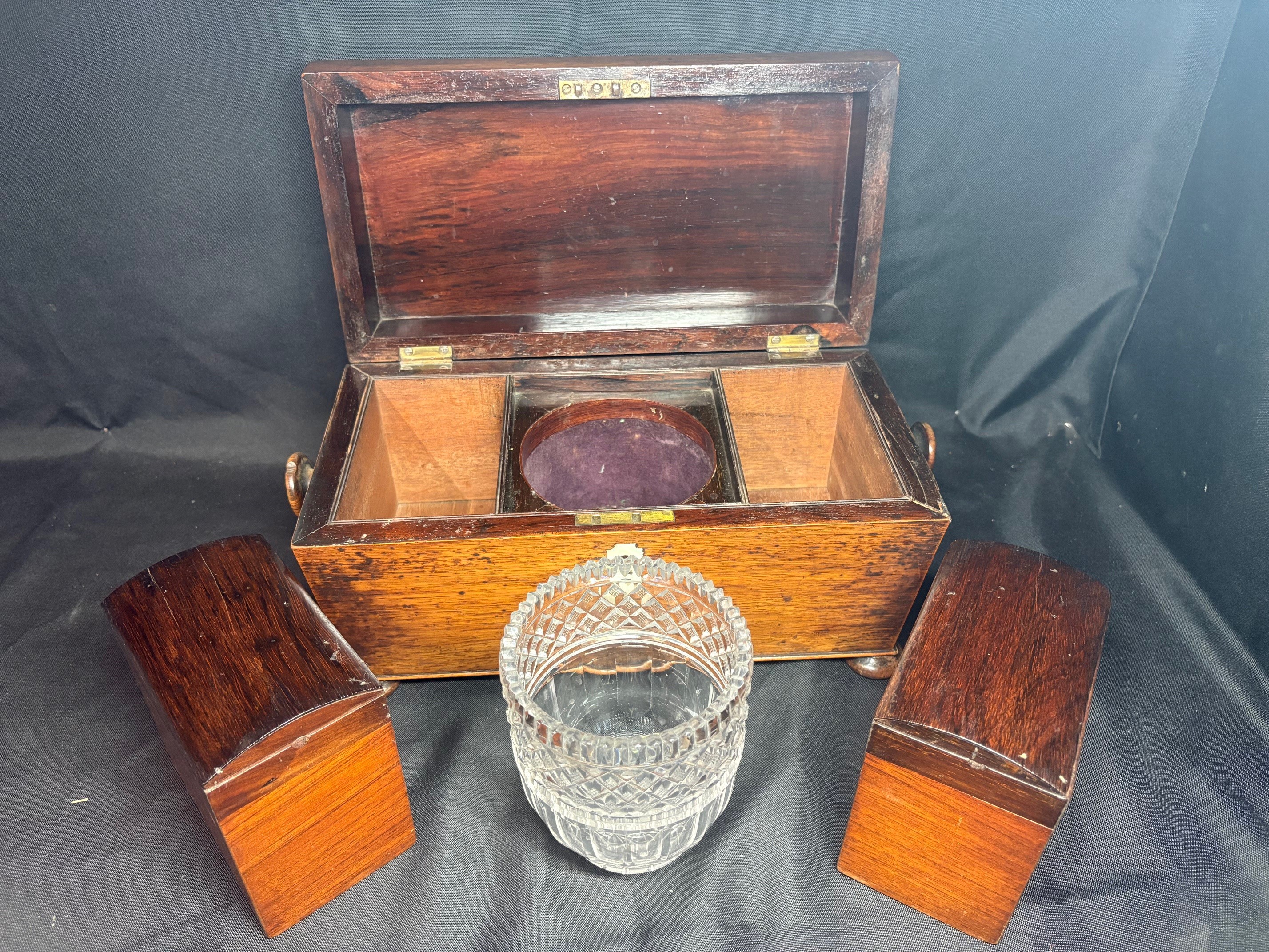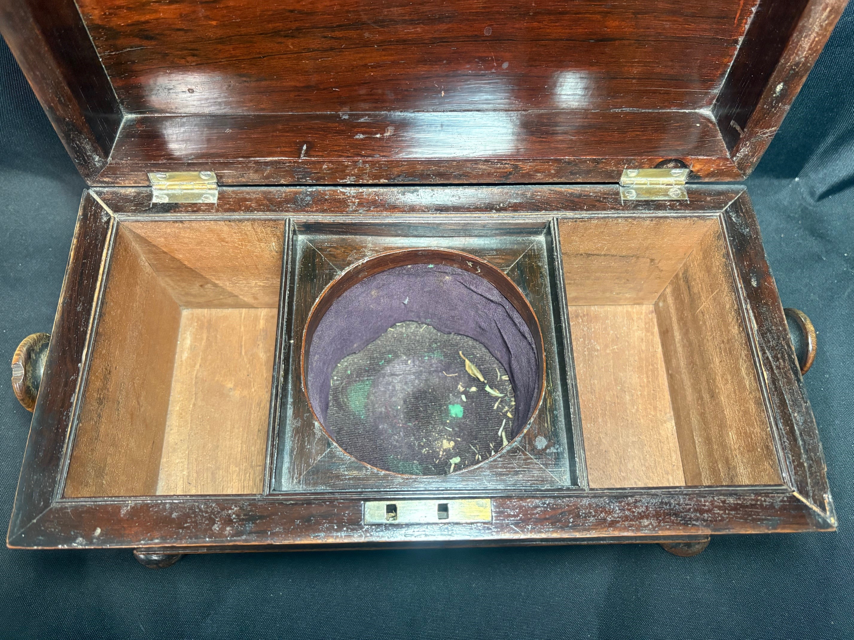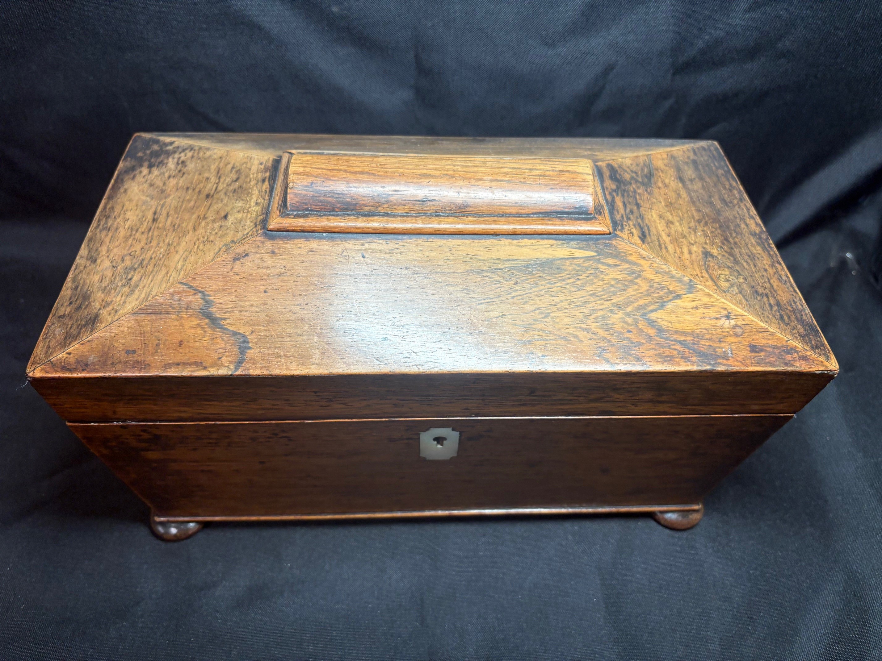 19th Century Tea Caddy - Sarcophagus Shape - Consists of mixing bowl and 2 lidded caddies - Set on bun feet.
