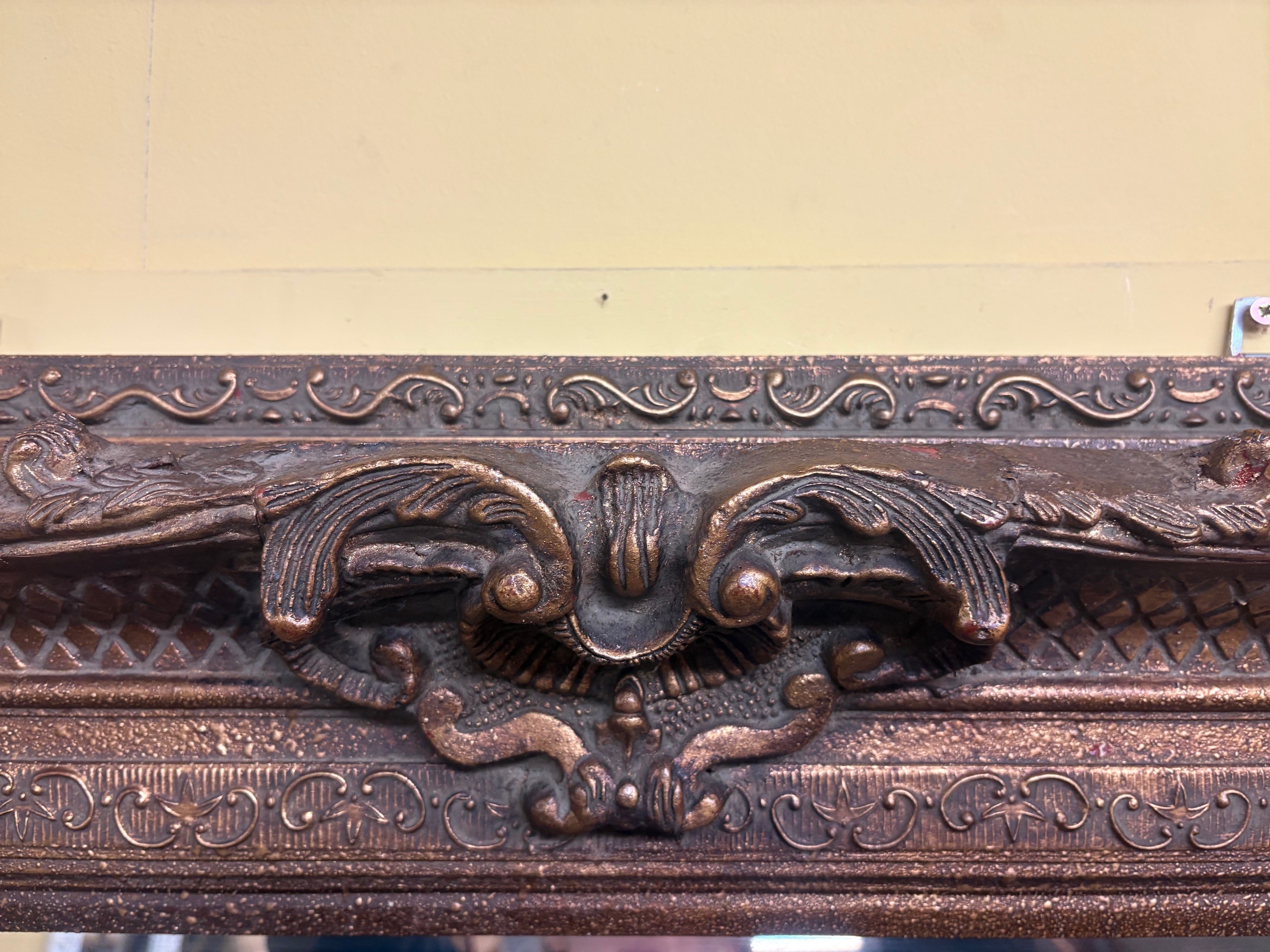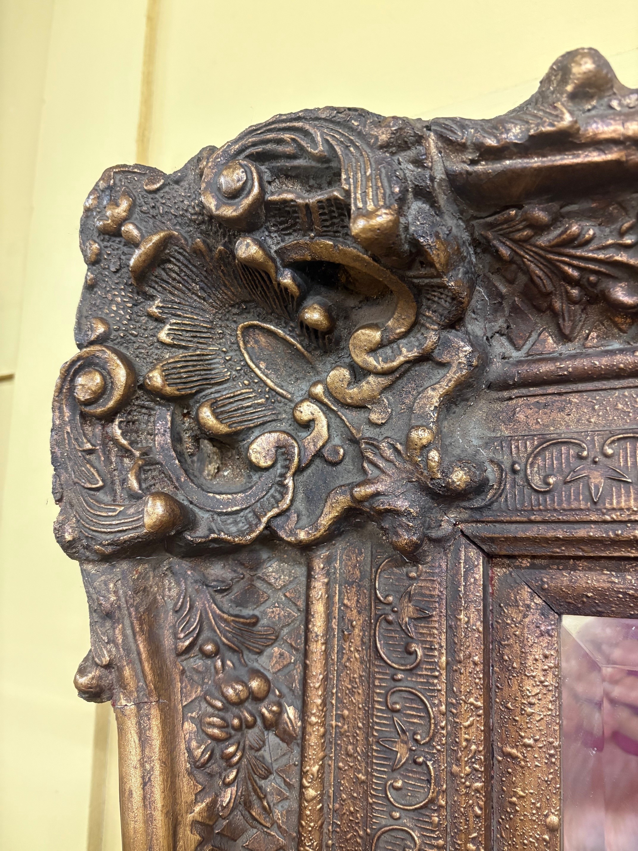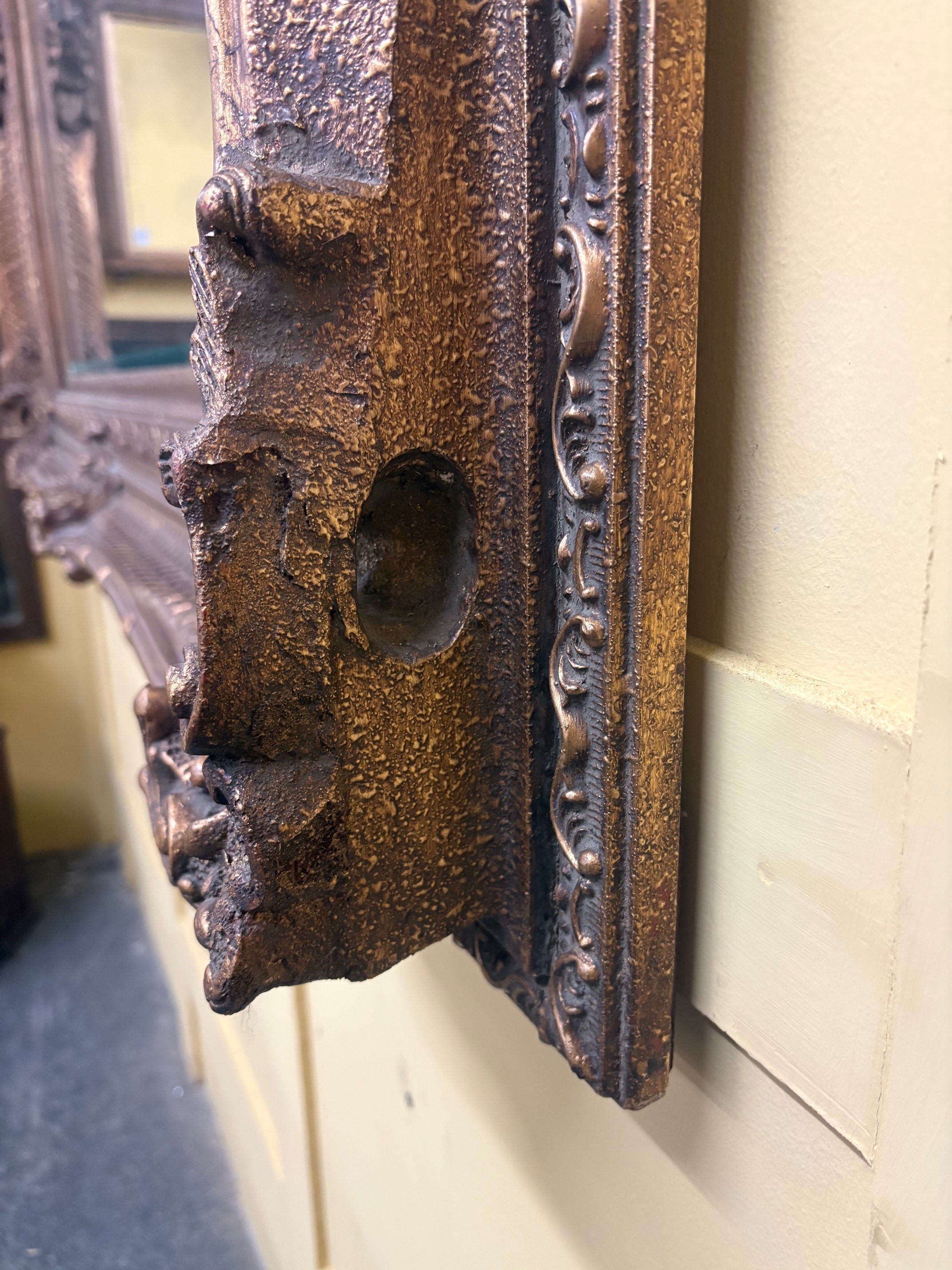 Large ornate richly detailed gilt frame - in antique gold tones with age related patina.