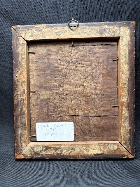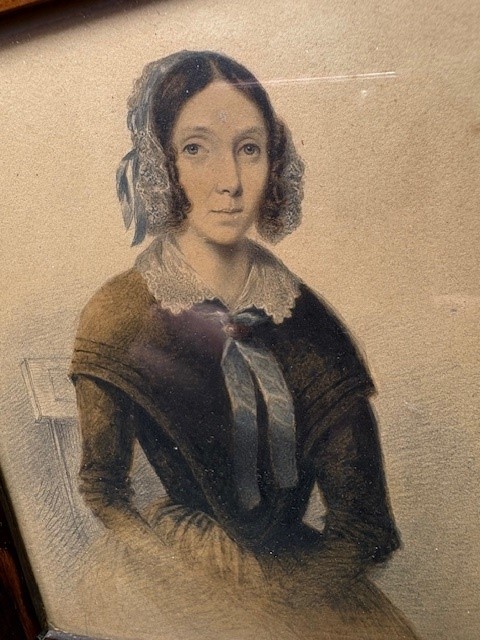 A pair of 19th century portraits in original frames both dated 1847 - showing the gentleman in a fine cravat and the lady in a white lace bonnet.