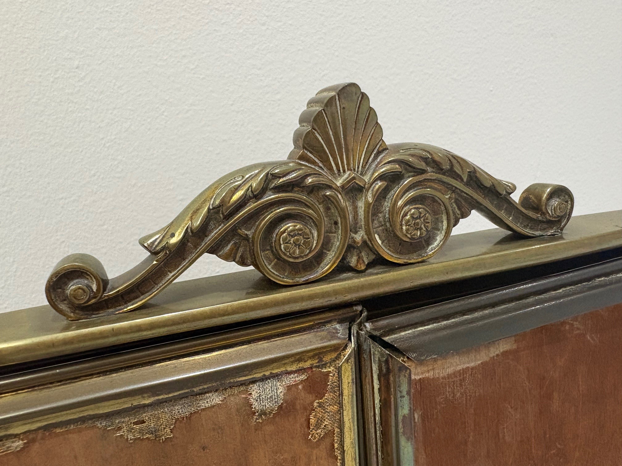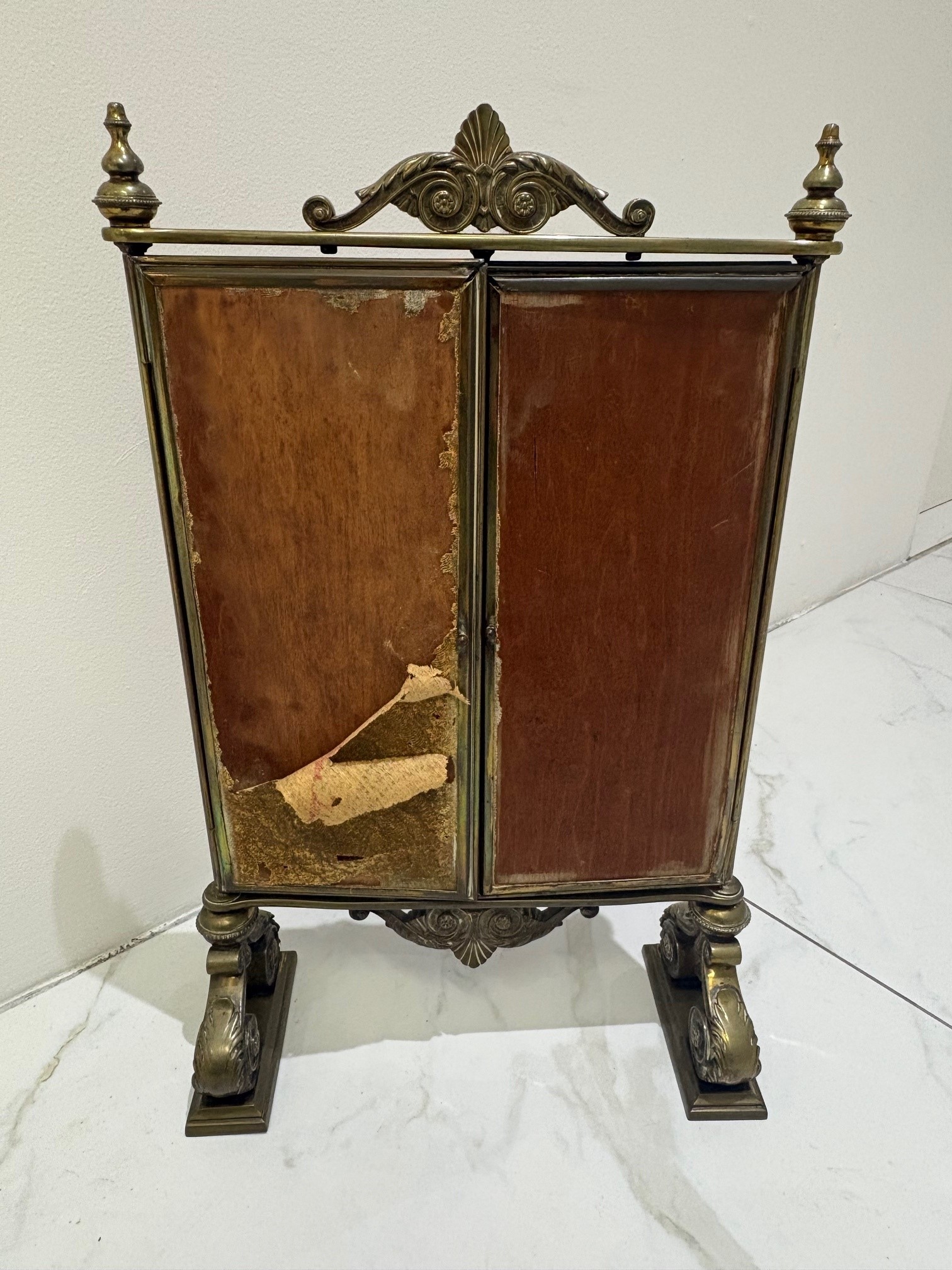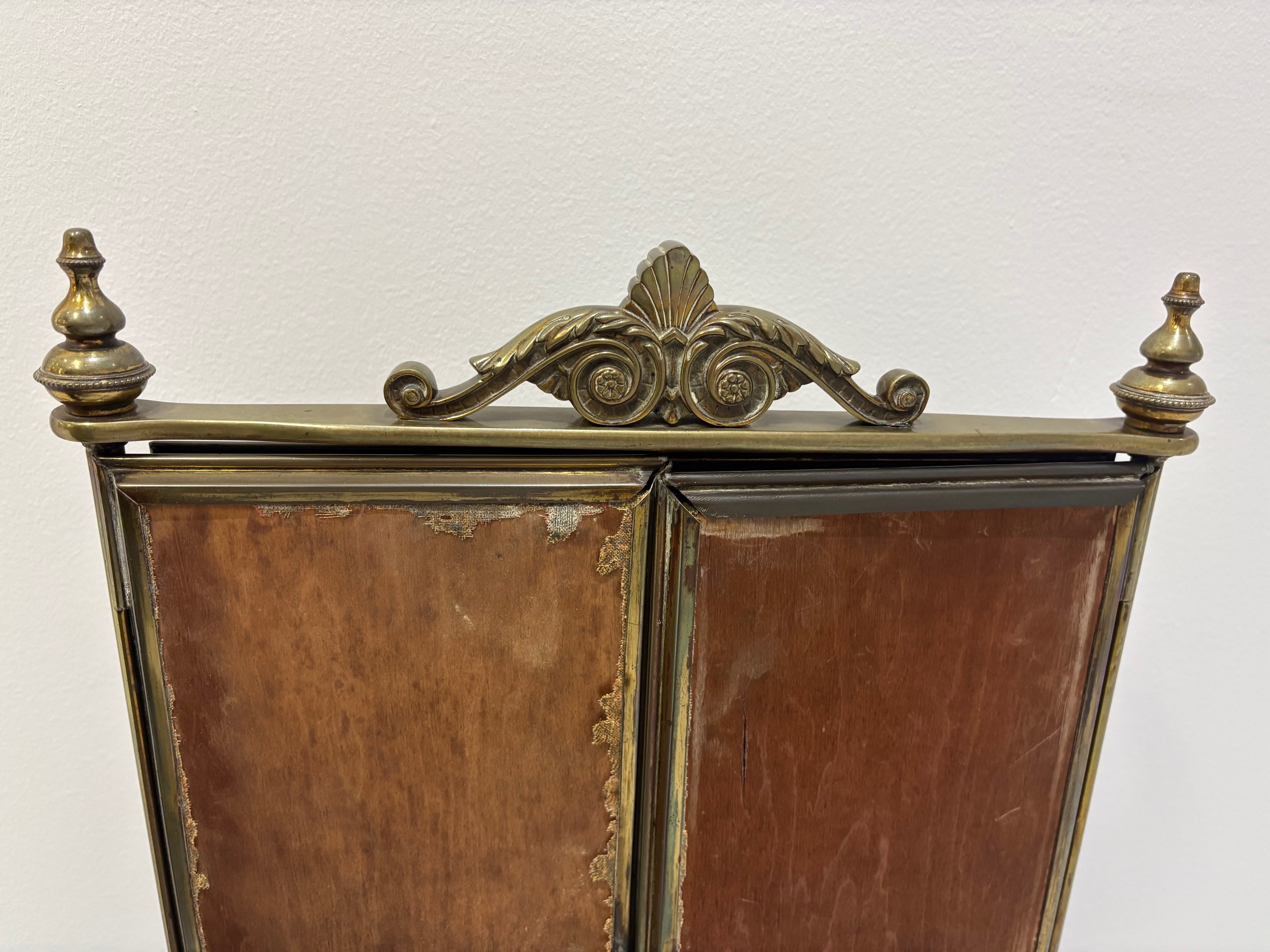 Beautiful Antique 3 panel dressing table mirror with ornate brass frame and decorative scrolls.