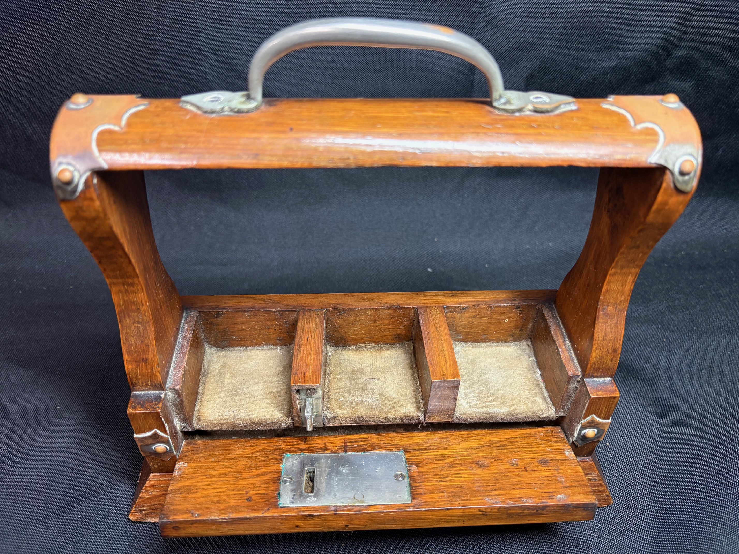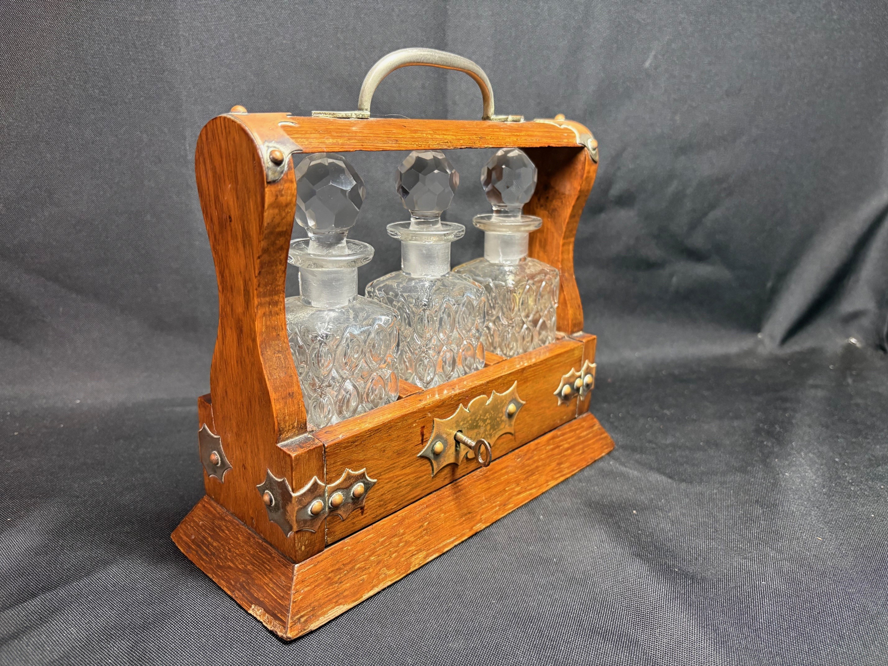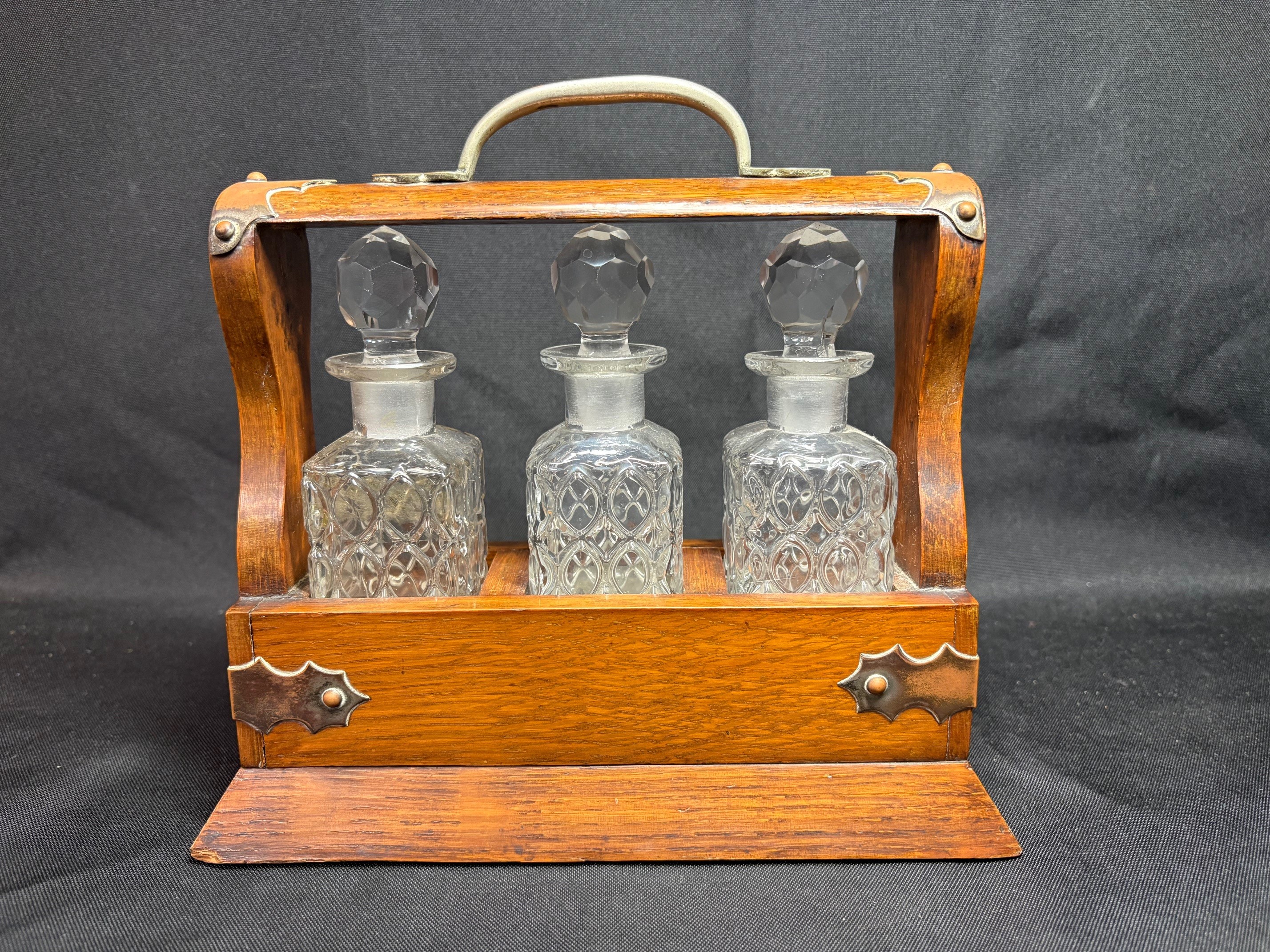 Antique Oak Three Mini Decanter Tantalus With Brass Fittings - VIN1229Q