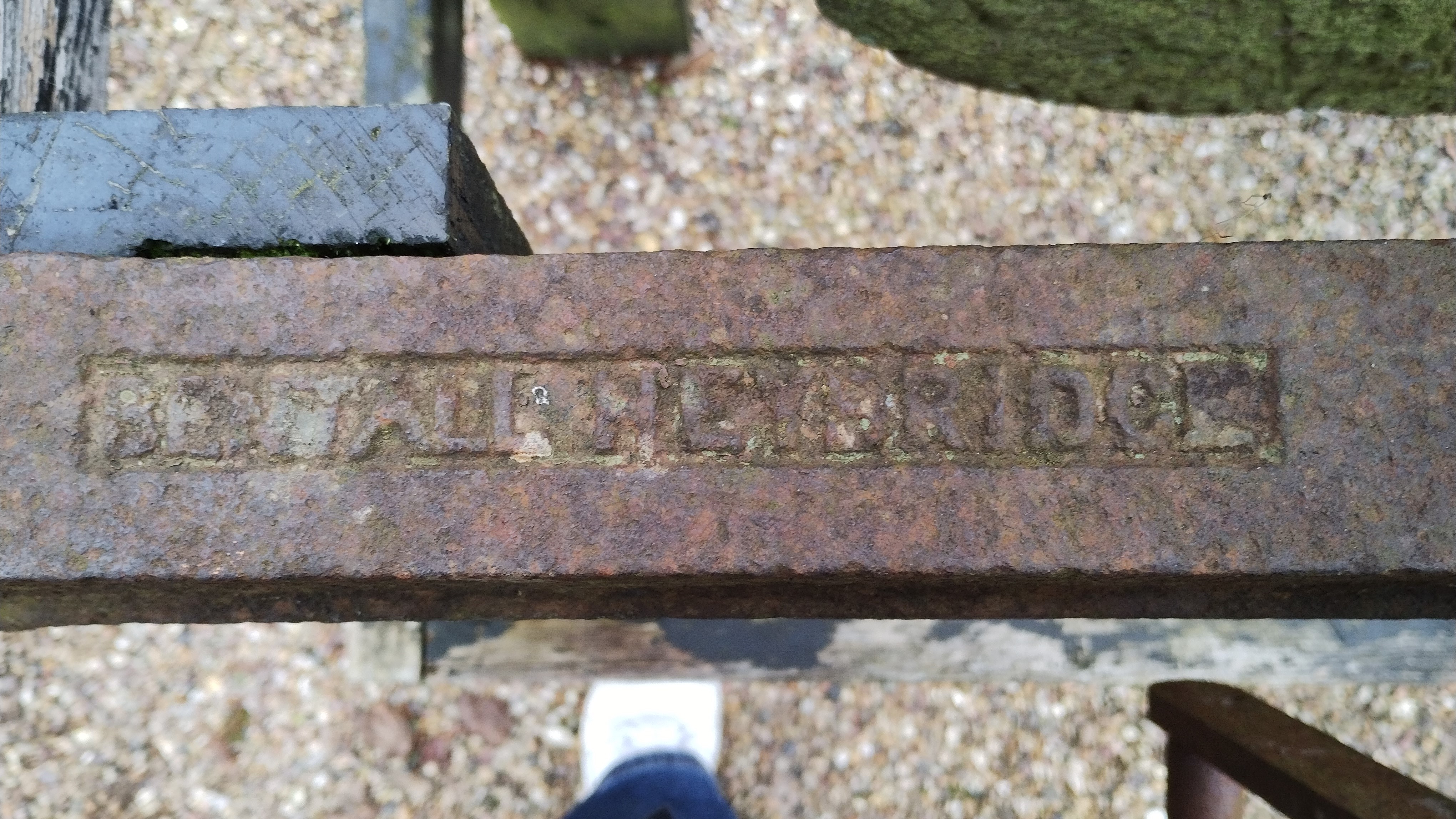 Antique hand operate whetstone grinding wheel manufactured by Bentall of Heybridge, Maldon, England. Typically used for sharpening blades.