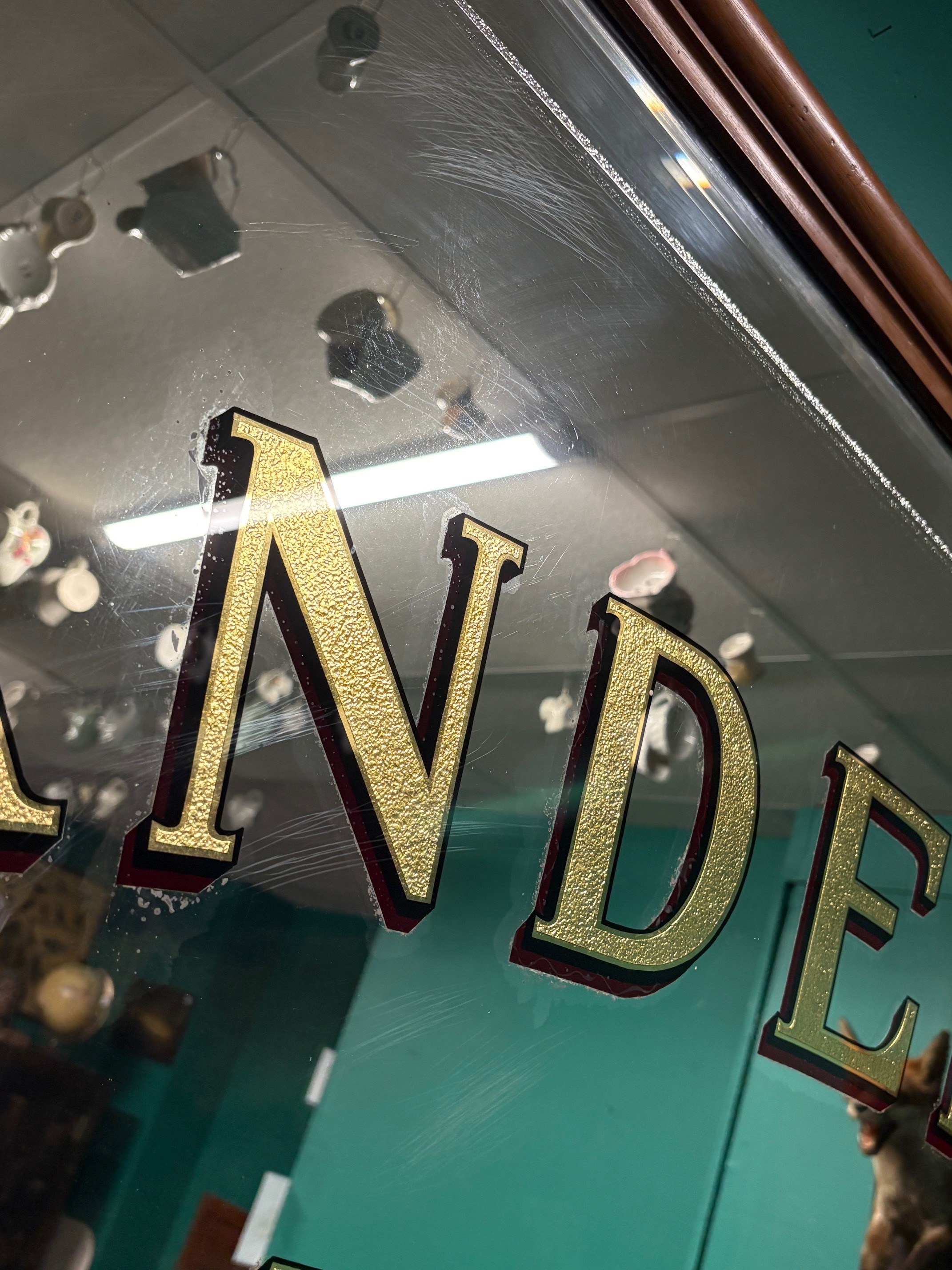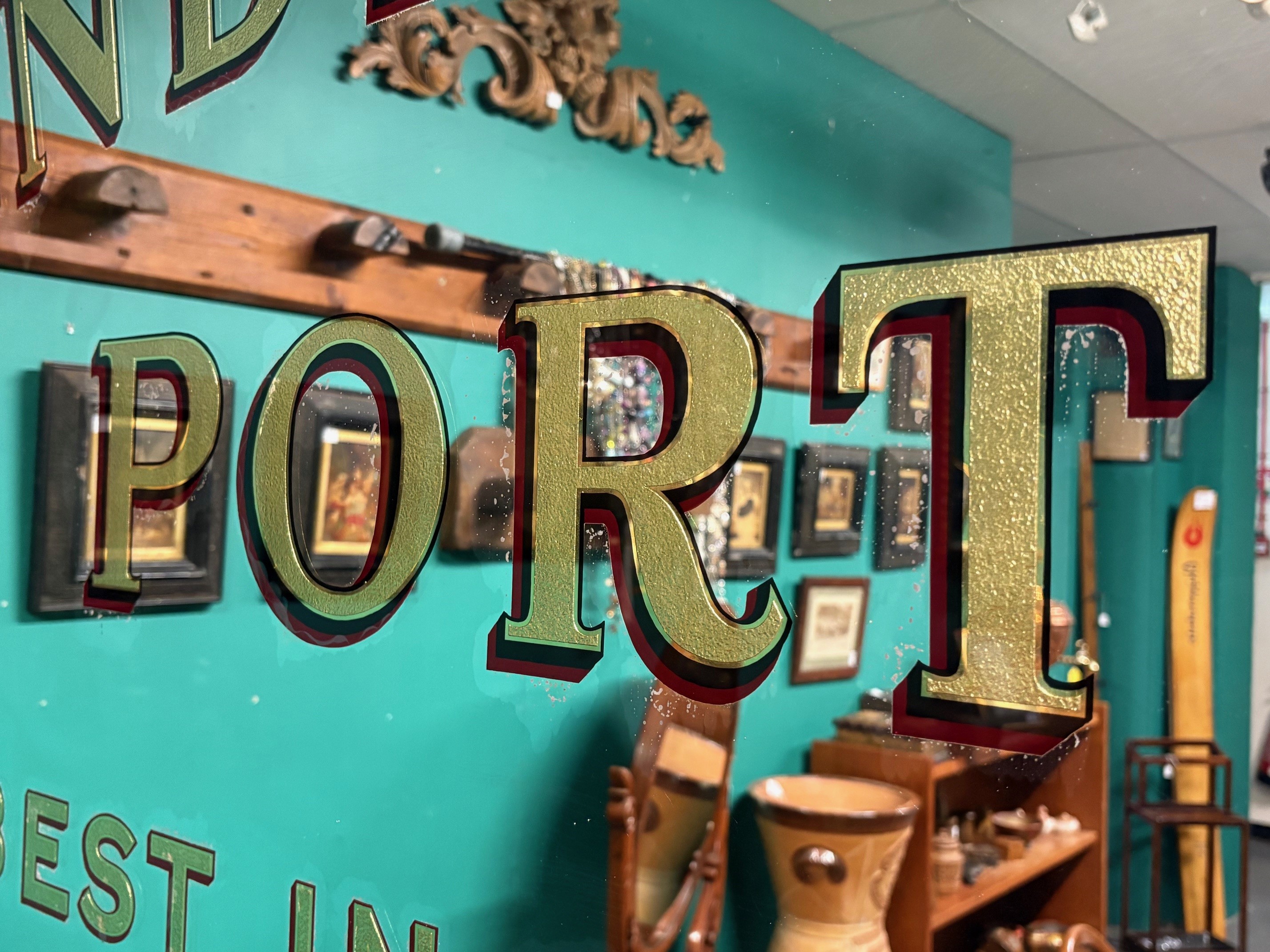Fabulous Original 6 foot Antique Sandemans Port pub mirror with reverse etching and gold leaf detailing.