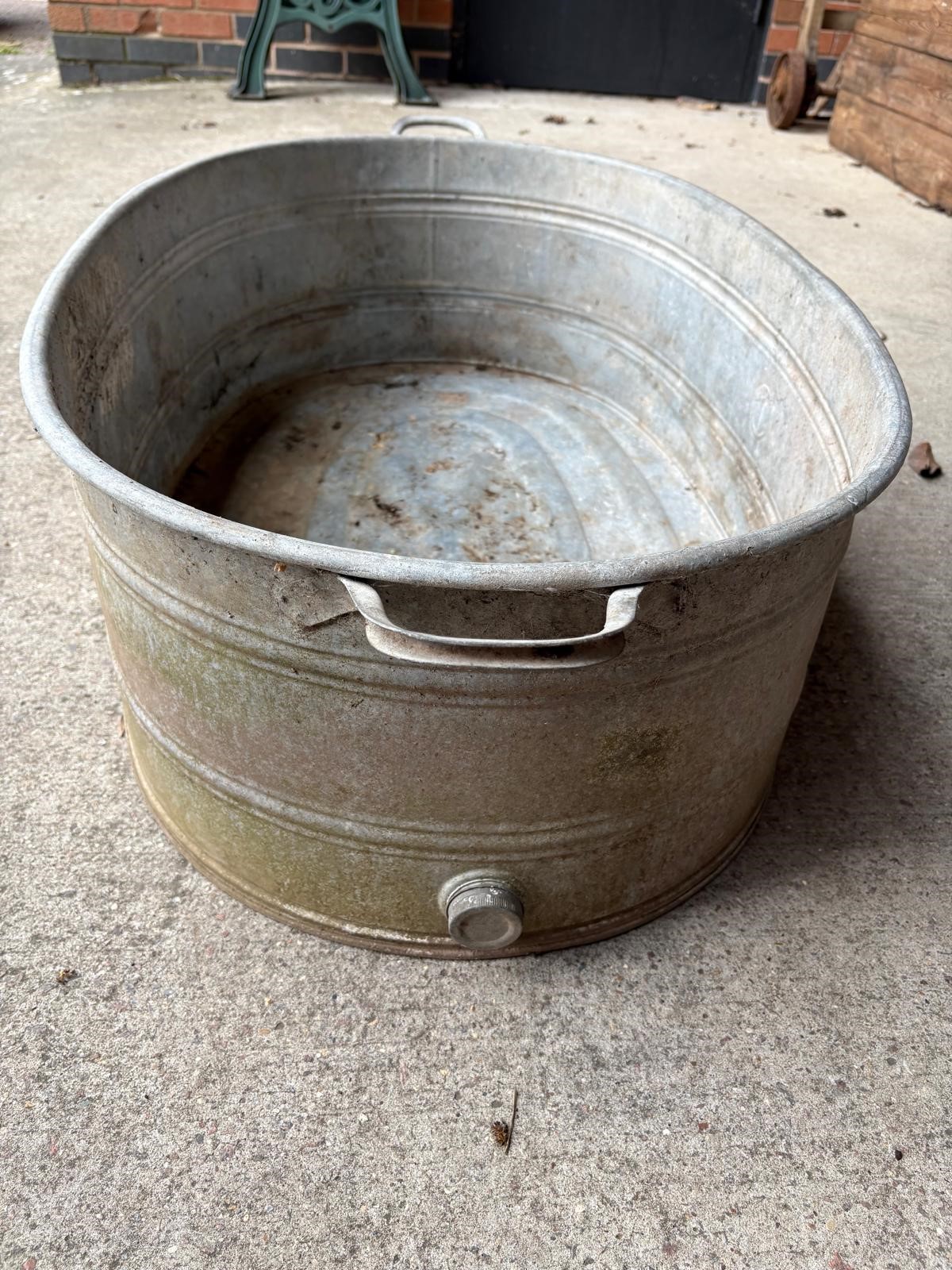 Vintage Galvanised Large Oval Tin Bath With Twin Handles And Screw Cap - VIN1244E