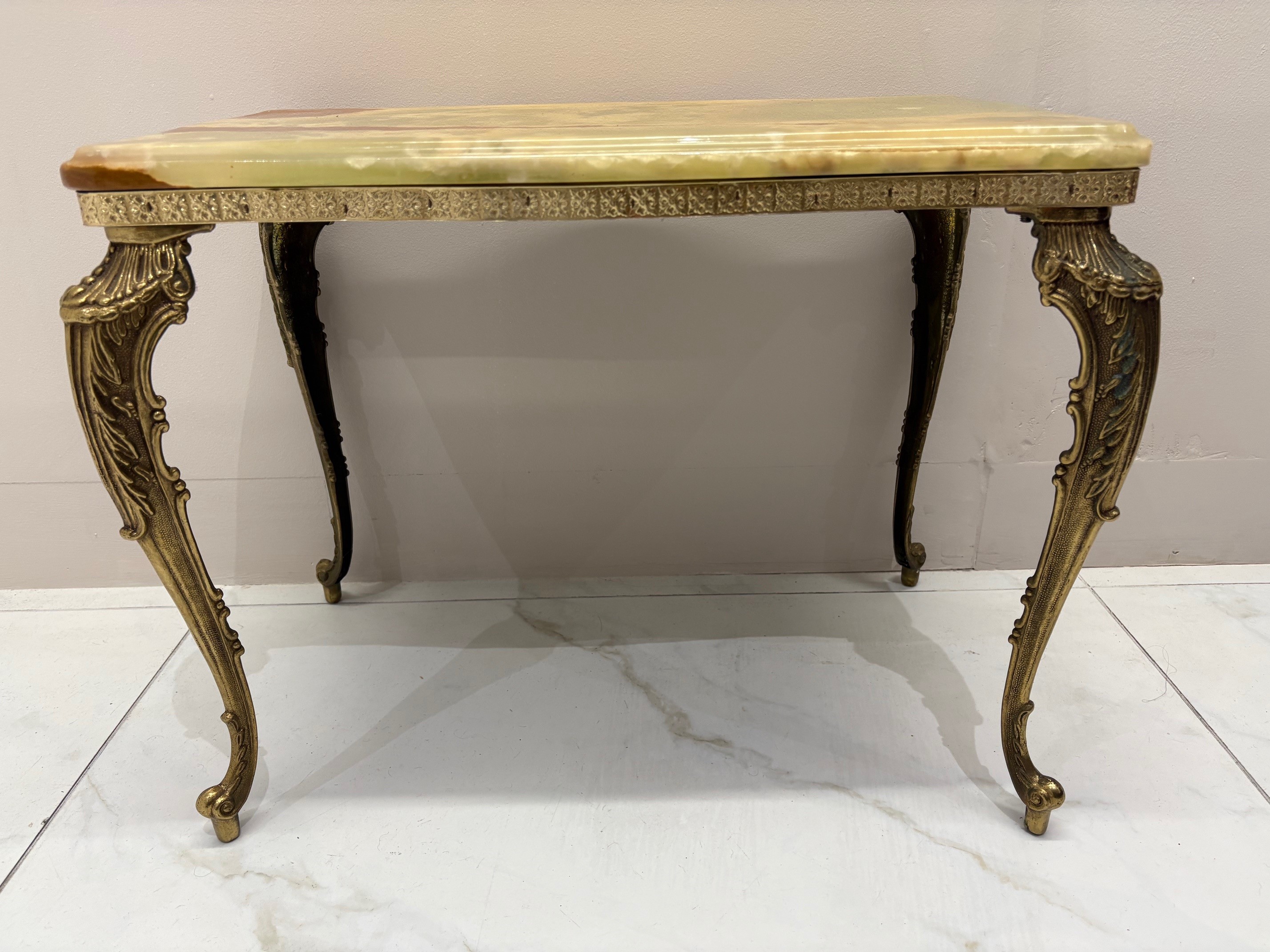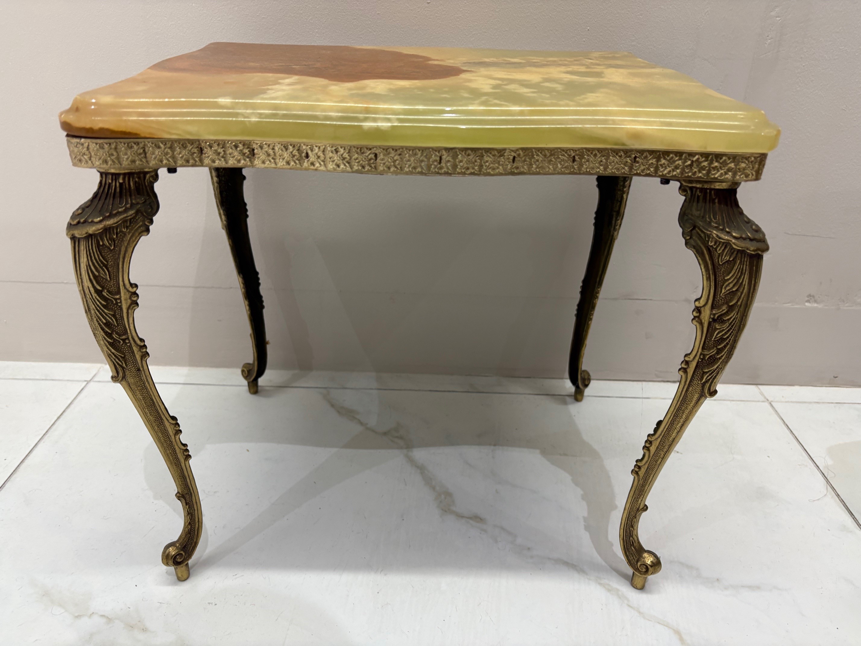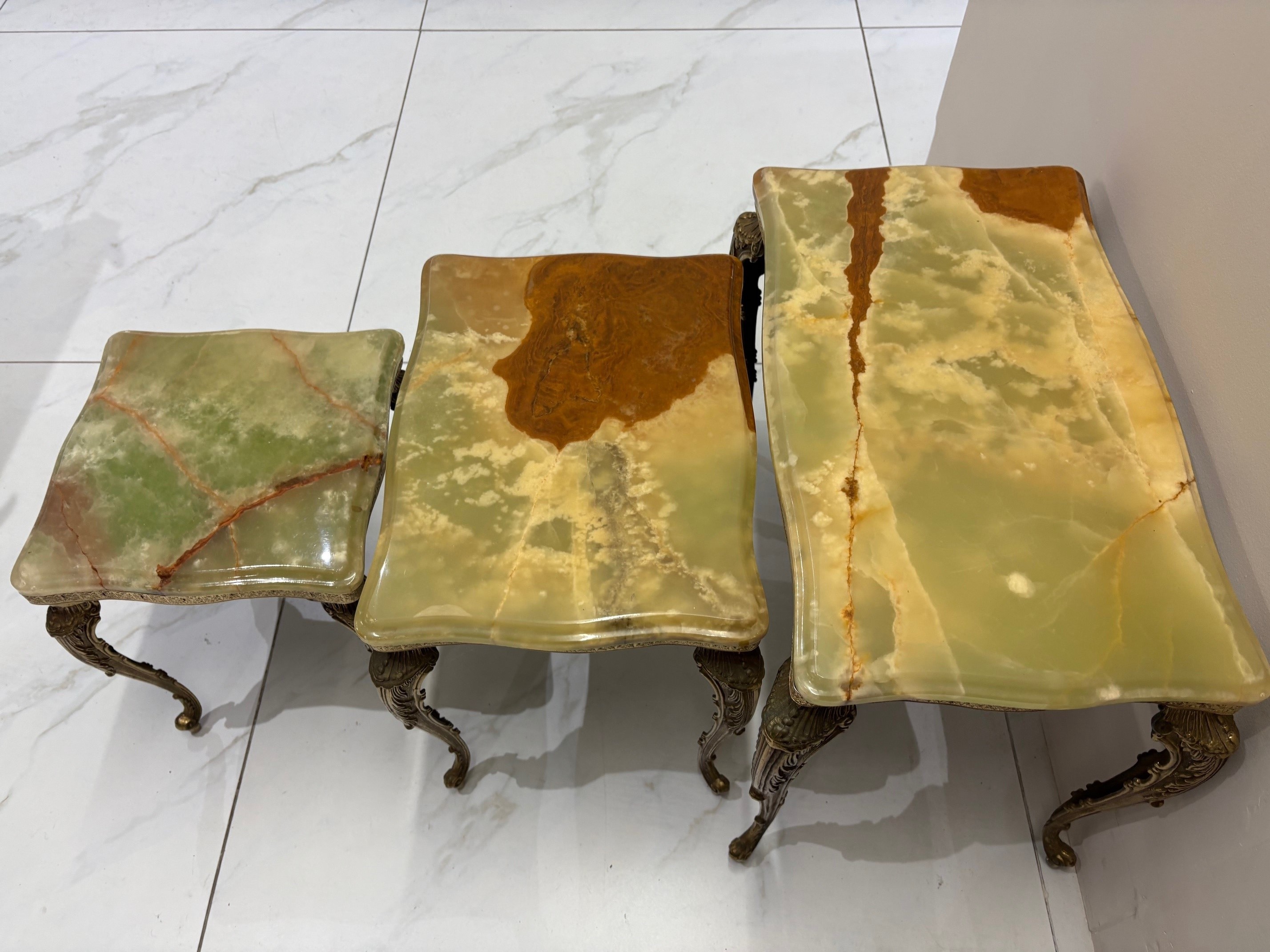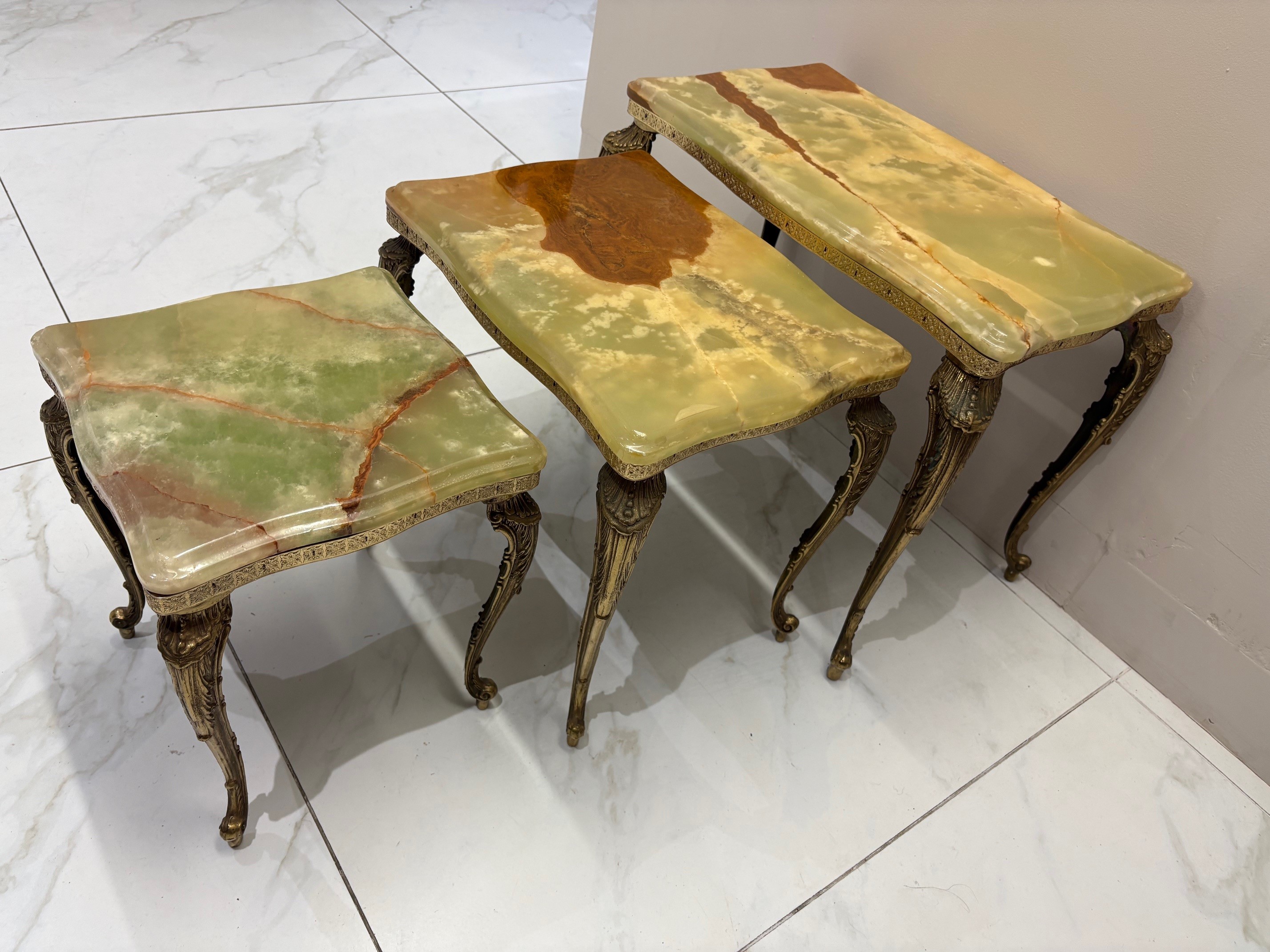 Nest of three mid century onyx stacking tables with gilt brass cabriole style legs - VIN1245S