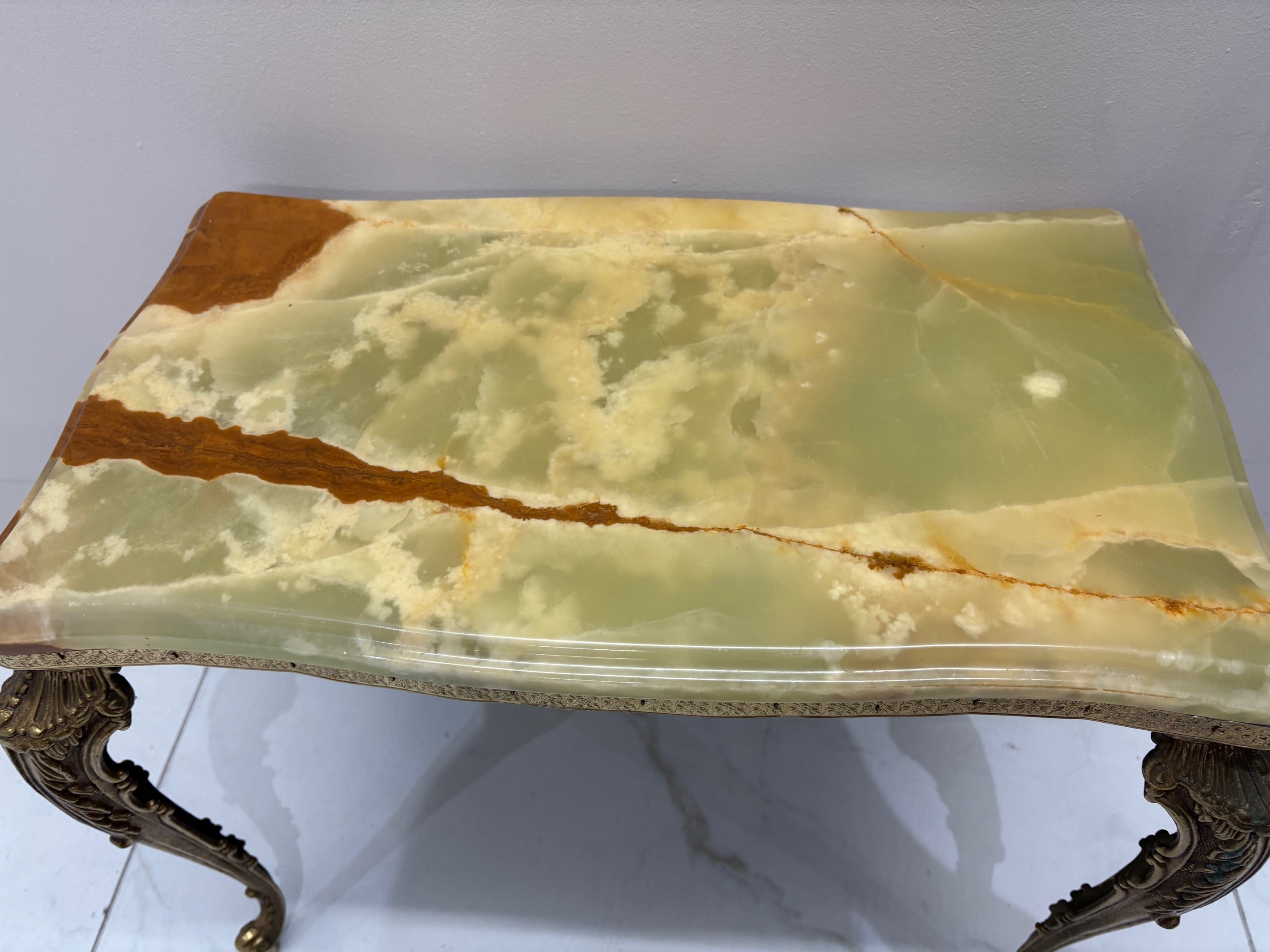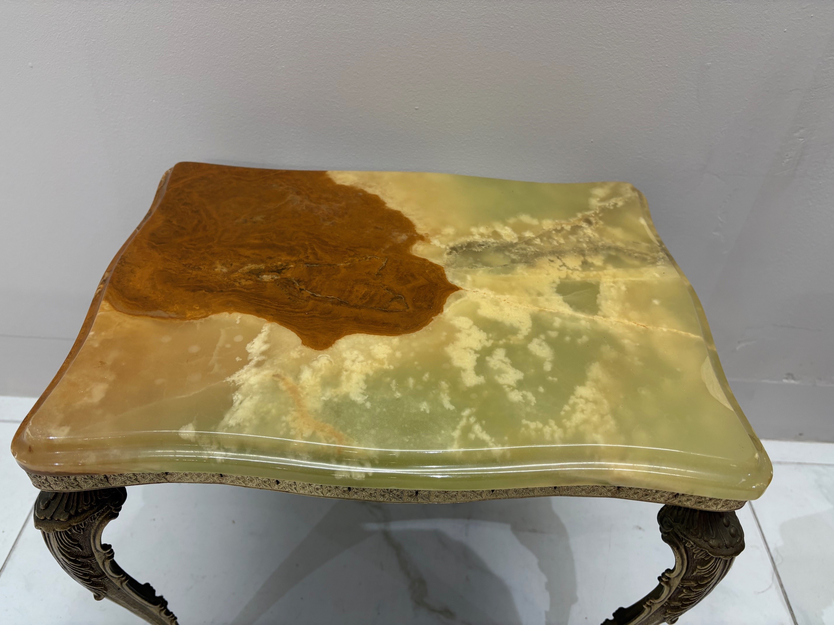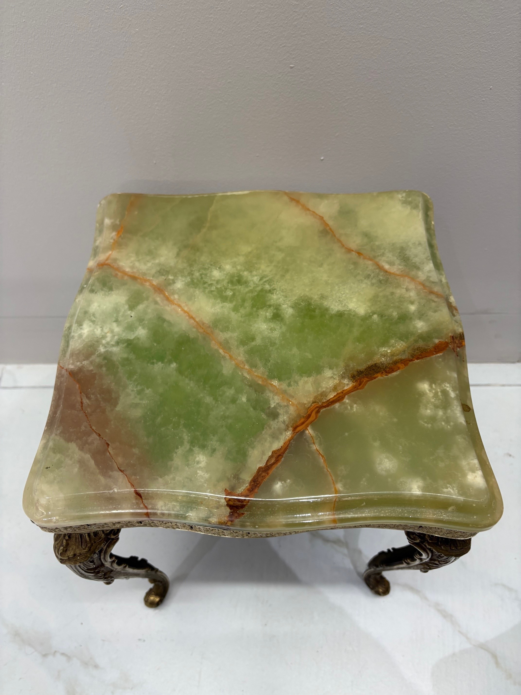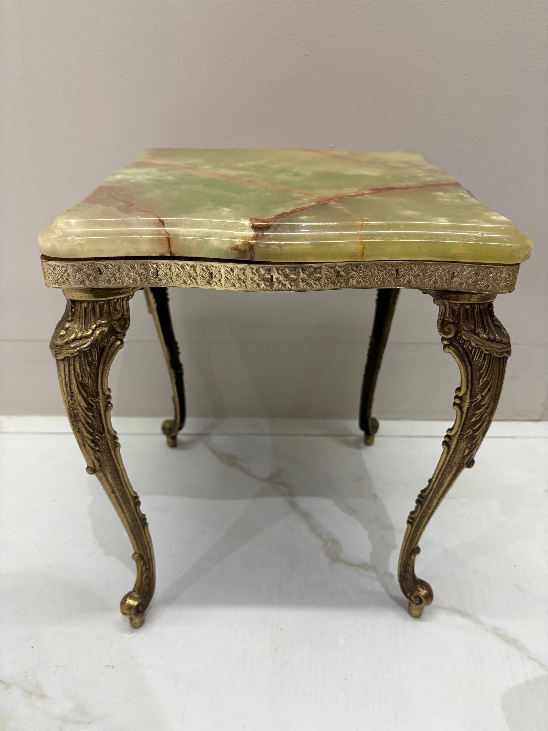 Nest of three mid century onyx stacking tables with gilt brass cabriole style legs - VIN1245S