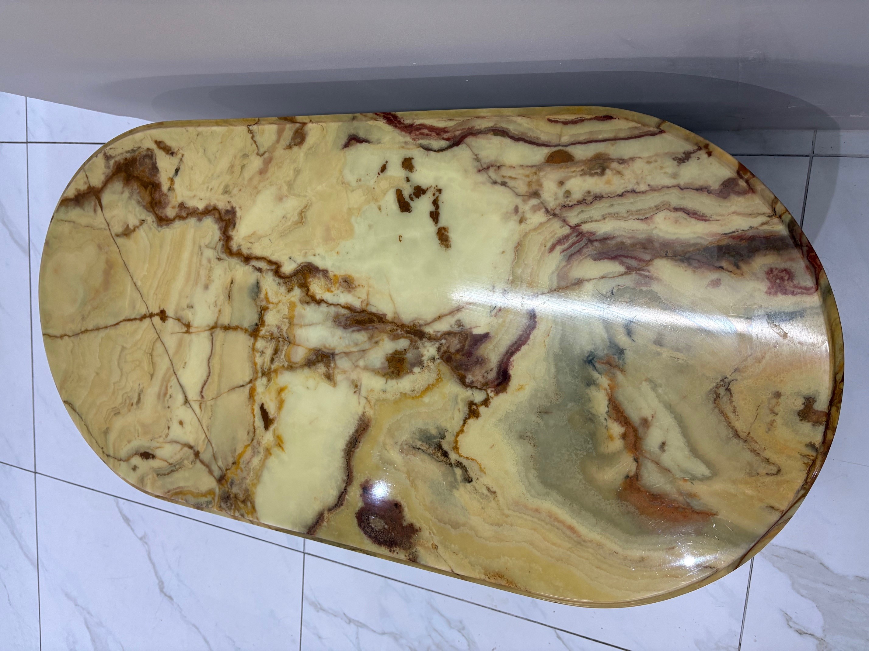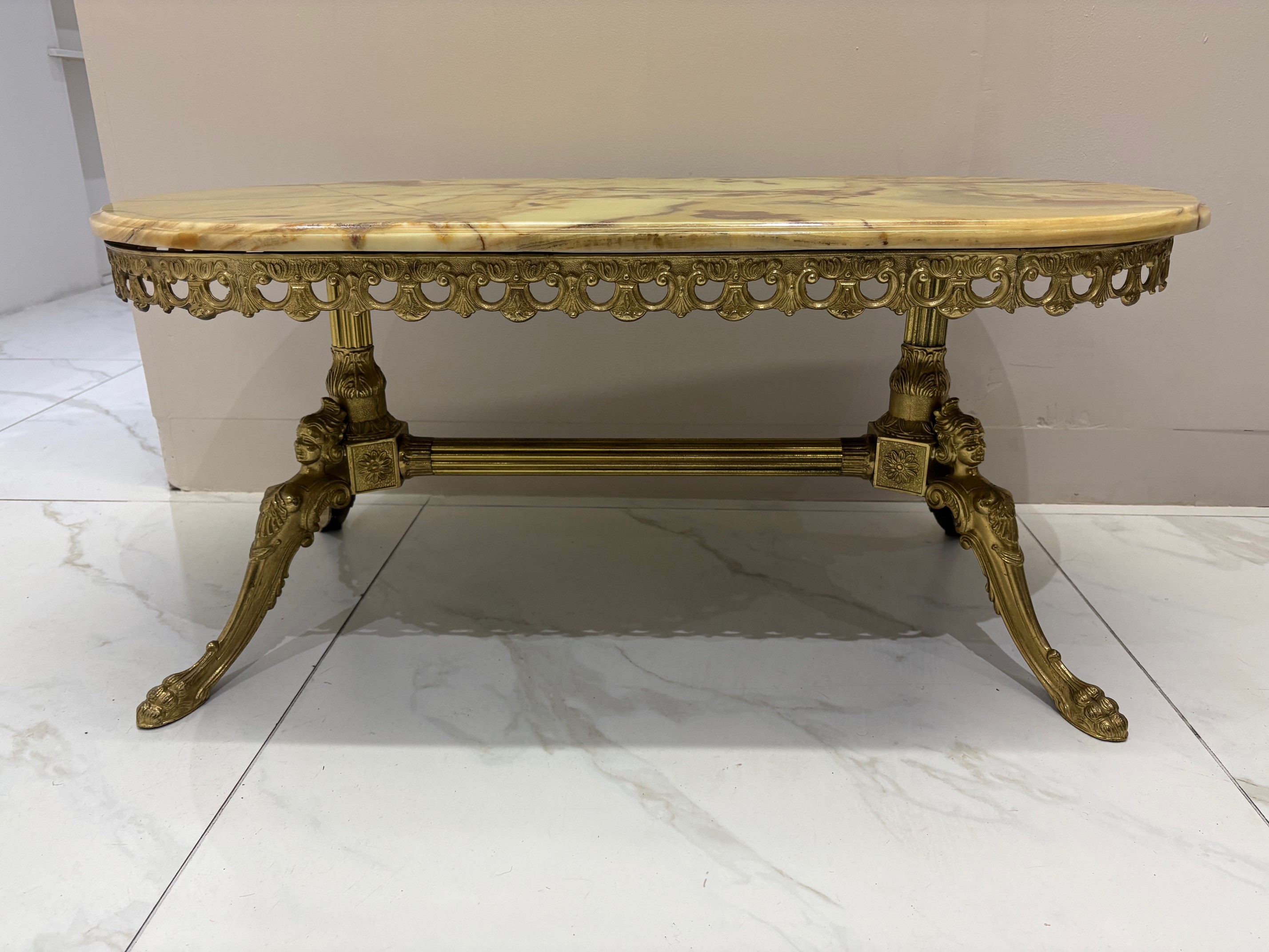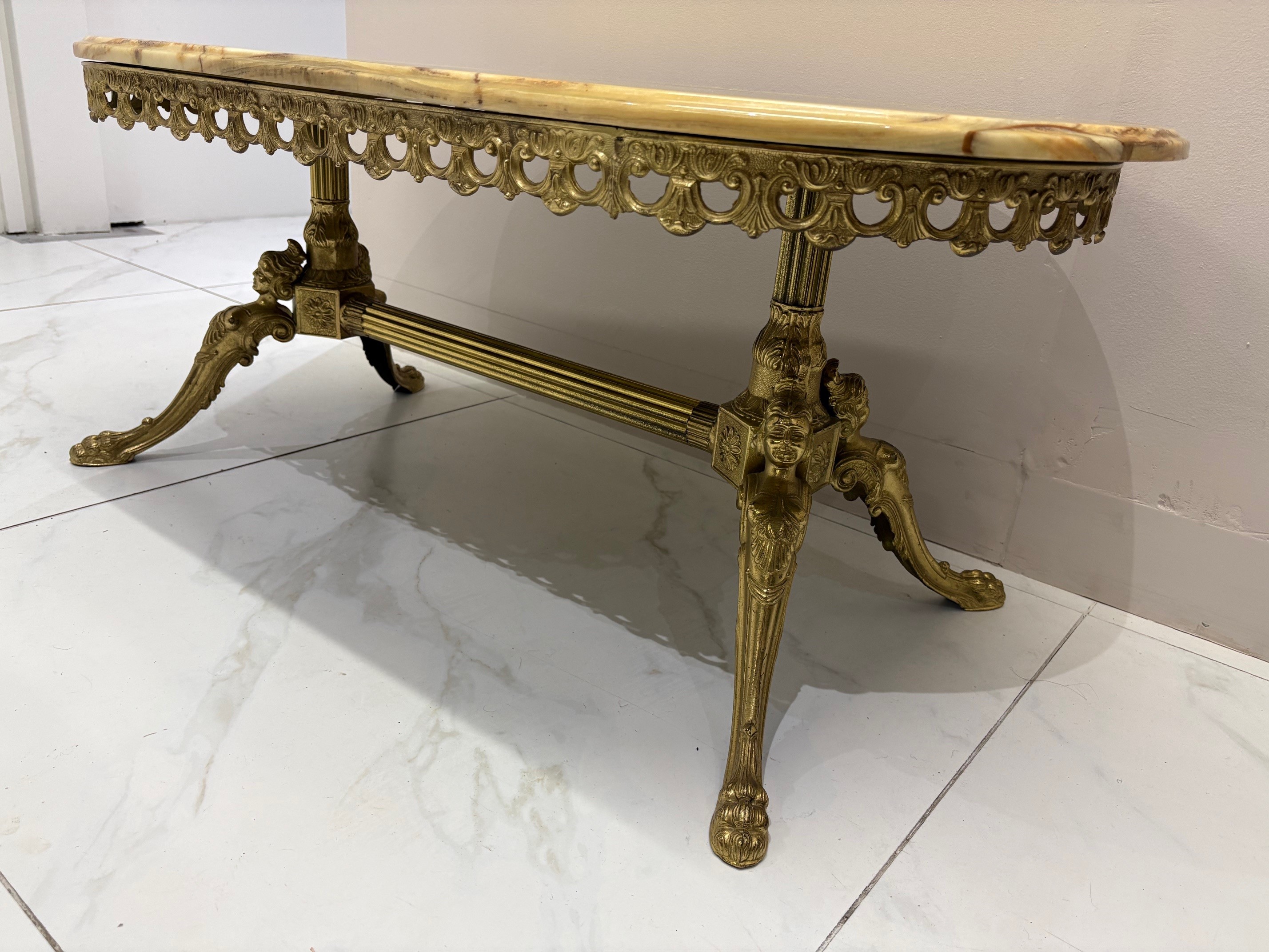 Vintage green onyx coffee table with ornate gilt legs - VIN1245T