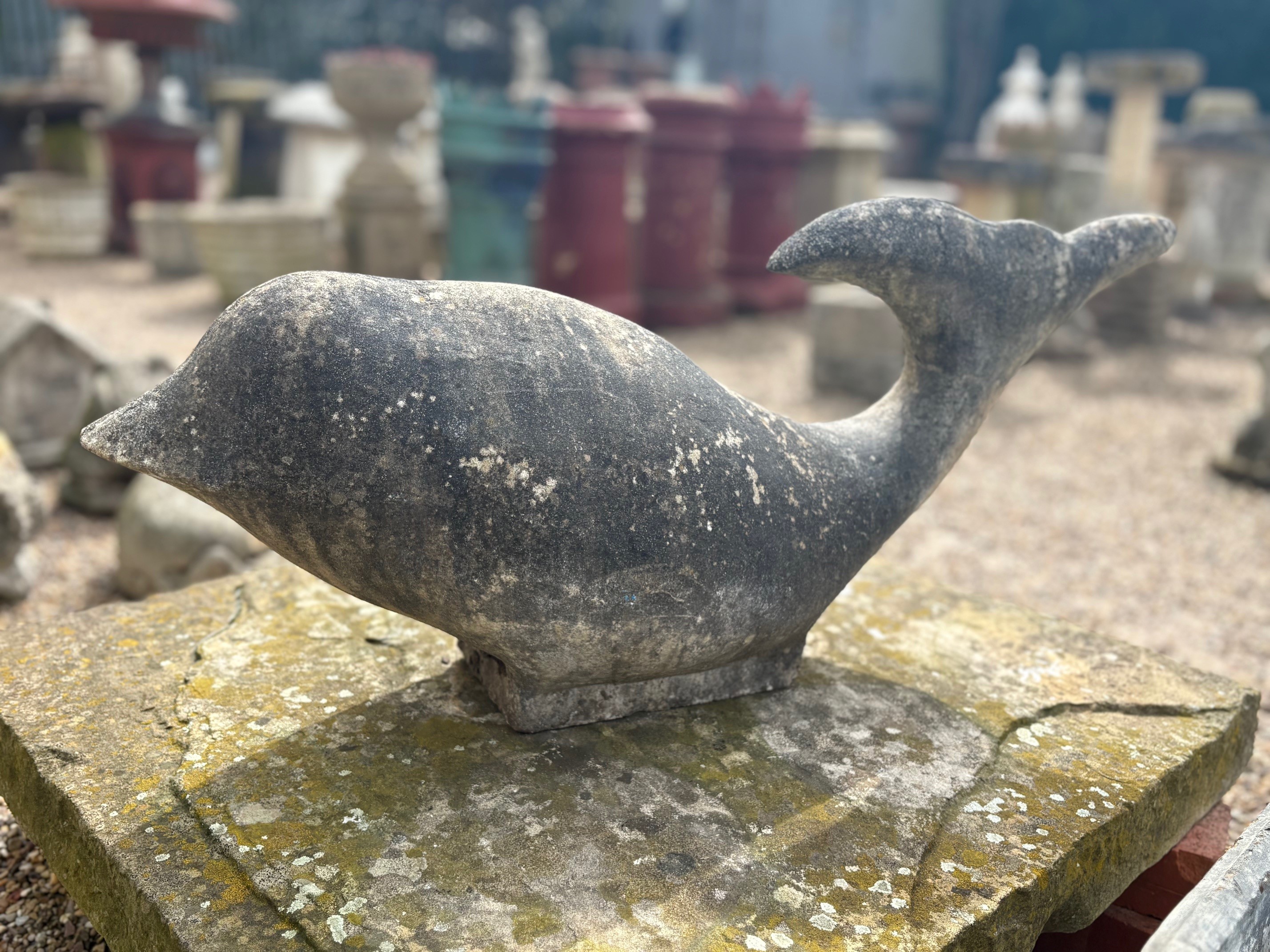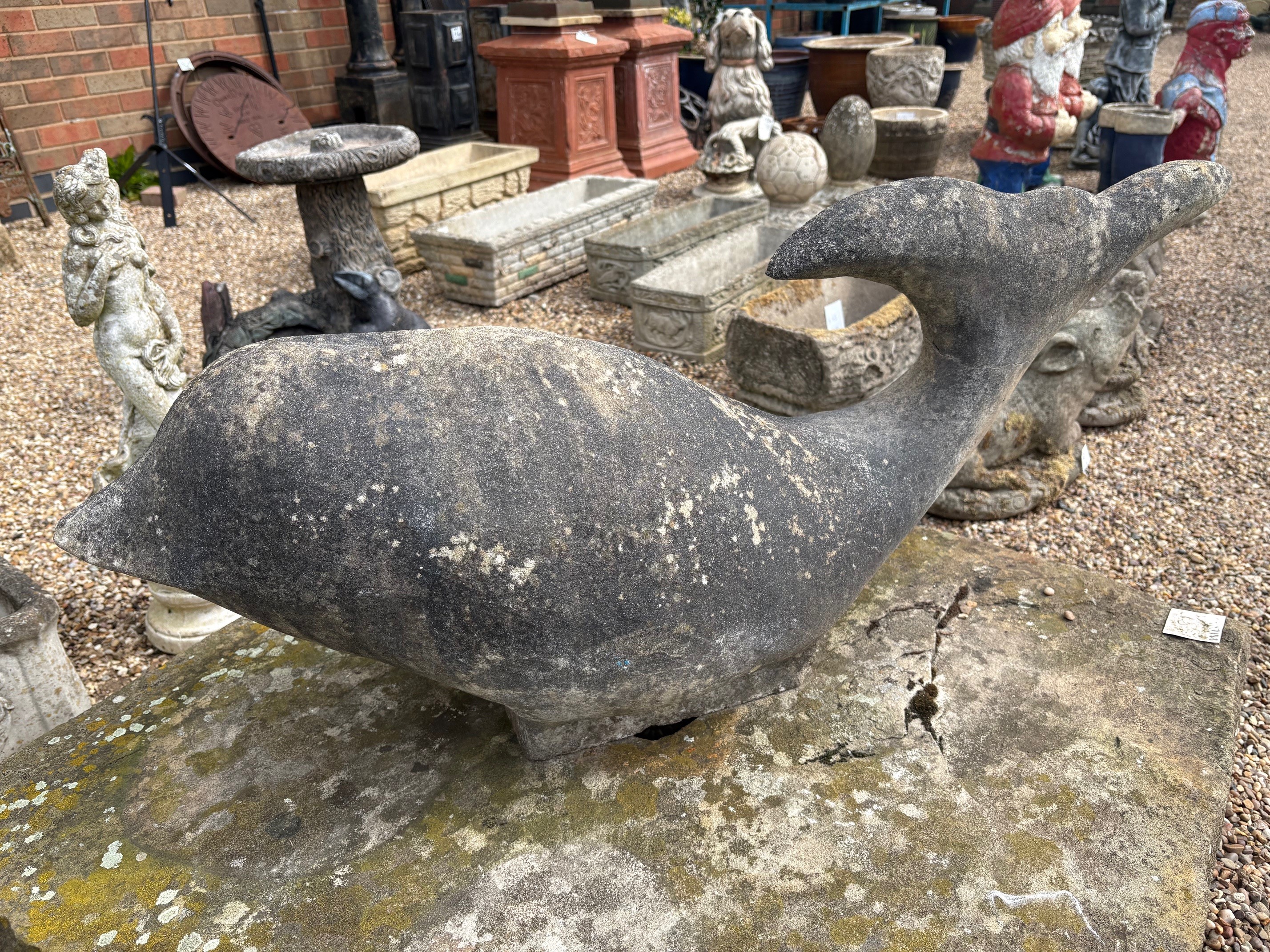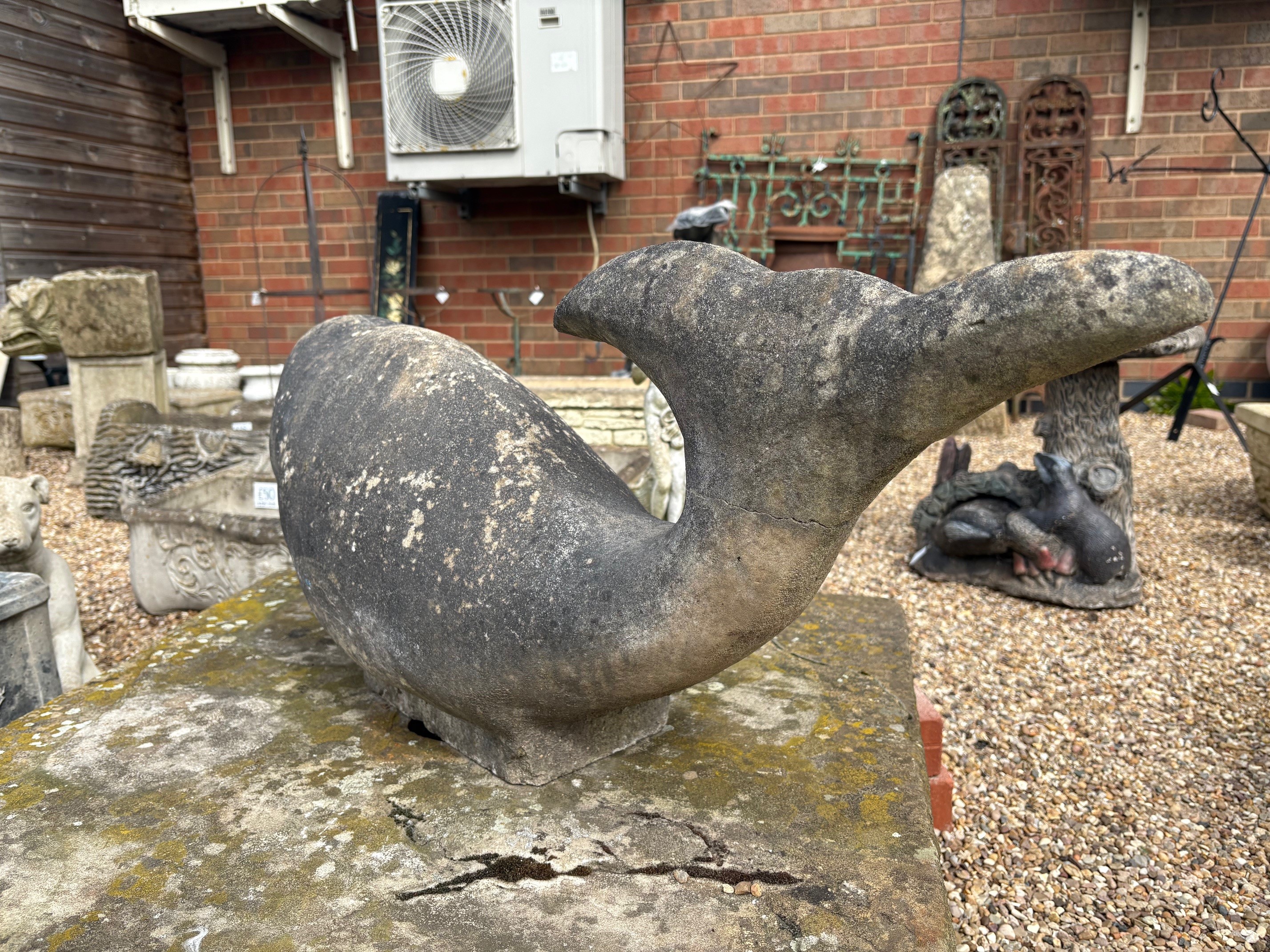 Large and unusual carved stone dolphin (feint crack on tail visible from previous repair).