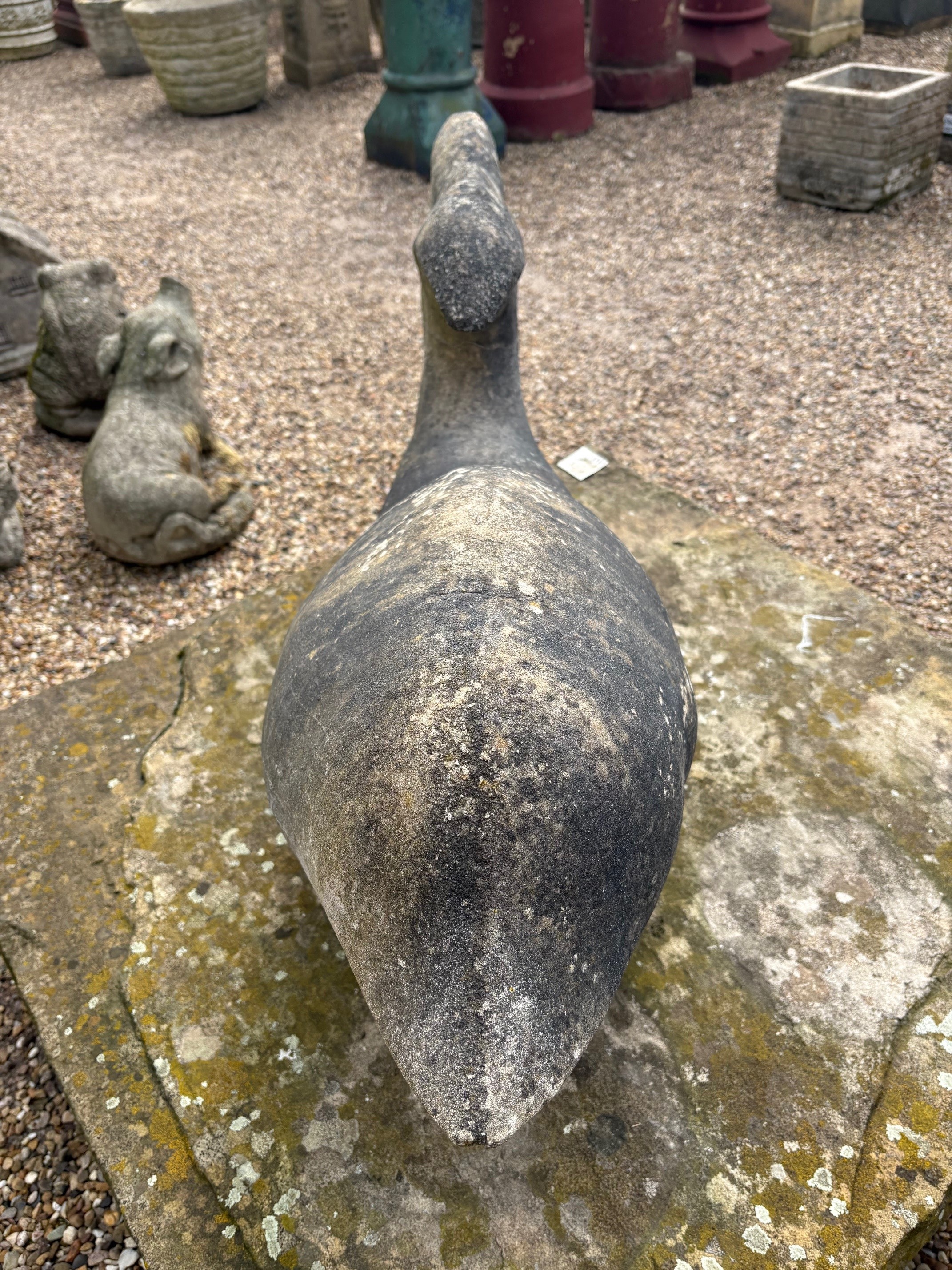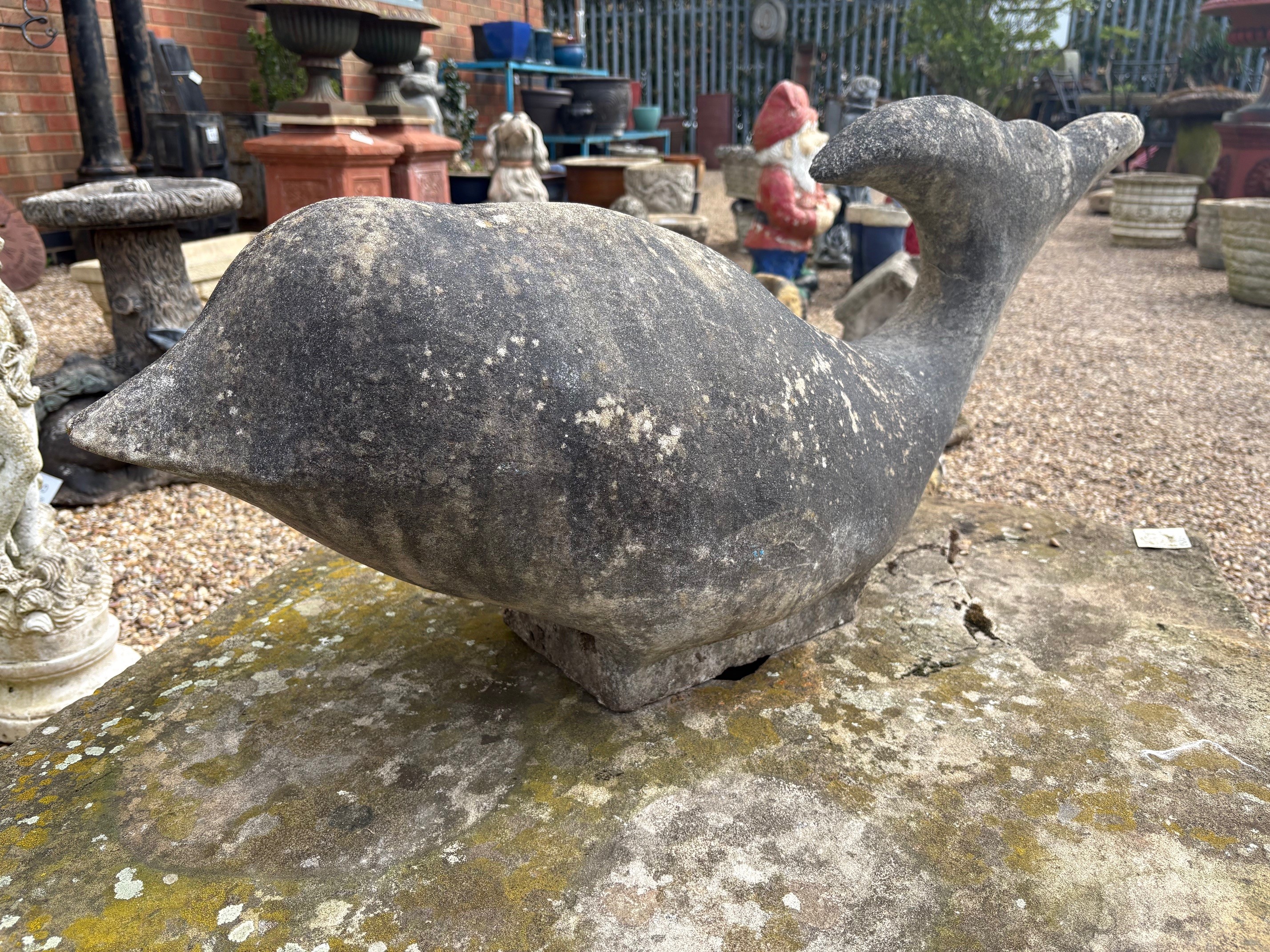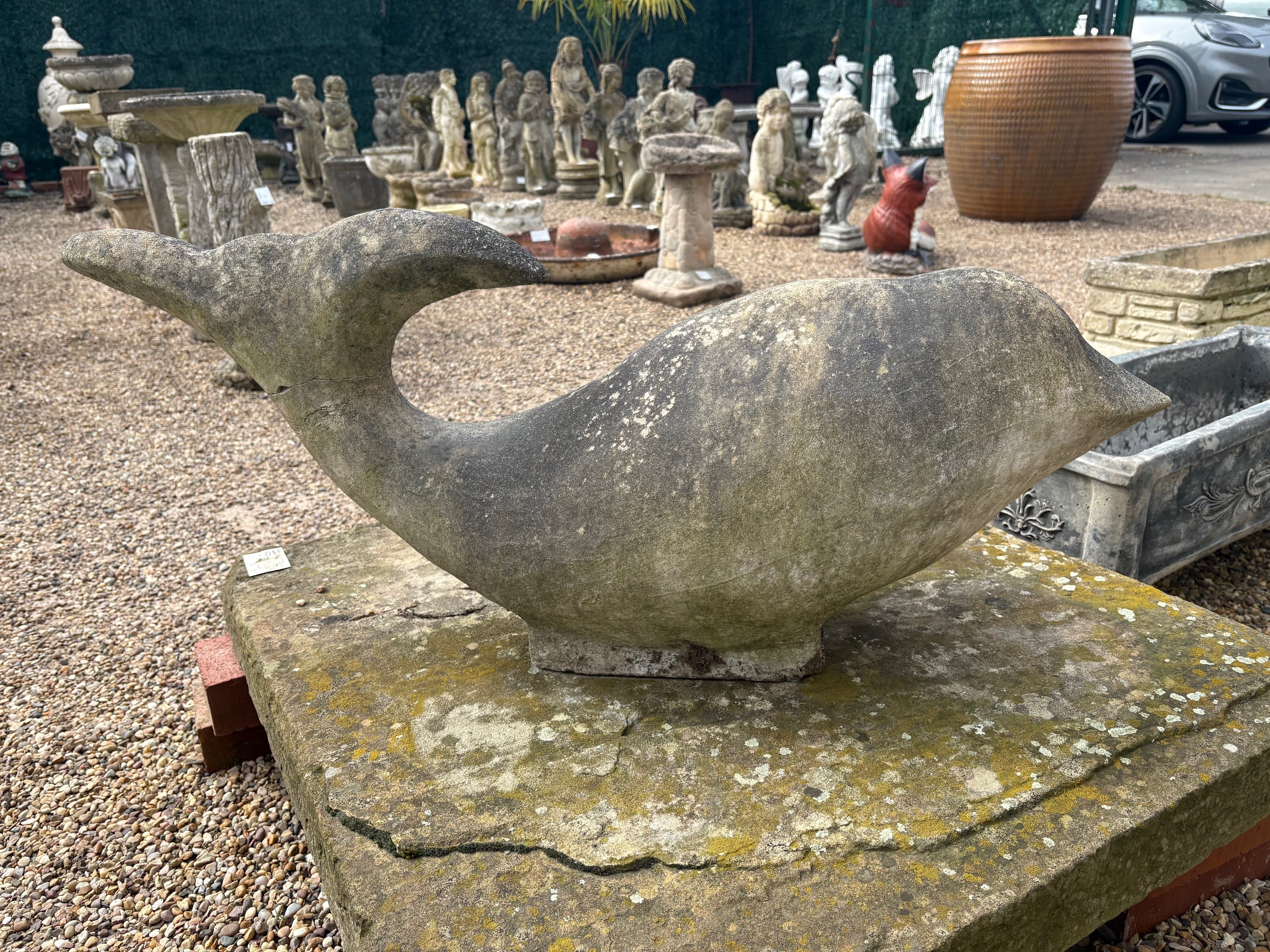 Large and unusual carved stone dolphin (feint crack on tail visible from previous repair).