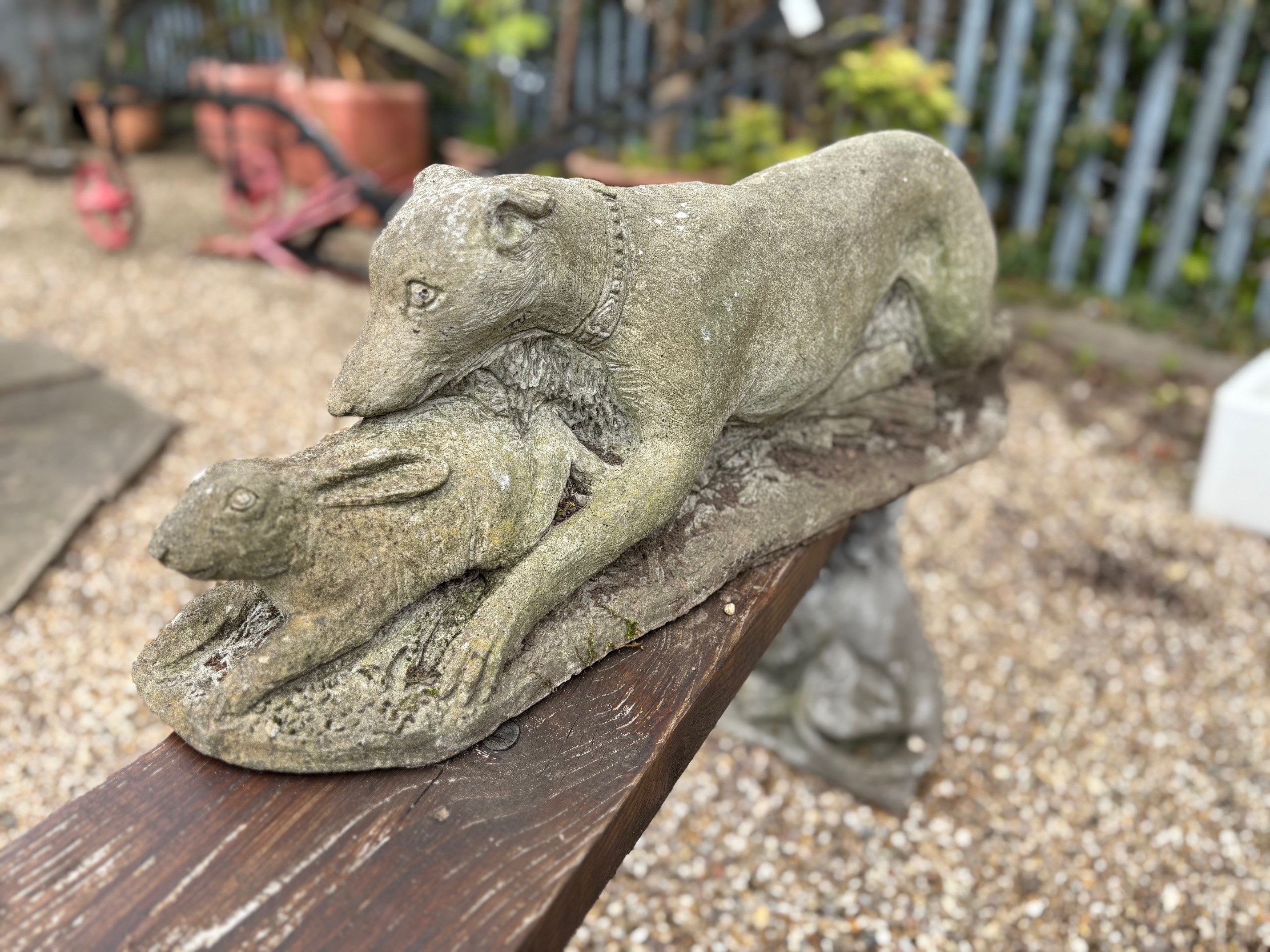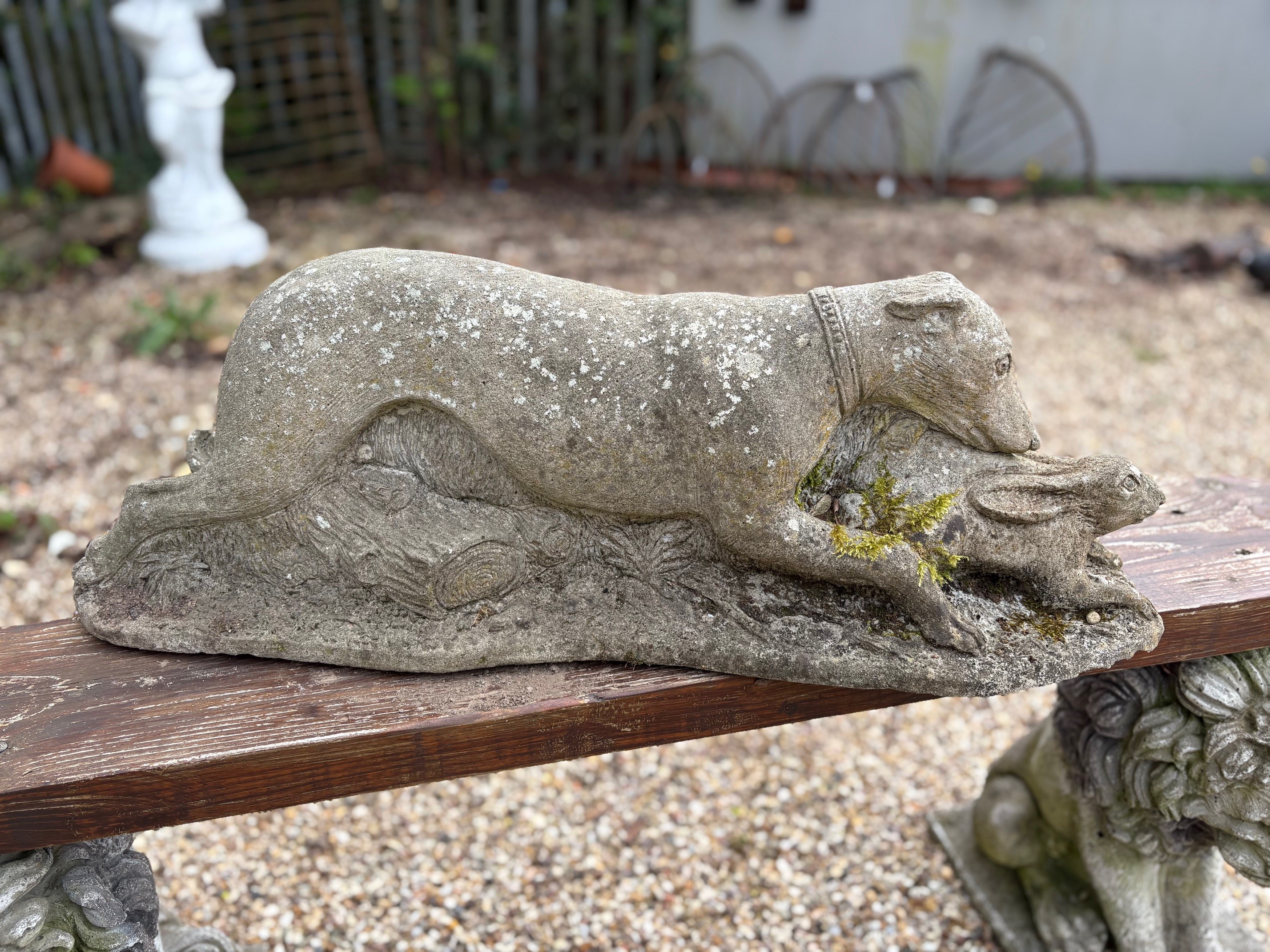 Weathered Reconstituted Stone Greyhound & Hare Statue - VIN1248J - 2 Available