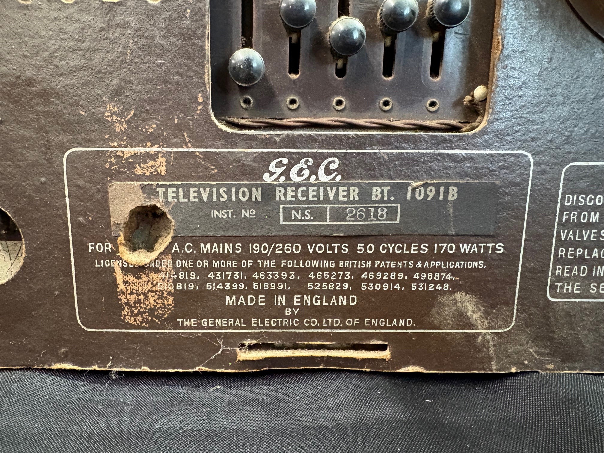 Late 1940’s/50’s bakelite television with 9 inch screen by General Electric Company model 1091B