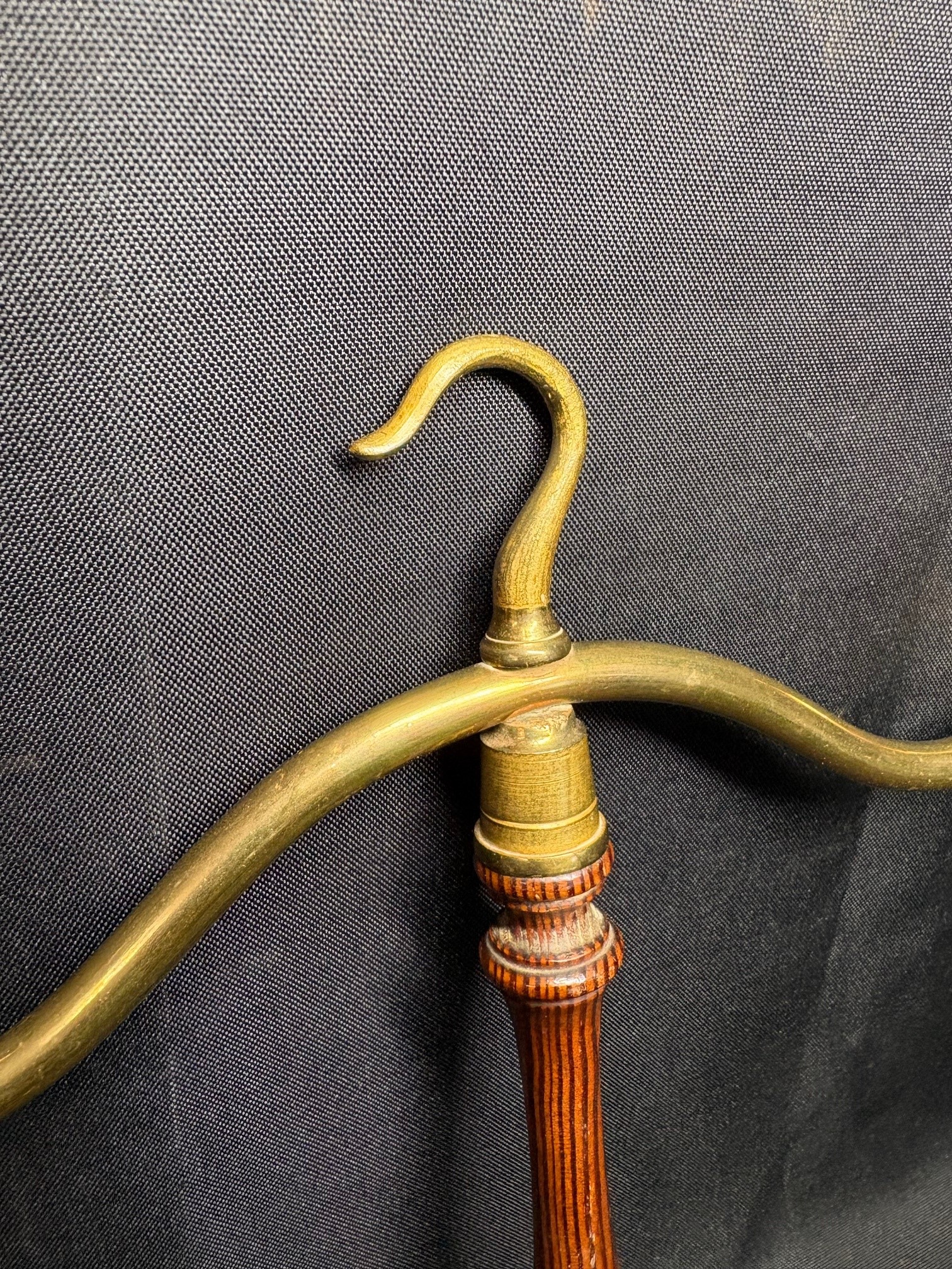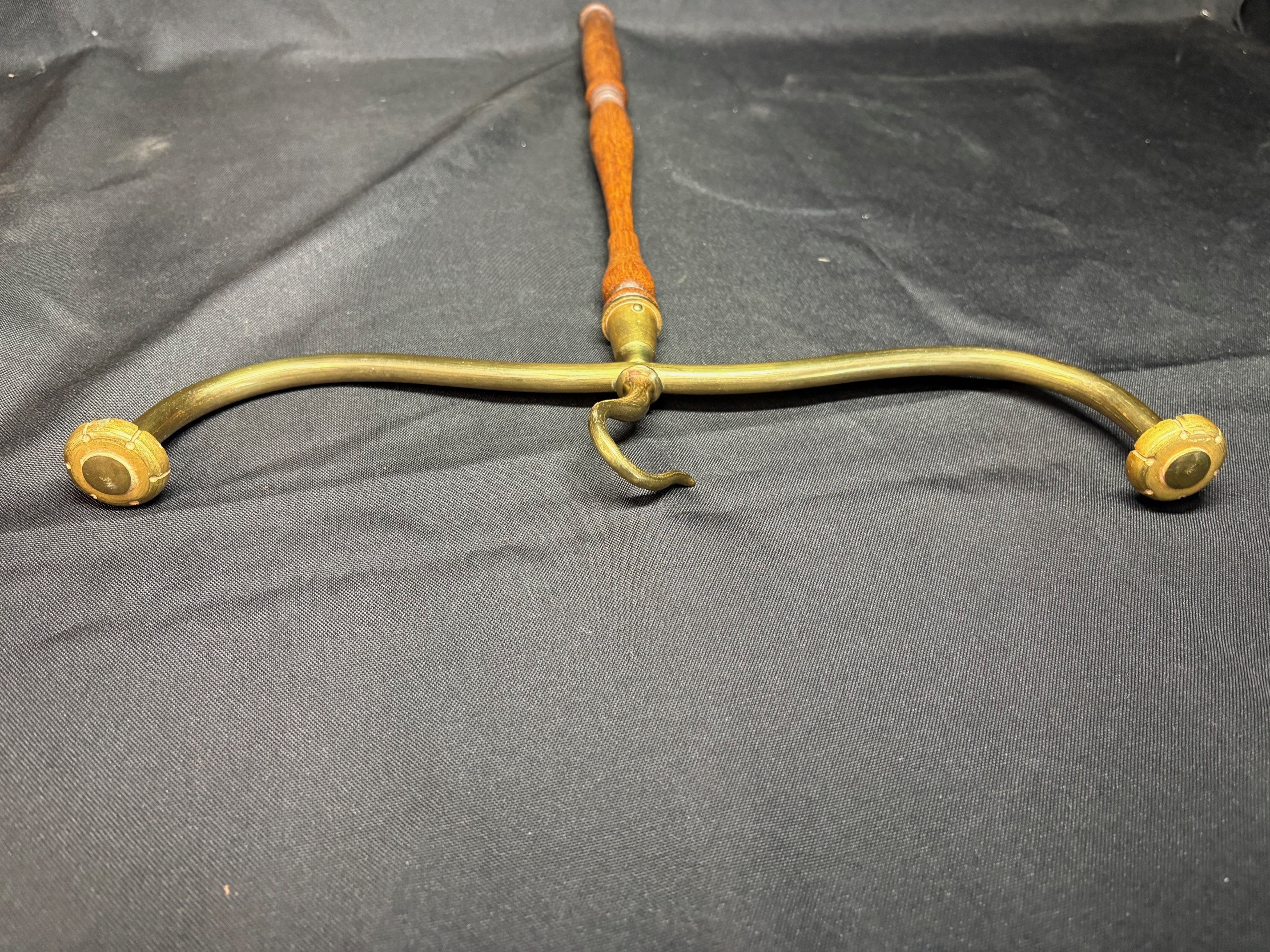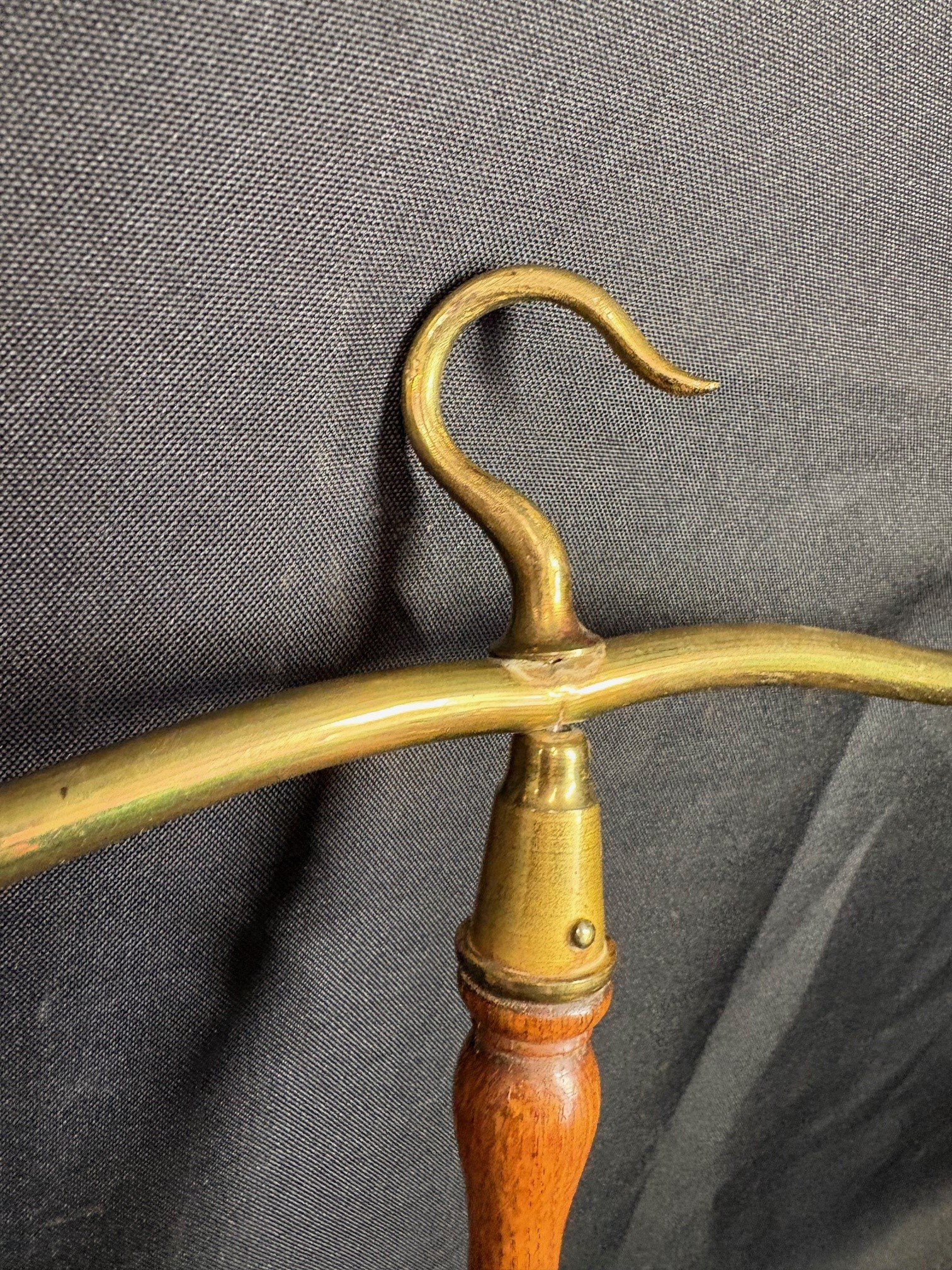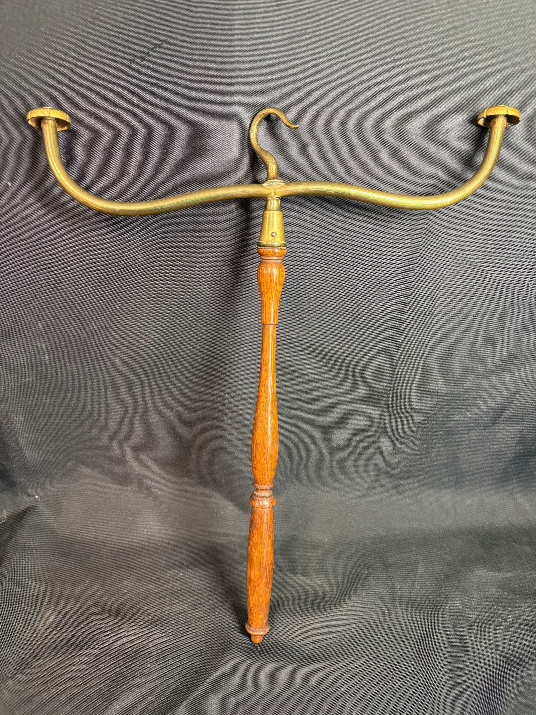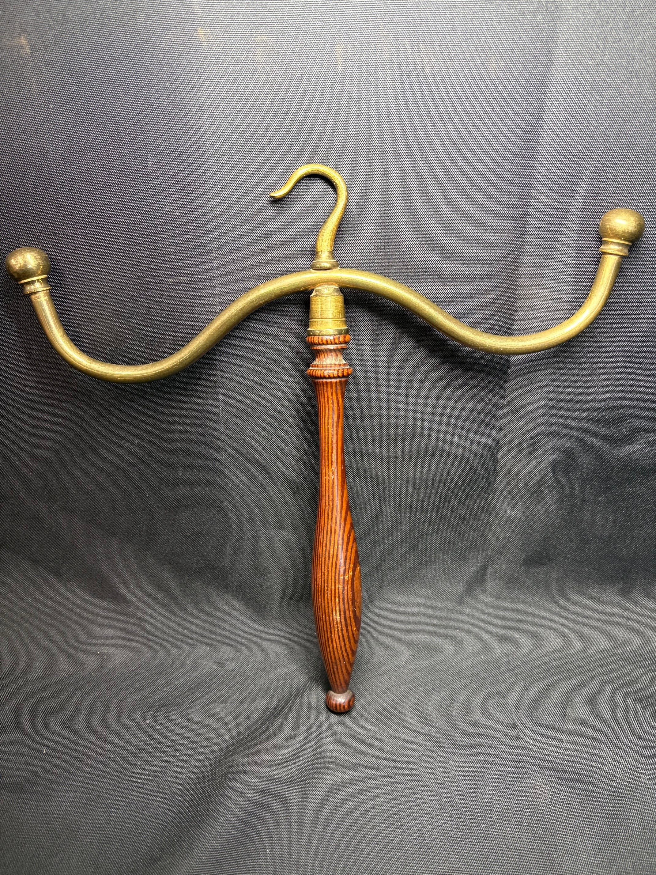 Original antique barristers wig and gown hanger's in brass with turned mahogany handle's.