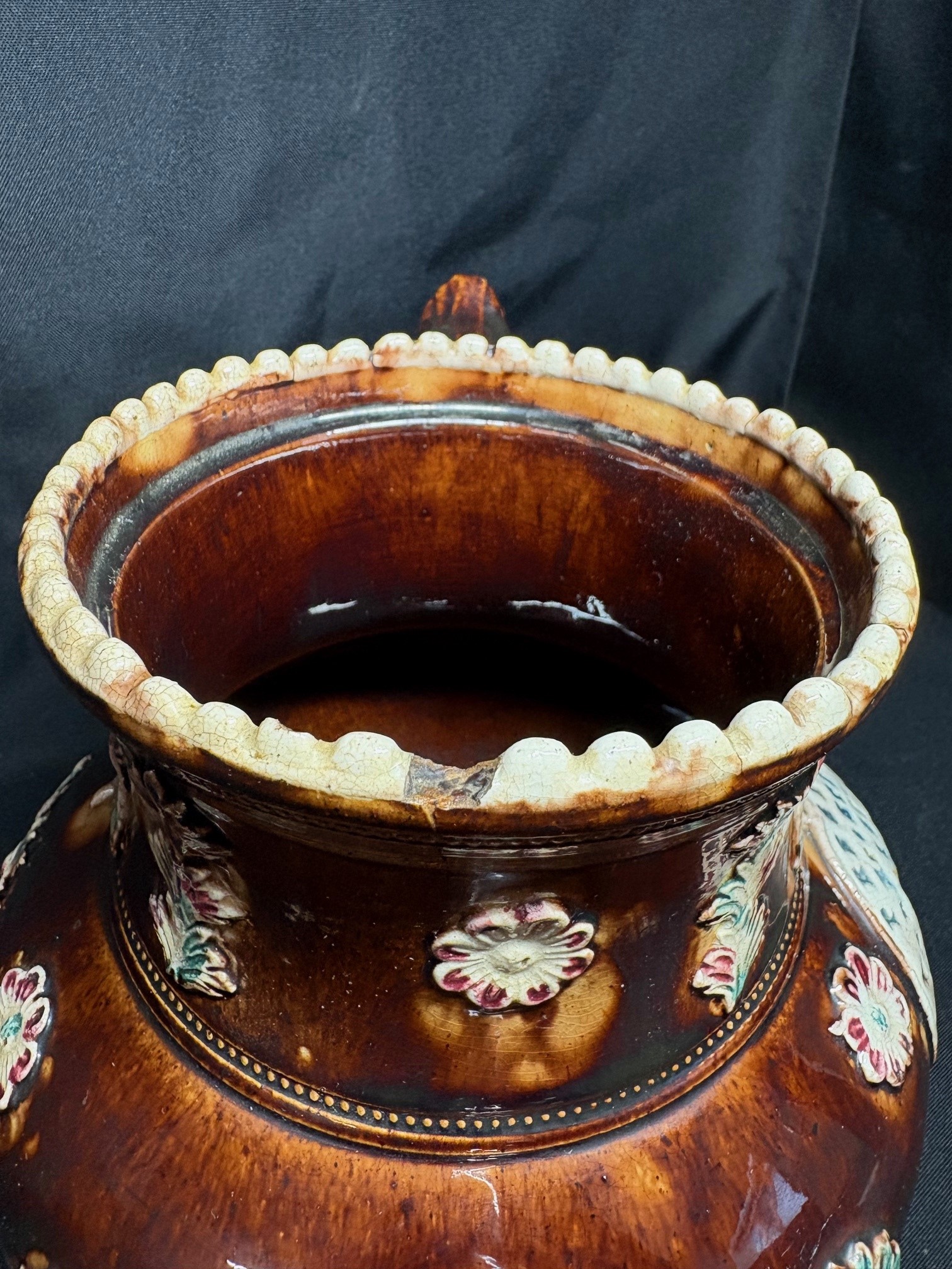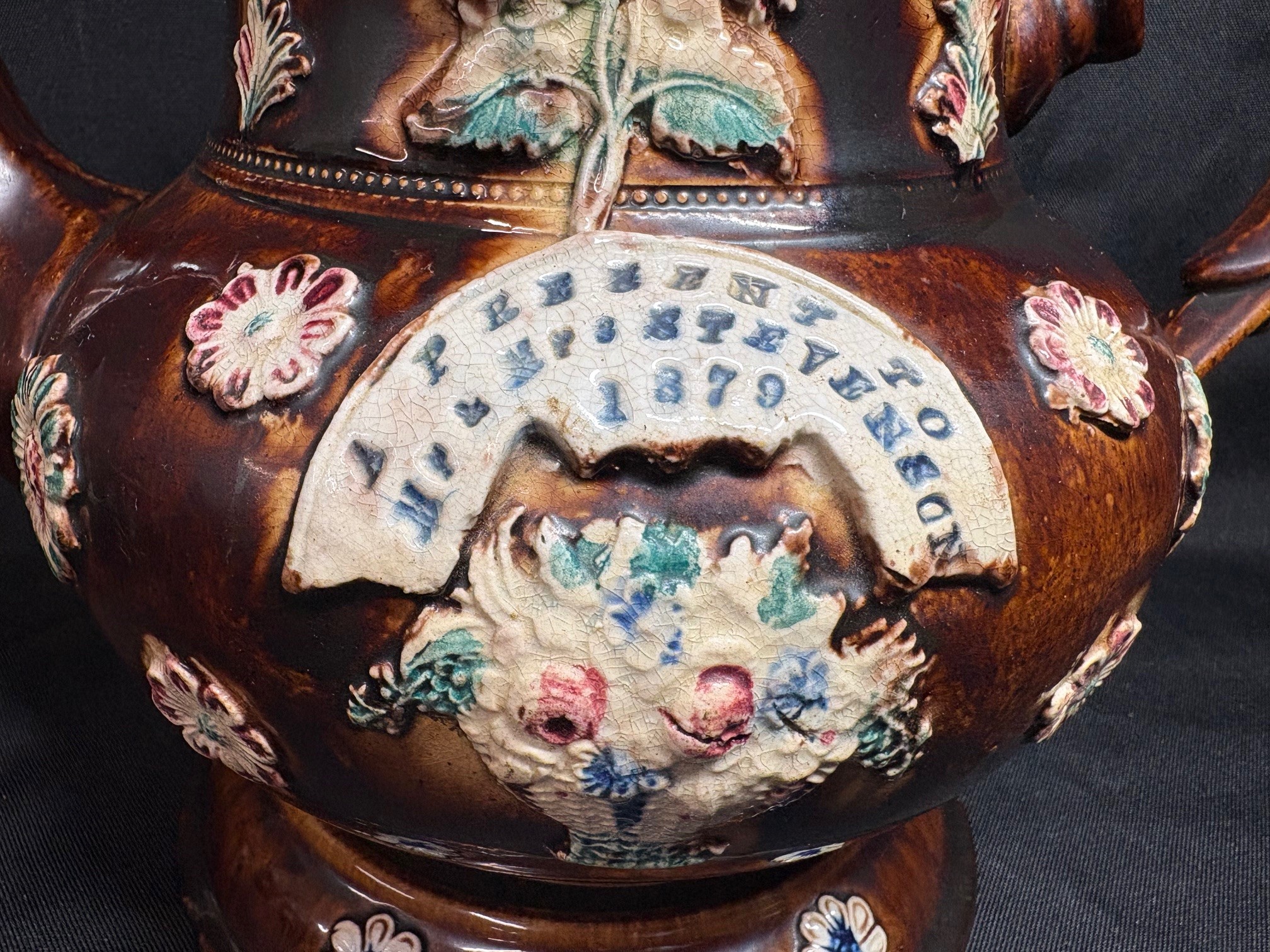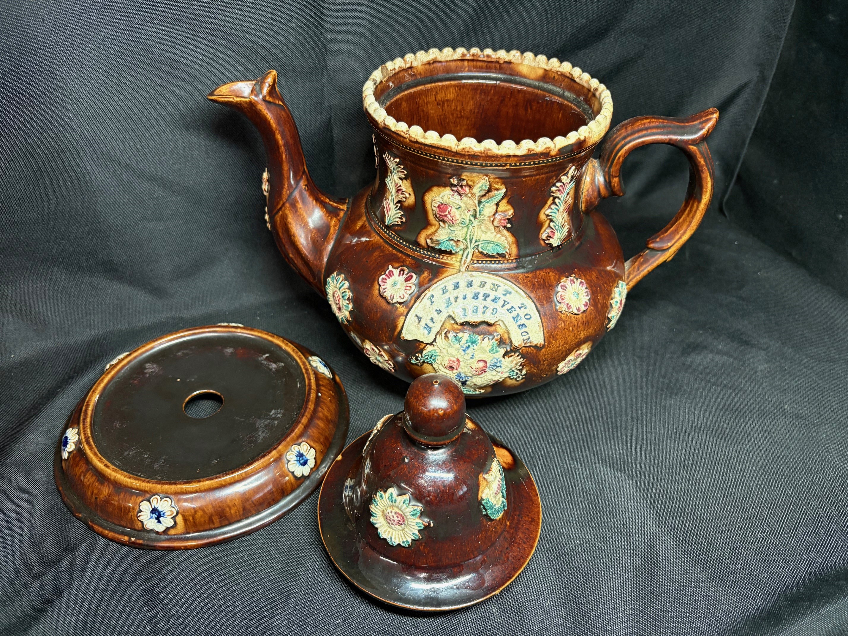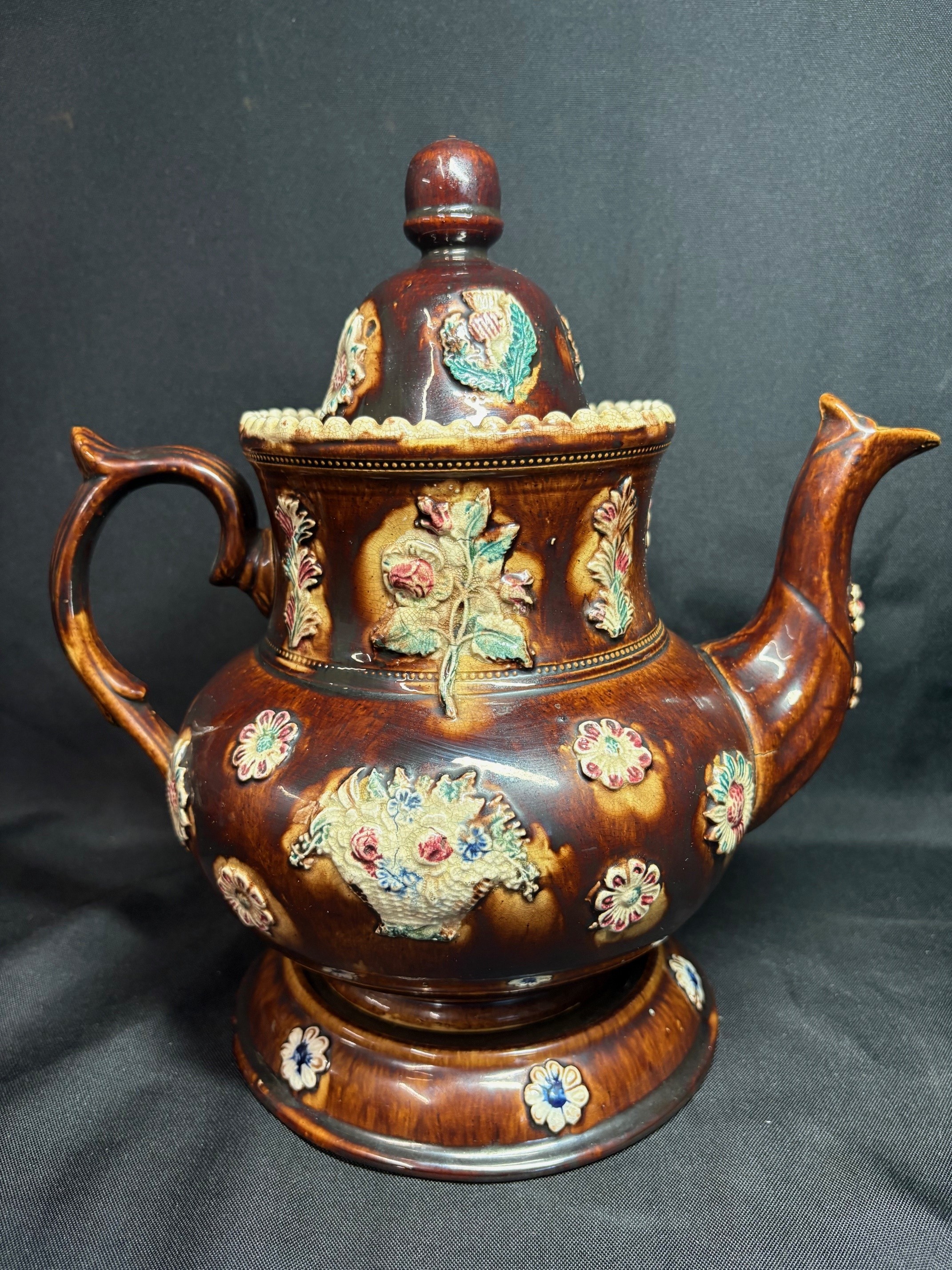 Victorian Measham Bargeware Large Tea-pot & Stand - VIN1243P